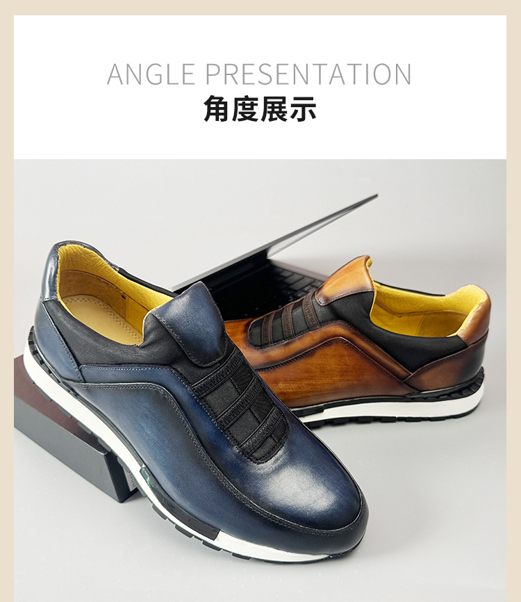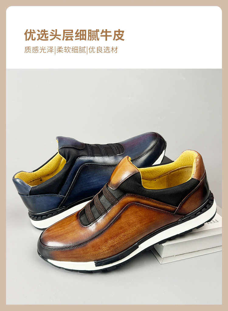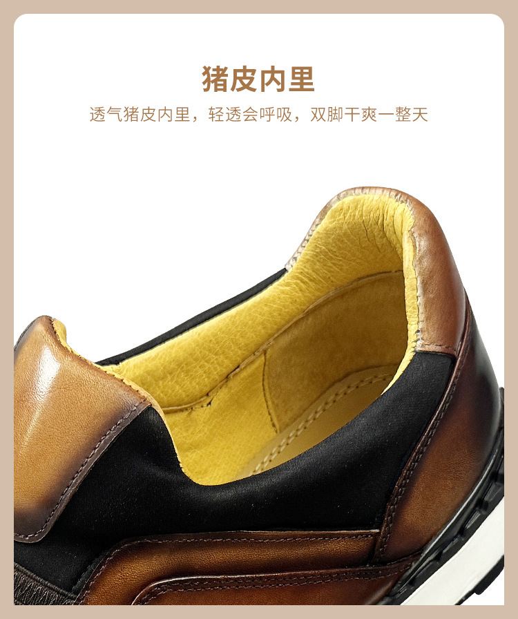2024 신상 라운드토 천연가죽 남성화 패션 캐주얼 가죽신 첫 번째 층 소가죽 브라운 운동화 멋짐