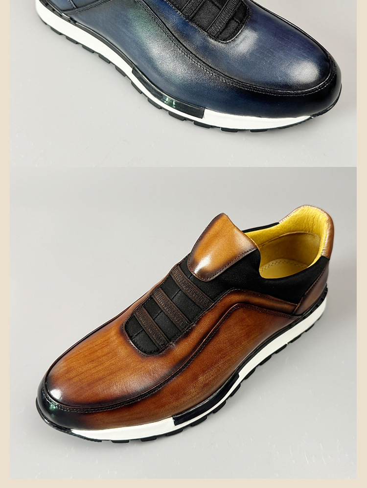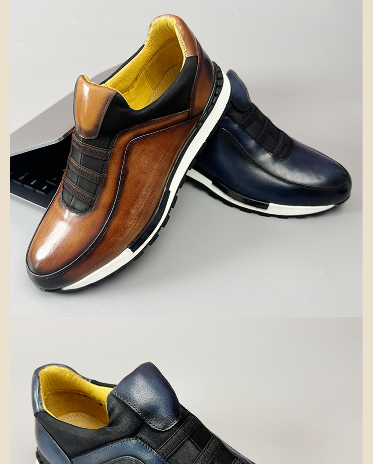 2024 신상 라운드토 천연가죽 남성화 패션 캐주얼 가죽신 첫 번째 층 소가죽 브라운 운동화 멋짐스토어 가기