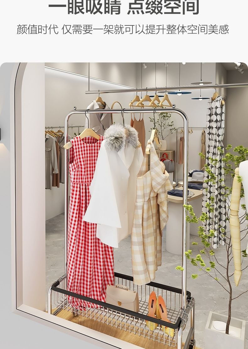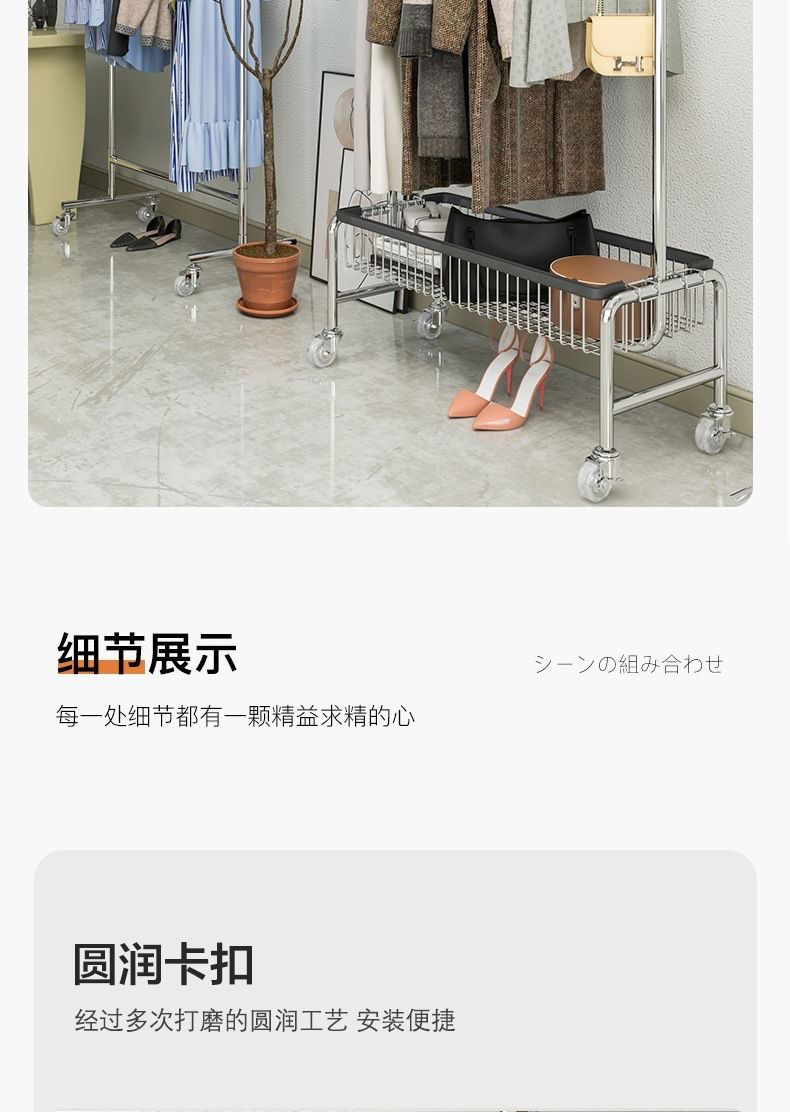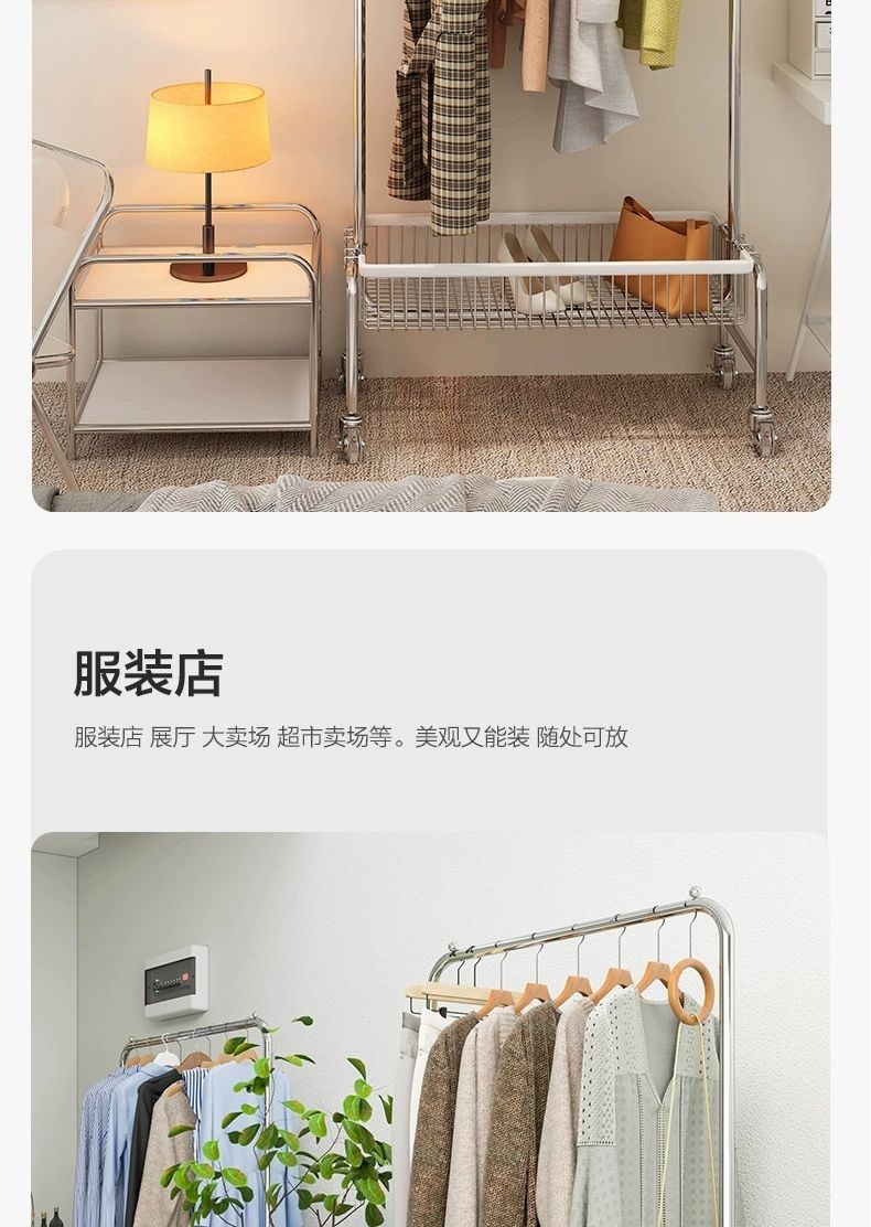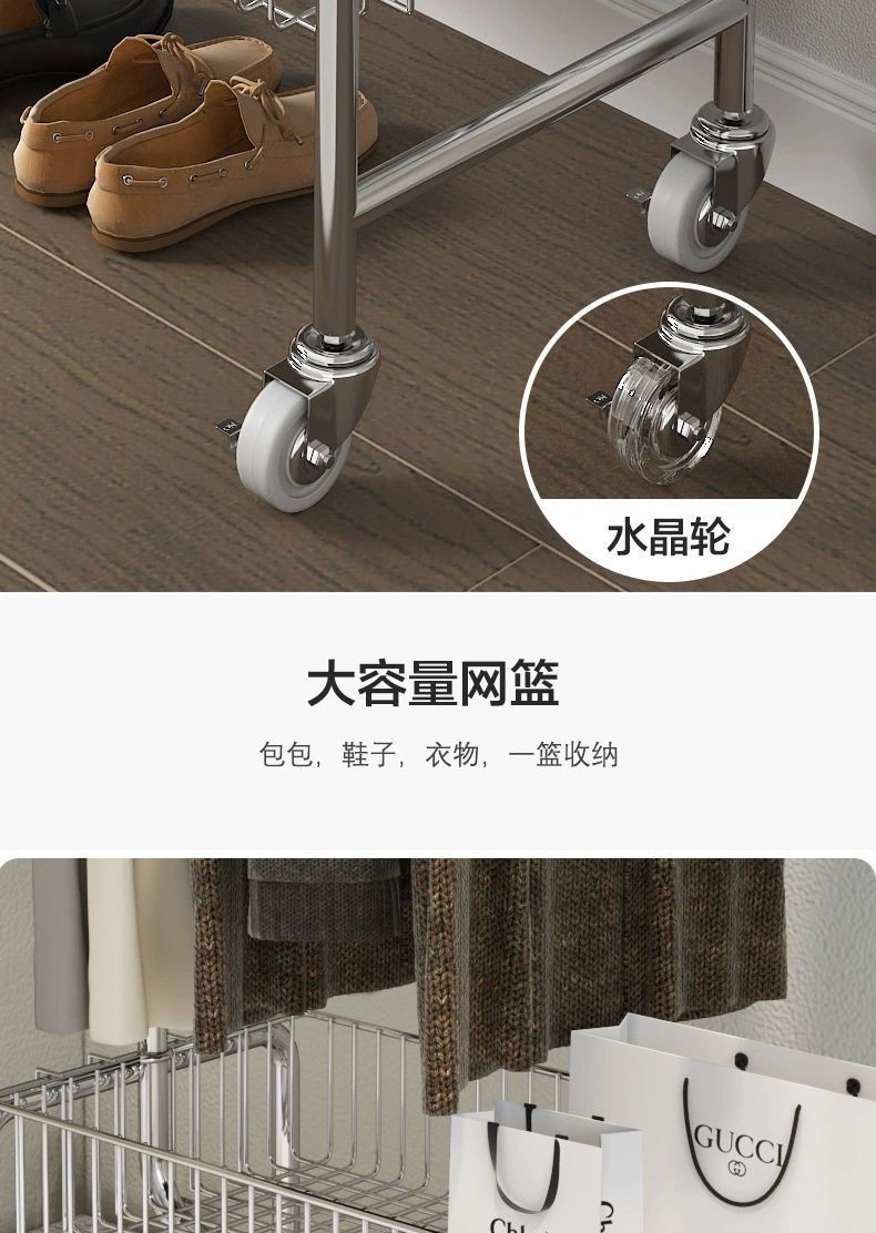 바퀴가 달린 이동식 옷걸이 바닥 형 다기능 통합 코트 랙 옷 보관 트롤리 침실 방 옷 옷걸이스토어 가기
