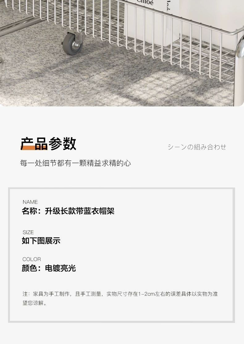 • 긴 바구니 걸이 + 고무 휠 + unhemmed