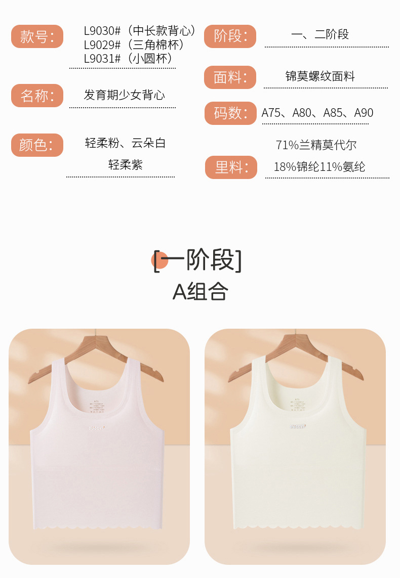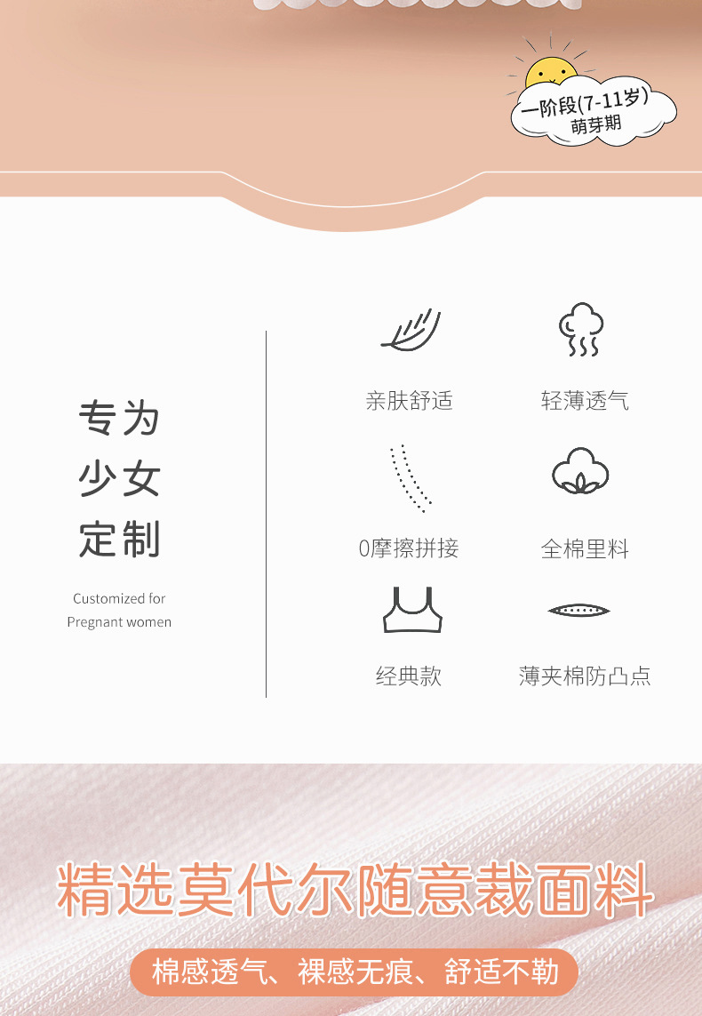1 단계 여중생 속옷 개발기간 방범프 9-13 세 조끼 편안한 통기성 소녀 브래지어