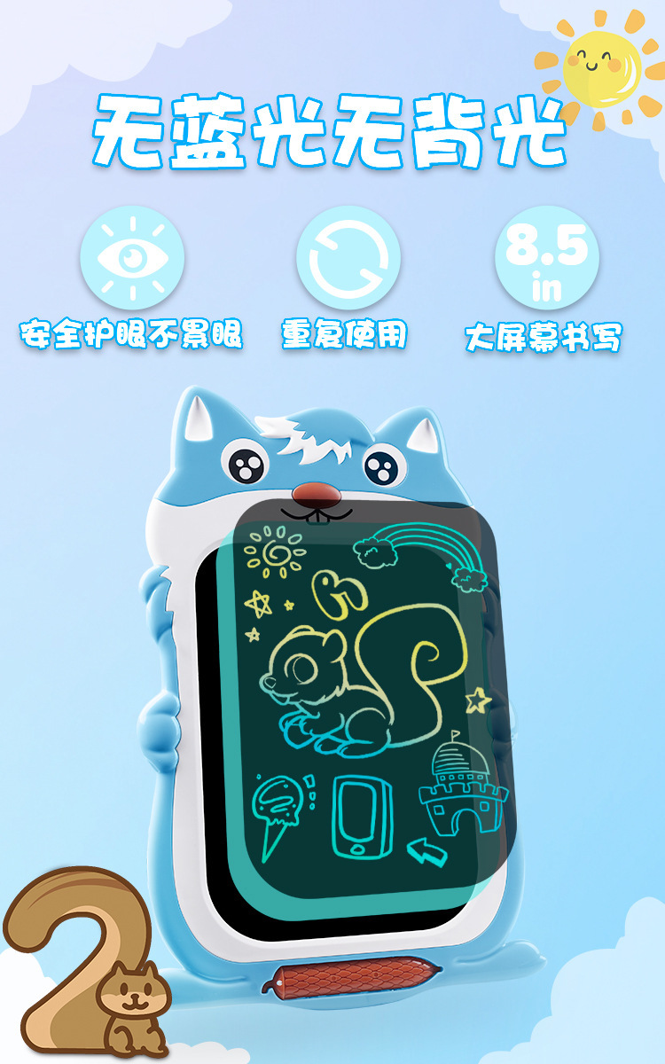 2024 새로운 다람쥐 필기 보드 8.5 인치 필기 보드 어린이 디지털 보드 교육 장난감 LCD 드로잉 보드