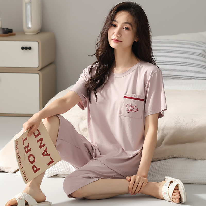 가슴 패드가 달린 여성 잠옷 여름 모달 풀오버 반팔 크롭 팬츠 세트 겉옷 플러스 사이즈 뚱뚱한 자매 홈웨어스토어 가기