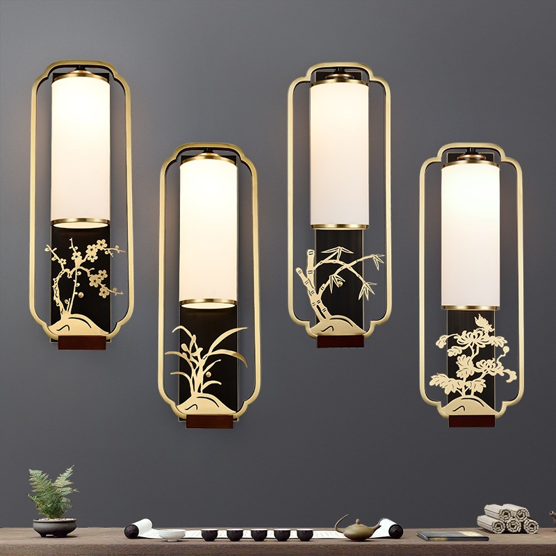 새로운 중국 스타일의 벽 램프 현대 미니멀 한 복고풍 거실 TV 배경 벽 램프 매화 난초 대나무 국화 호텔 침실 침대 옆 램프