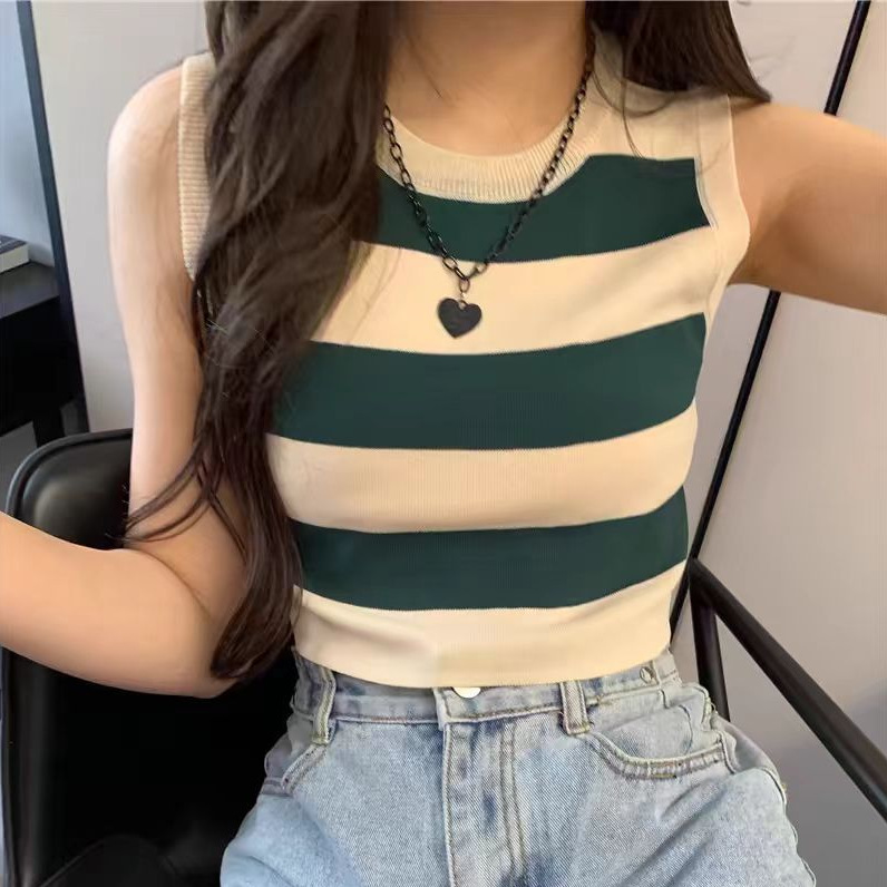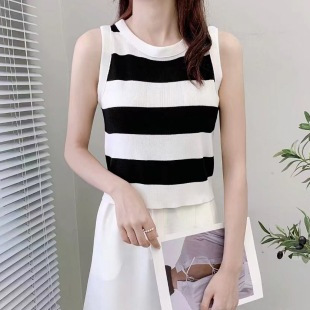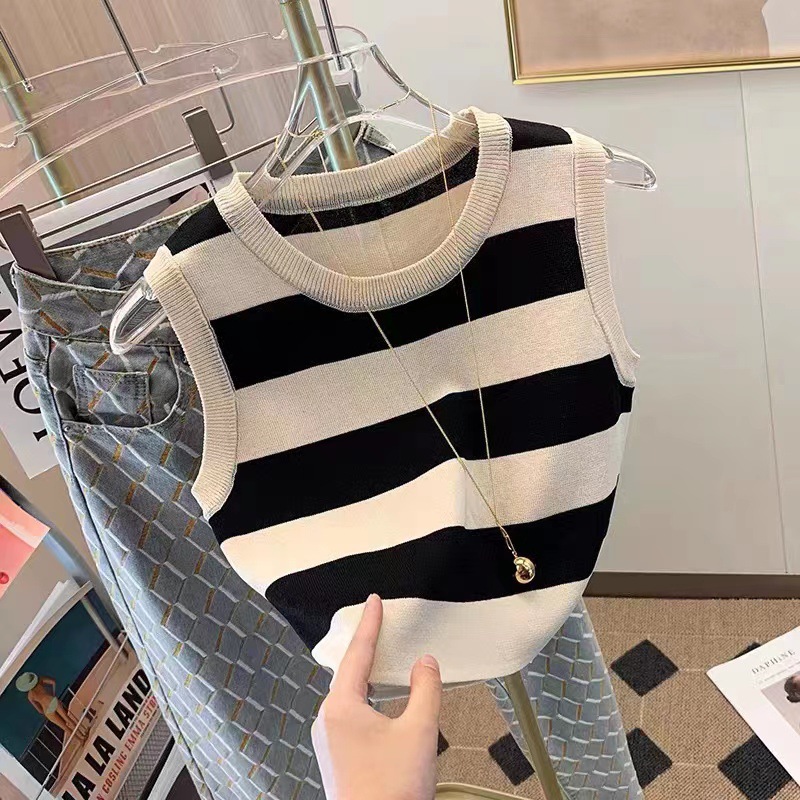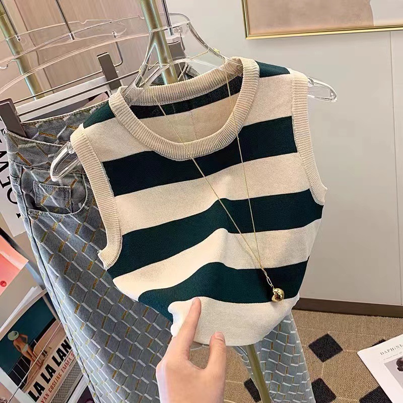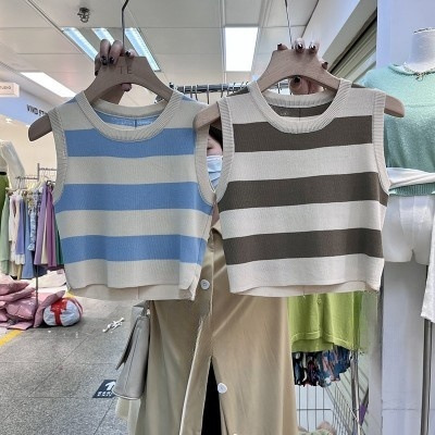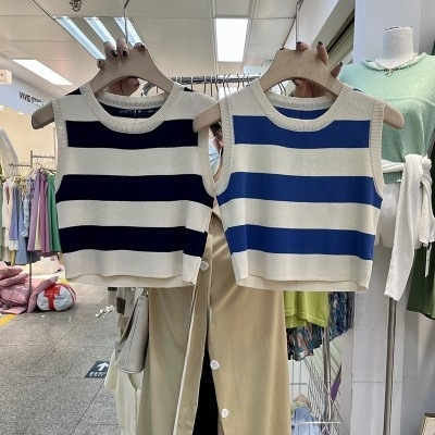 한국 동대문 2026년 여름 신상 컬러블록 스트라이프 니트 조끼 여성용 디자인 감각적인 틈새시장 스타일 조끼탑스토어 가기