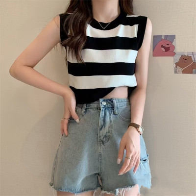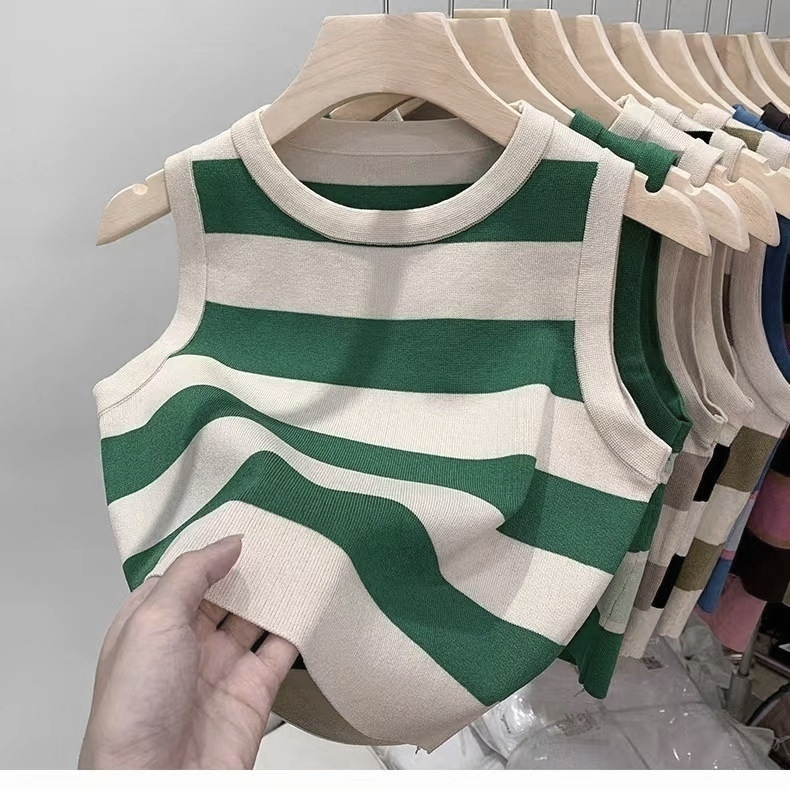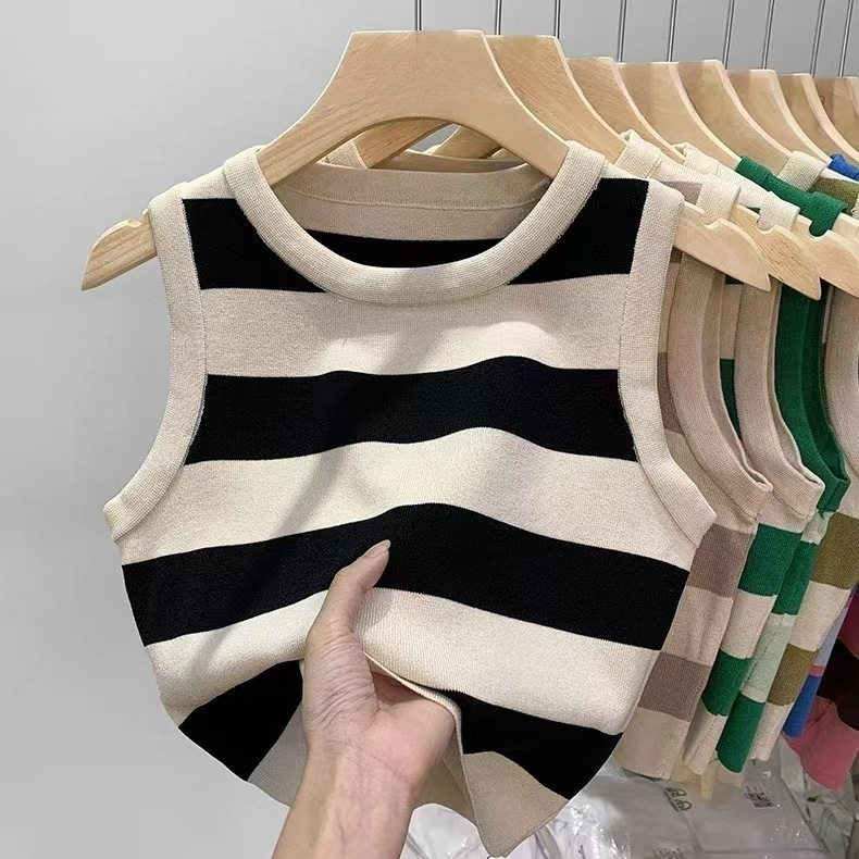 한국 동대문 2026년 여름 신상 컬러블록 스트라이프 니트 조끼 여성용 디자인 감각적인 틈새시장 스타일 조끼탑