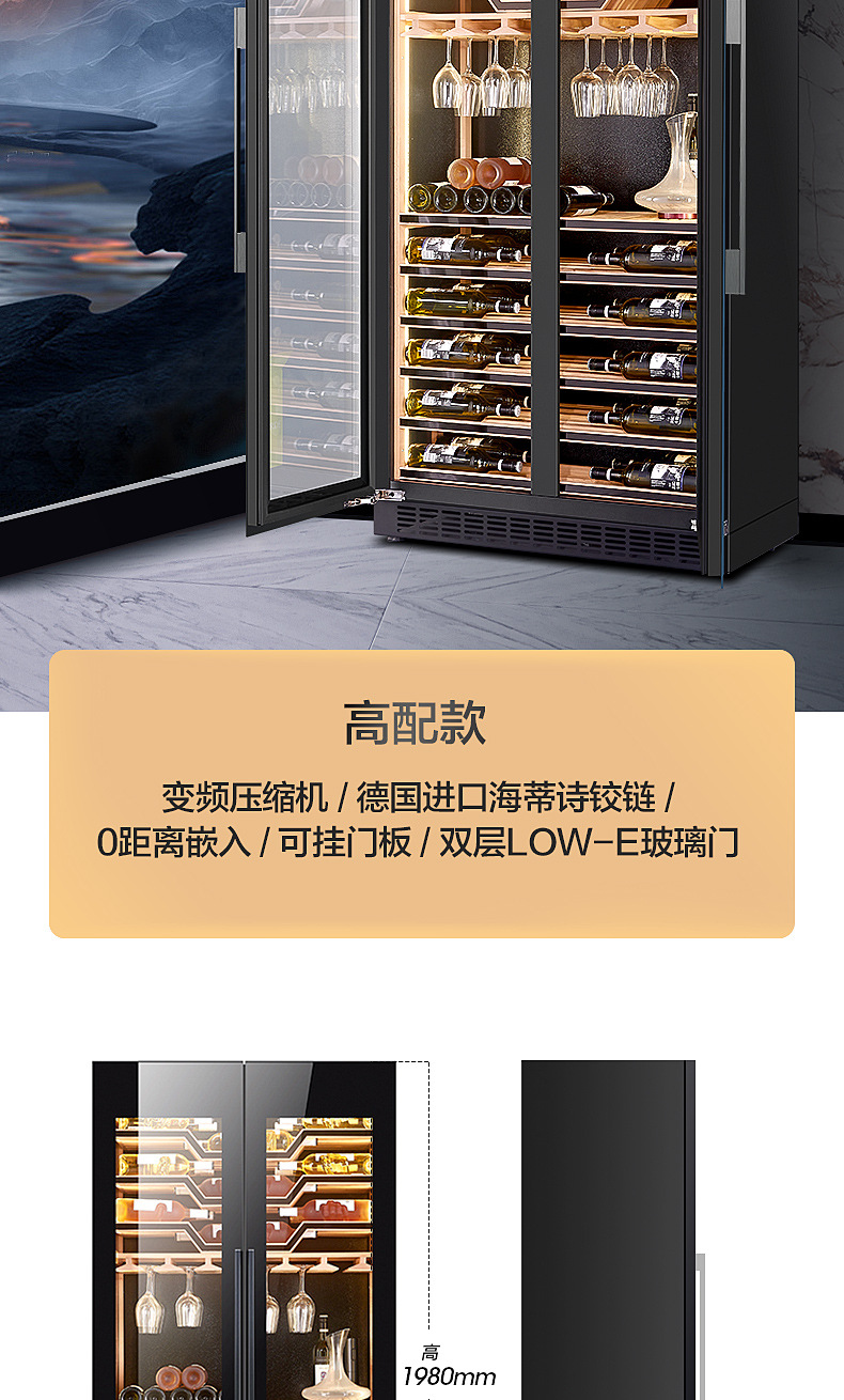 Zunbao JC-735A 와인 캐비닛 아이스 바 임베디드 주파수 변환 가정용 2 도어 통합 냉장 거실 온도 조절기 캐비닛