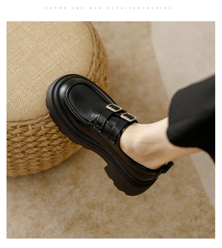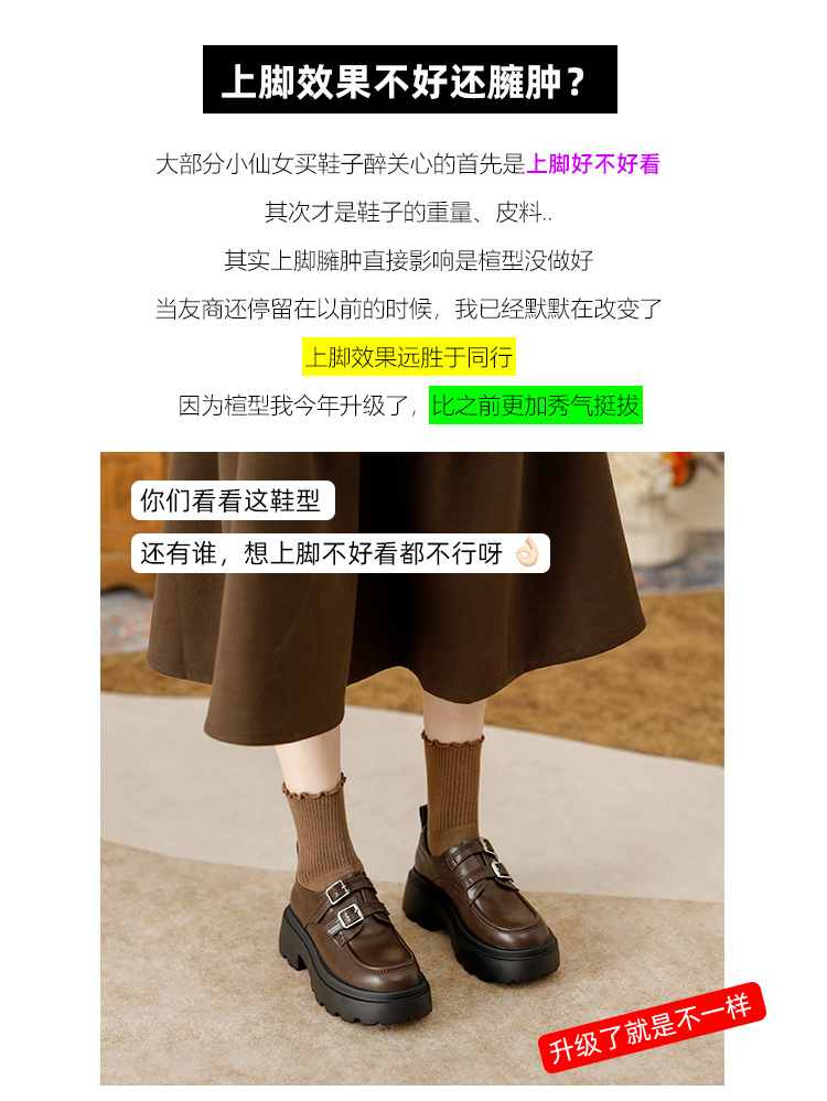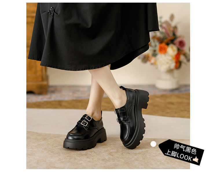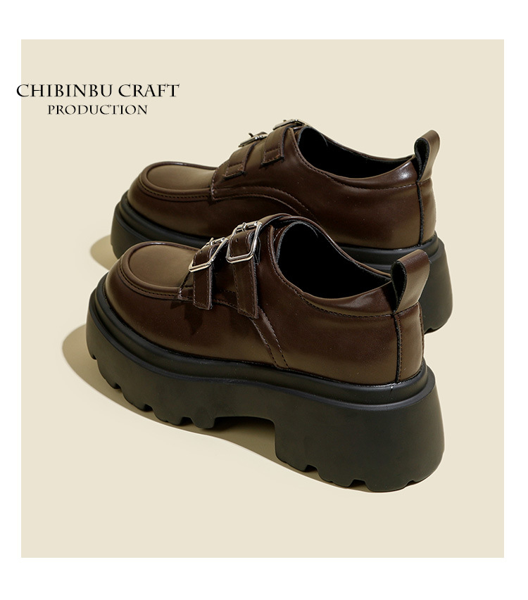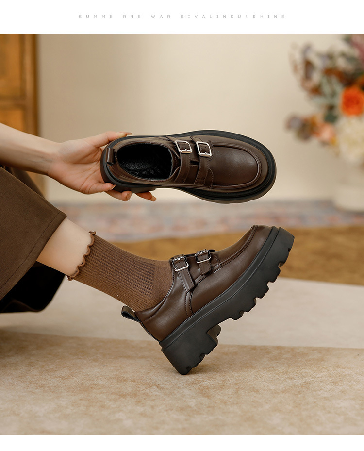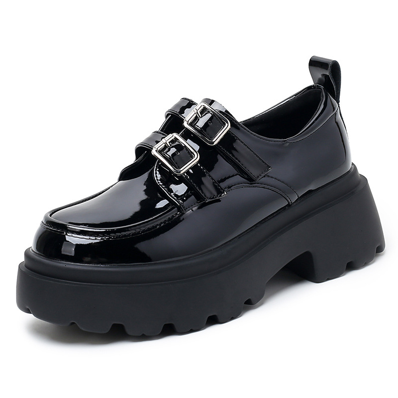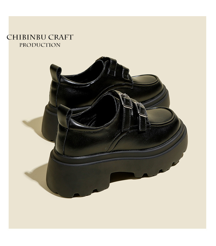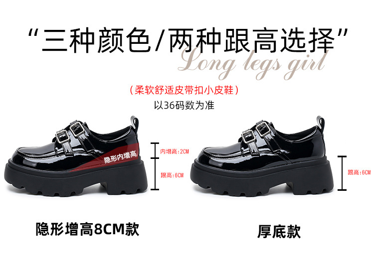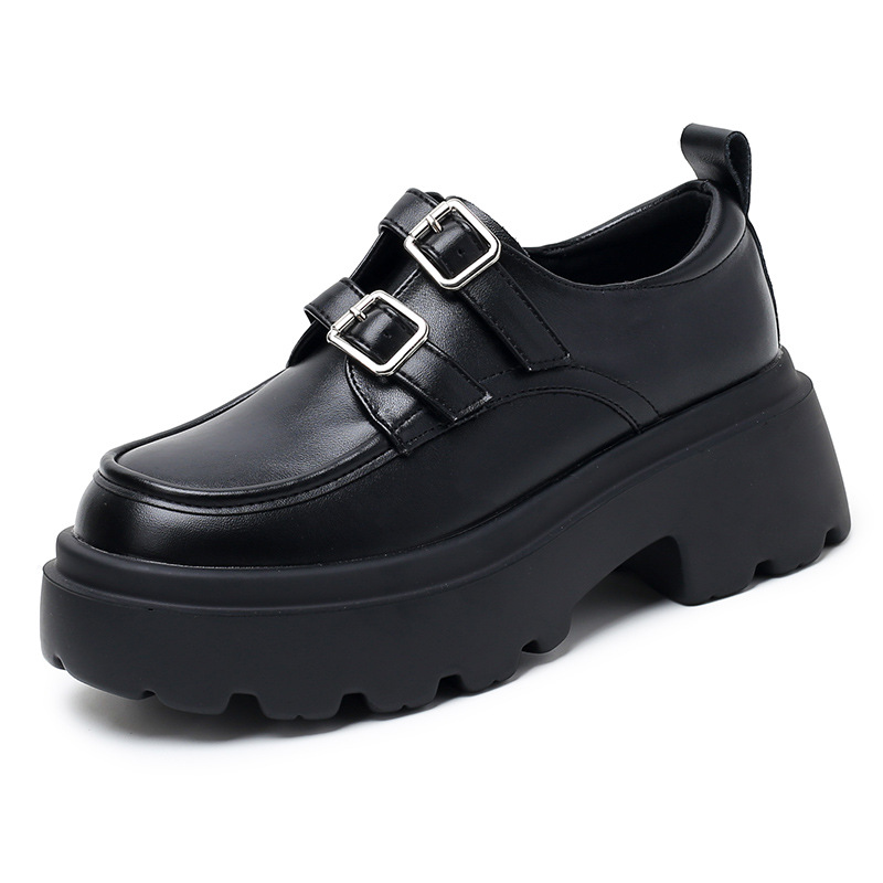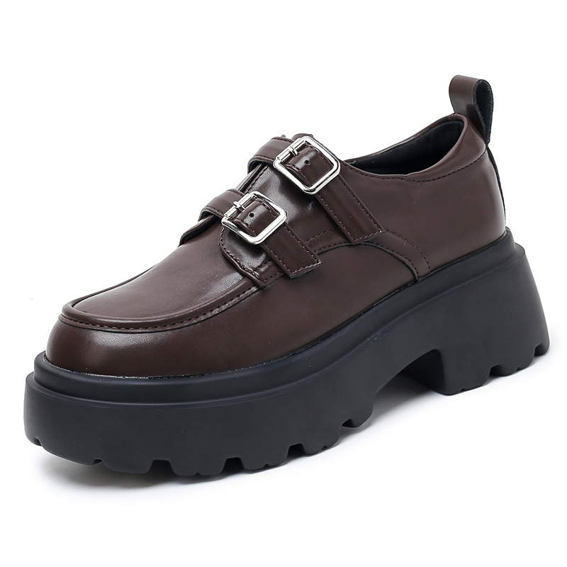 여성용 두꺼운 가죽 신발, 더블 브레스트 영국 스타일 로퍼, 인기있는 온라인, 높이 증가 신발, 2020 봄스토어 가기