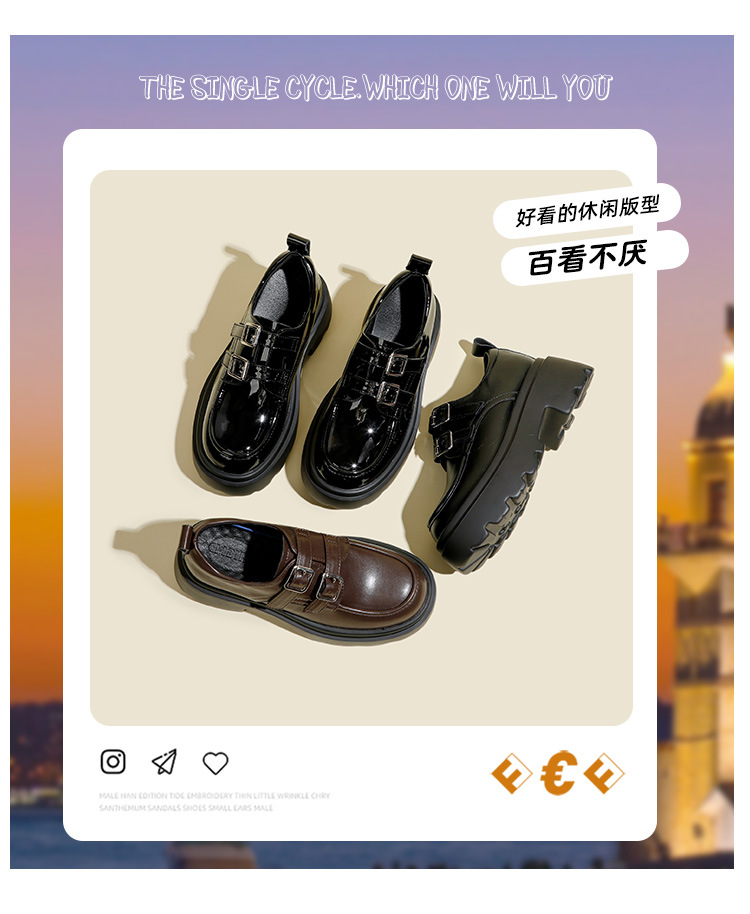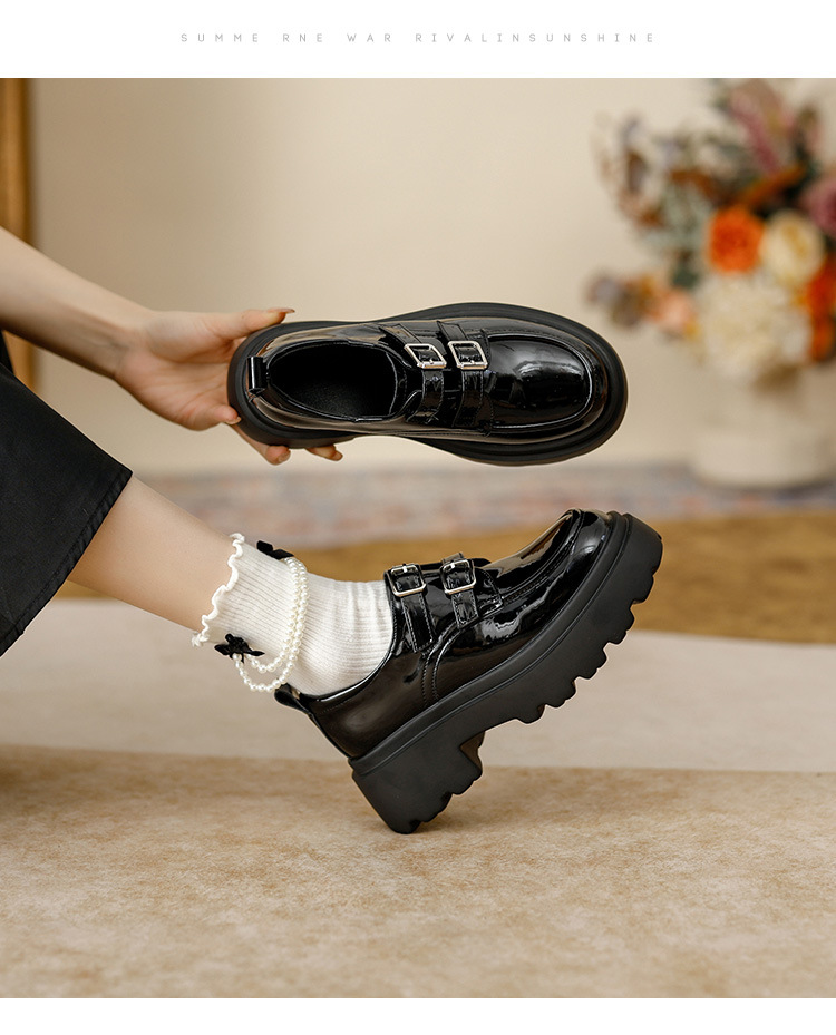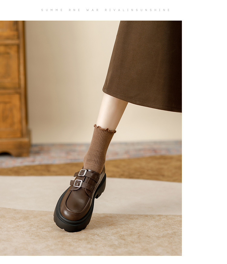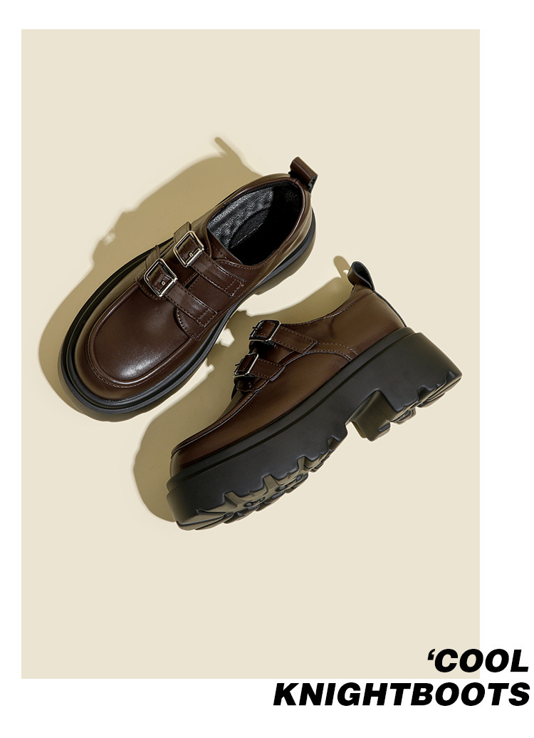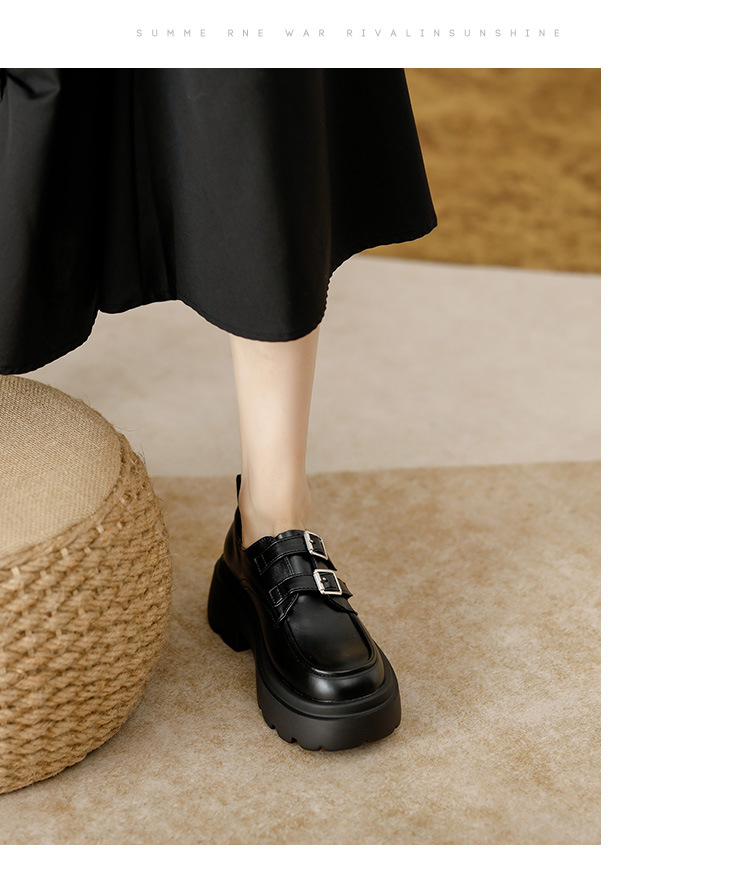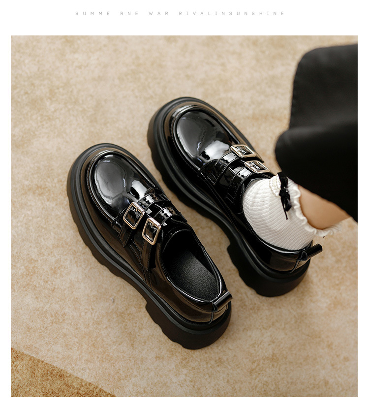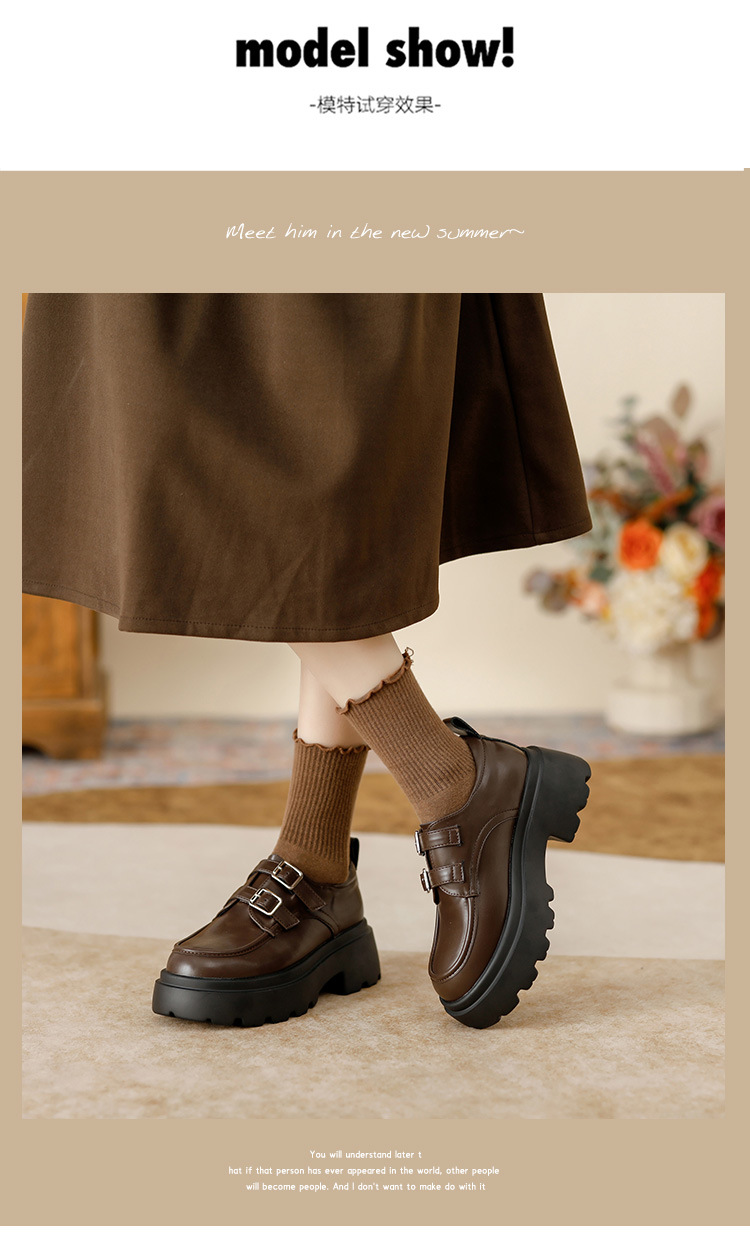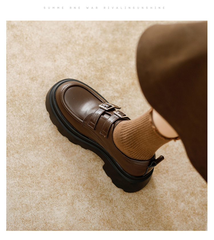 여성용 두꺼운 가죽 신발, 더블 브레스트 영국 스타일 로퍼, 인기있는 온라인, 높이 증가 신발, 2020 봄스토어 가기