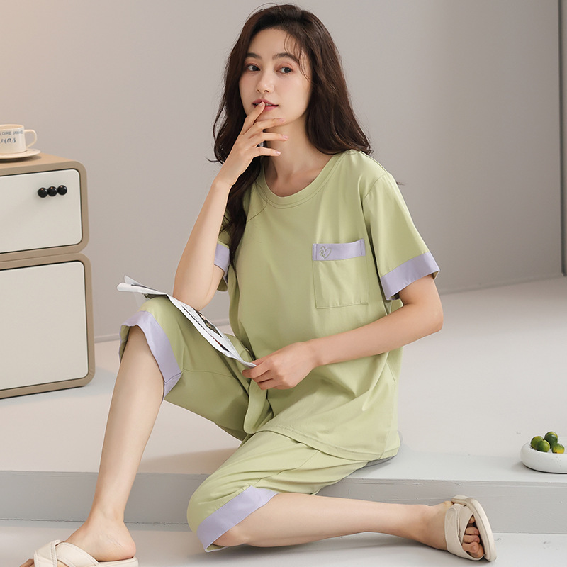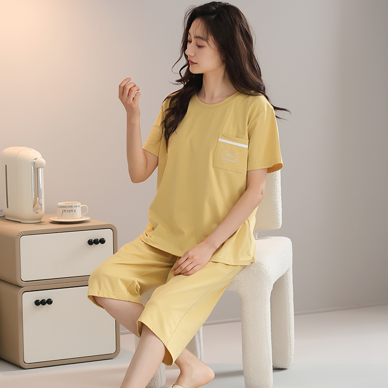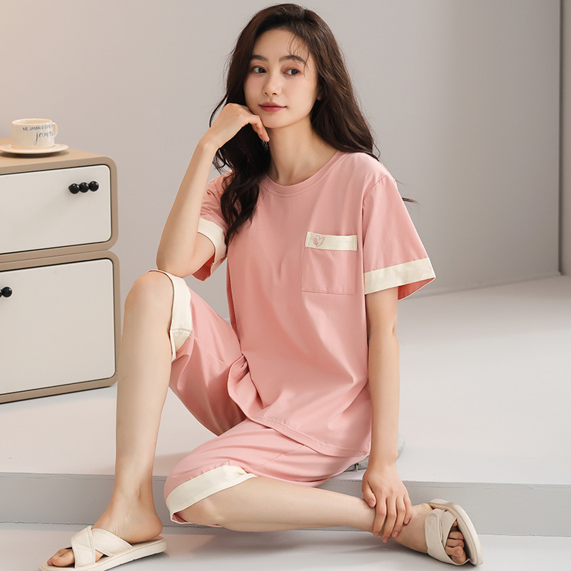 가슴 패드 통합 모달 파자마 여성 여름 2024 새로운 짧은 소매 얇은 여름 홈웨어 세트 멋진 느낌스토어 가기
