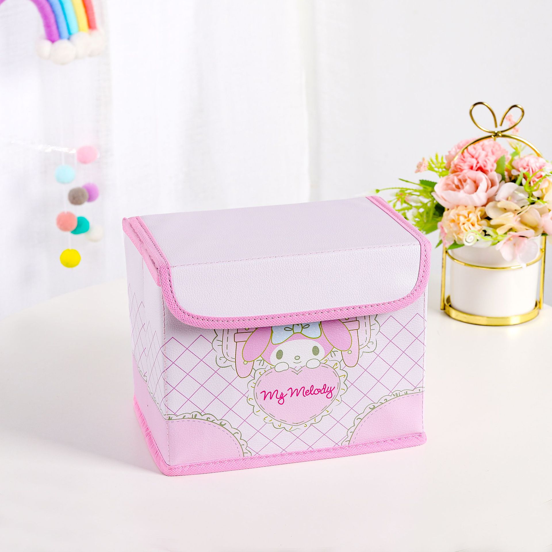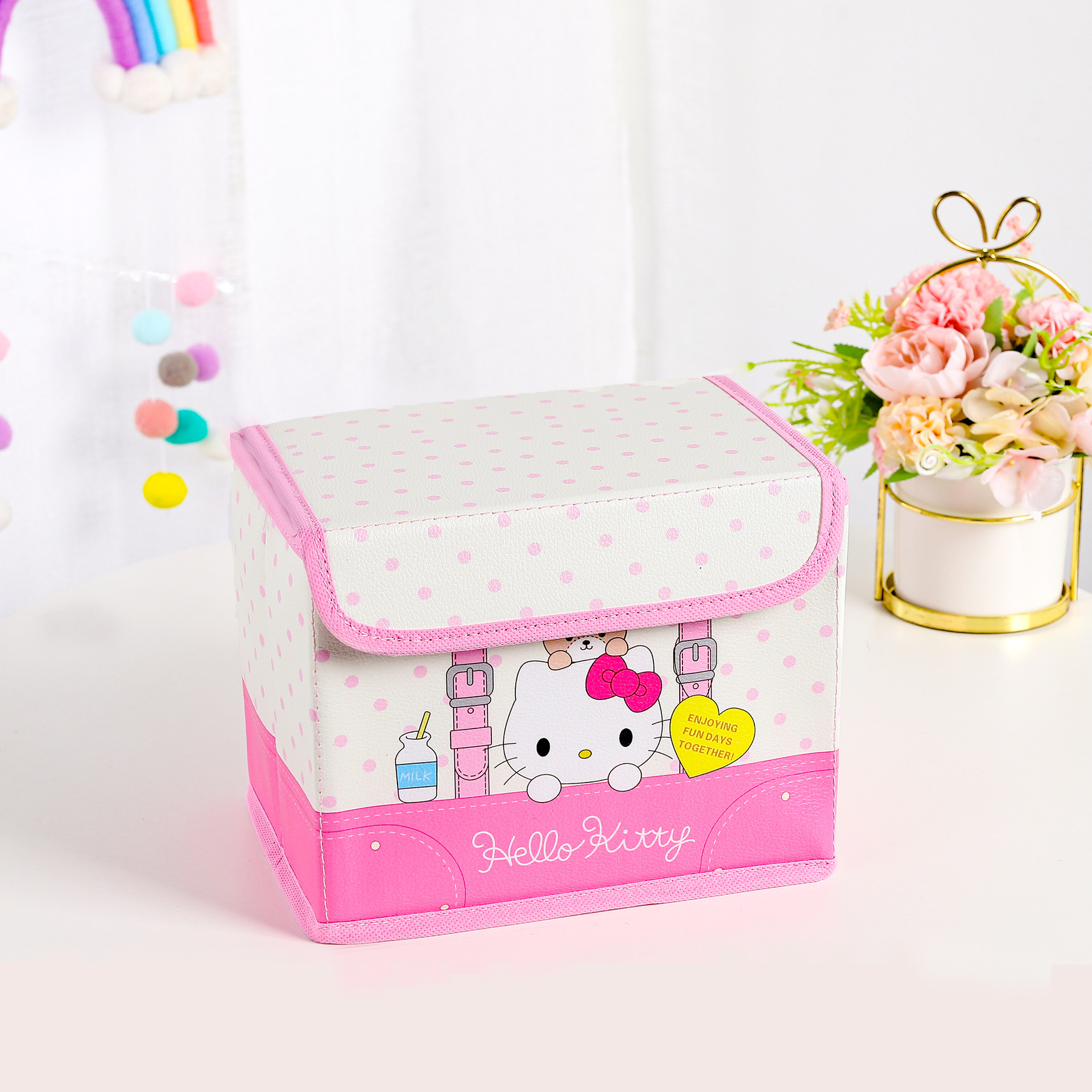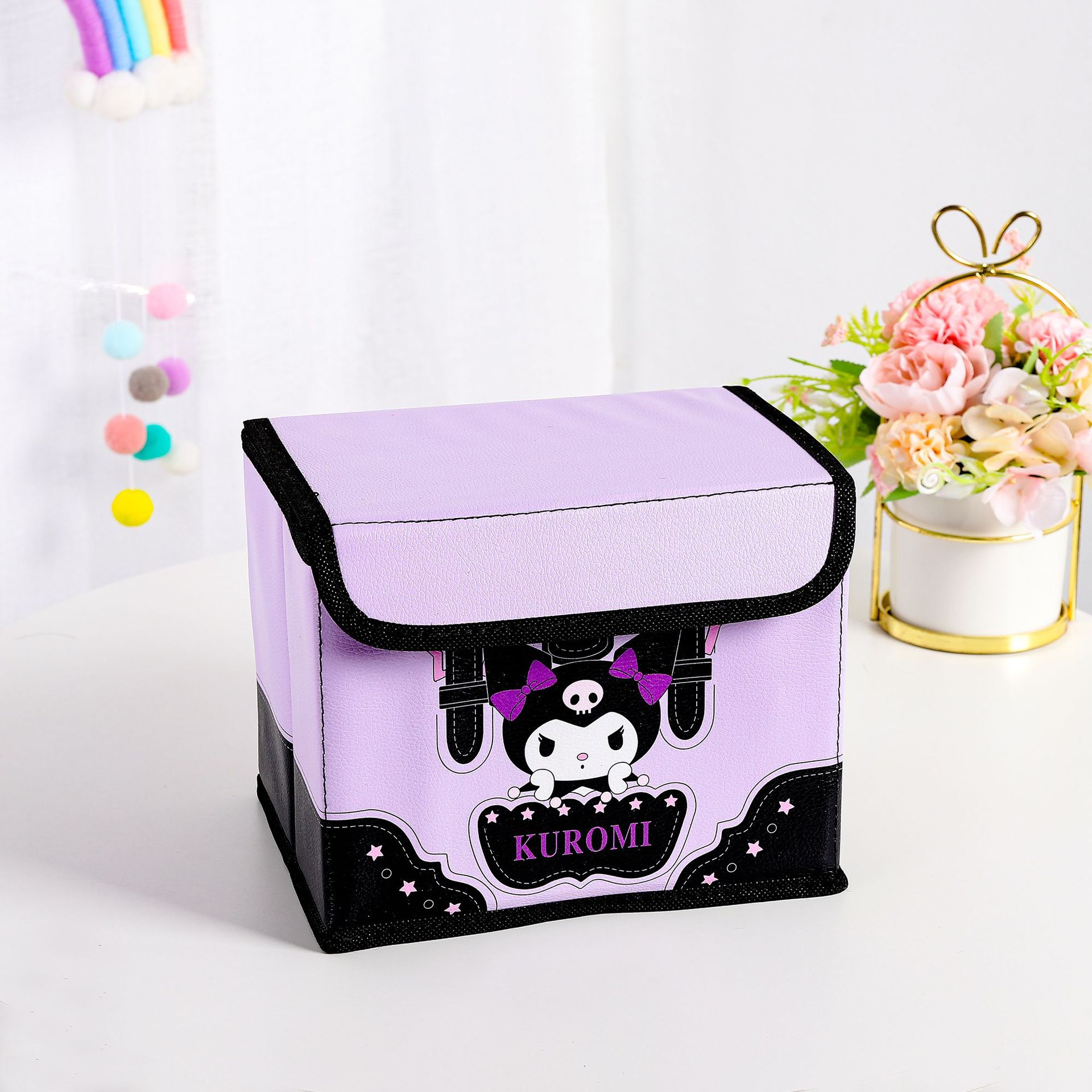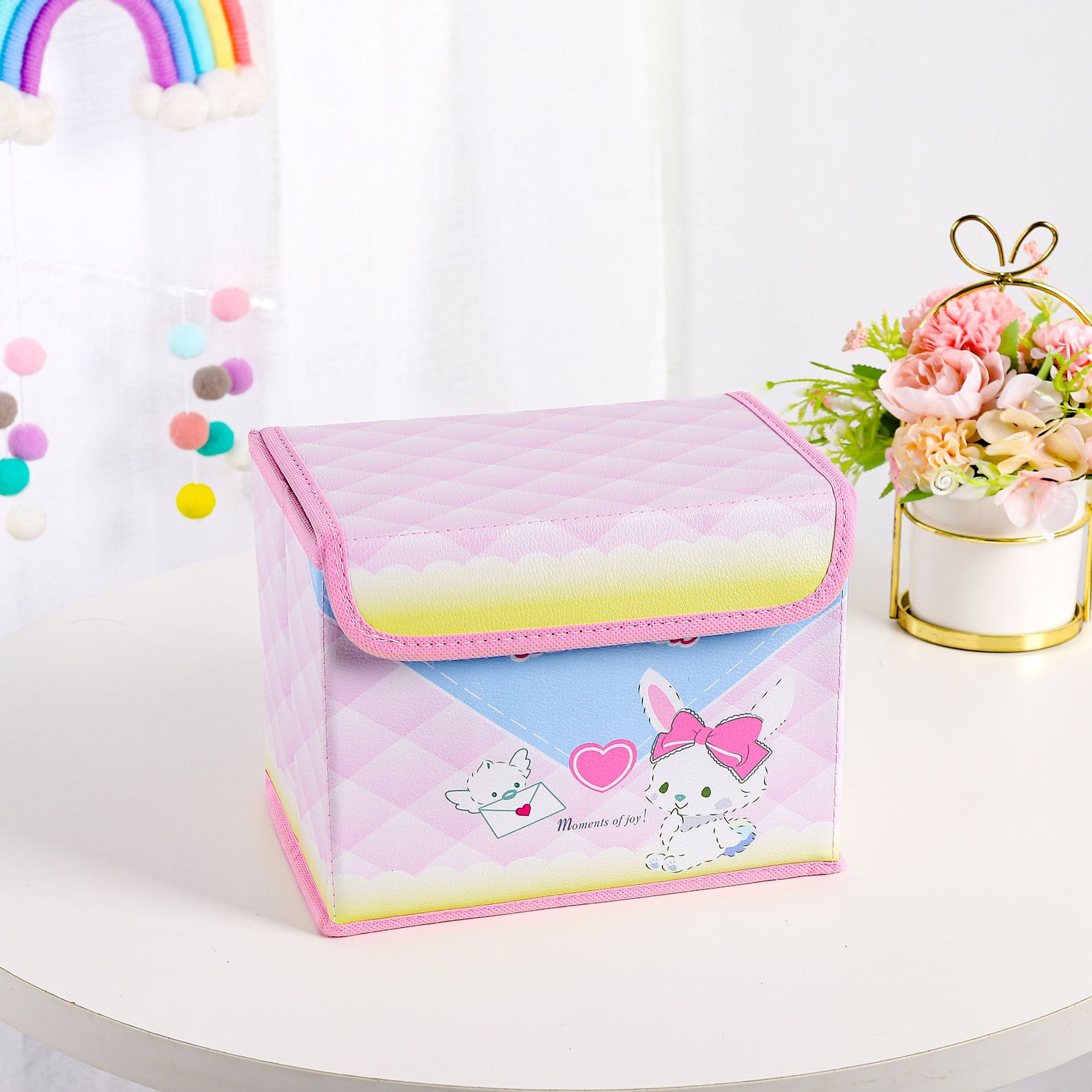 만화 PU 가죽 스트랩 시리즈 플립 데스크탑 잡화 작은 저장 상자 사무실 옷장 접이식