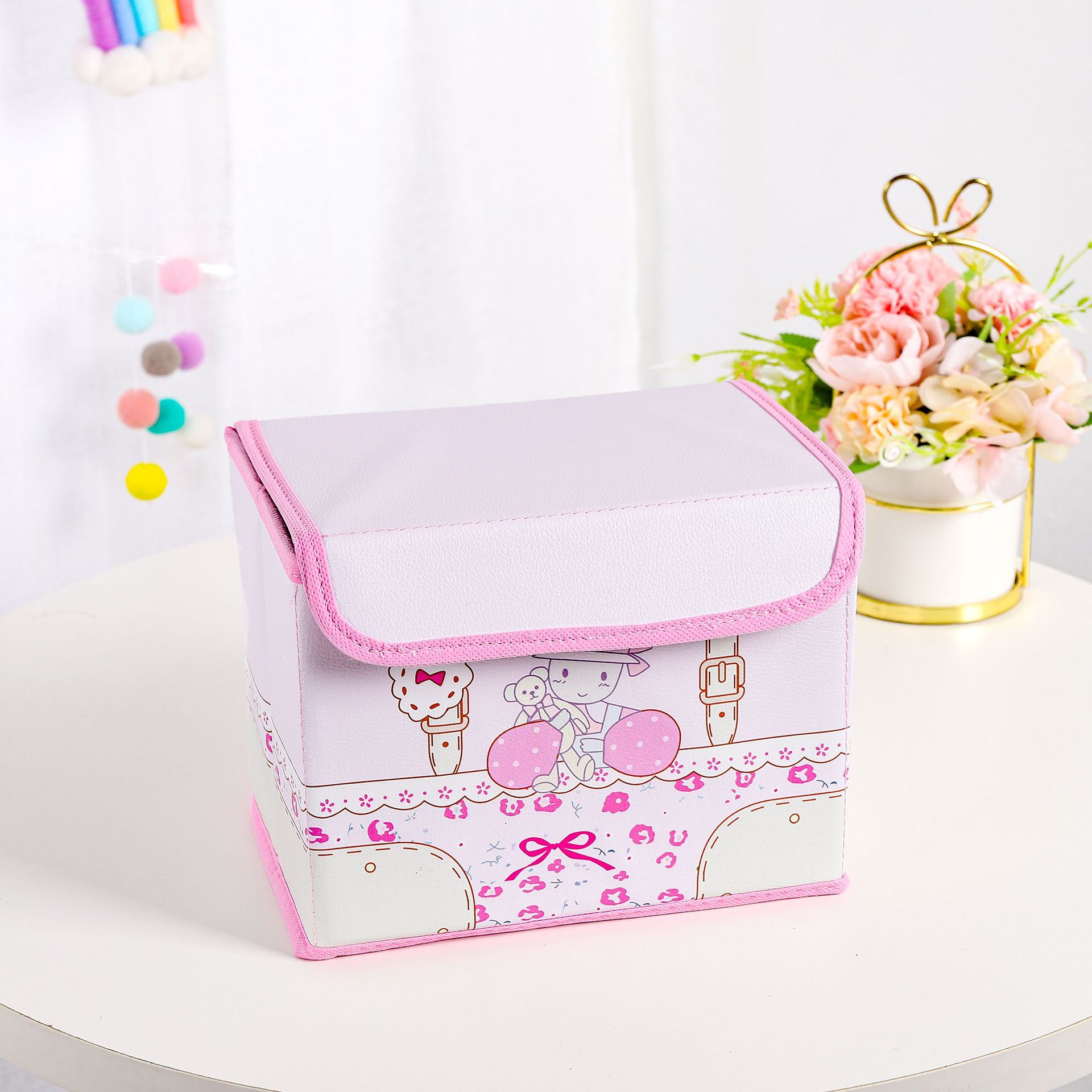 만화 PU 가죽 스트랩 시리즈 플립 데스크탑 잡화 작은 저장 상자 사무실 옷장 접이식스토어 가기