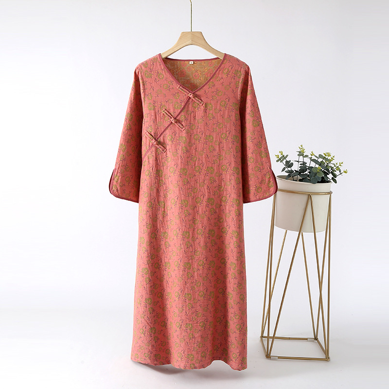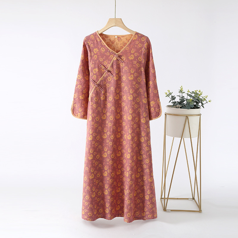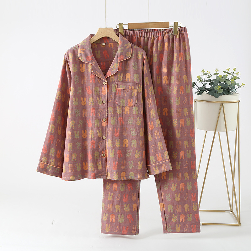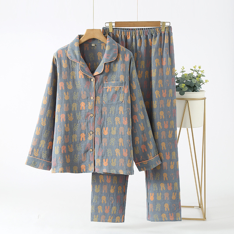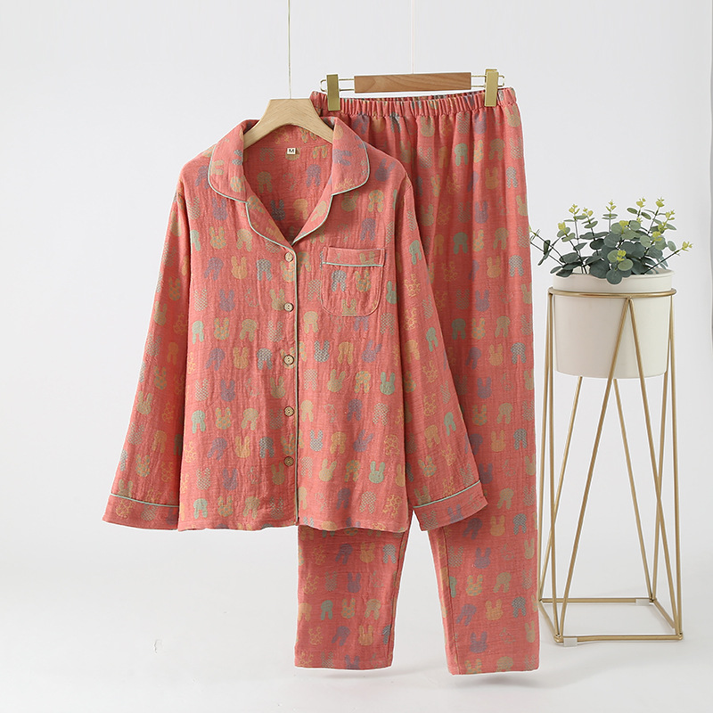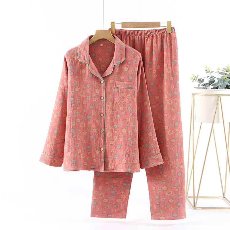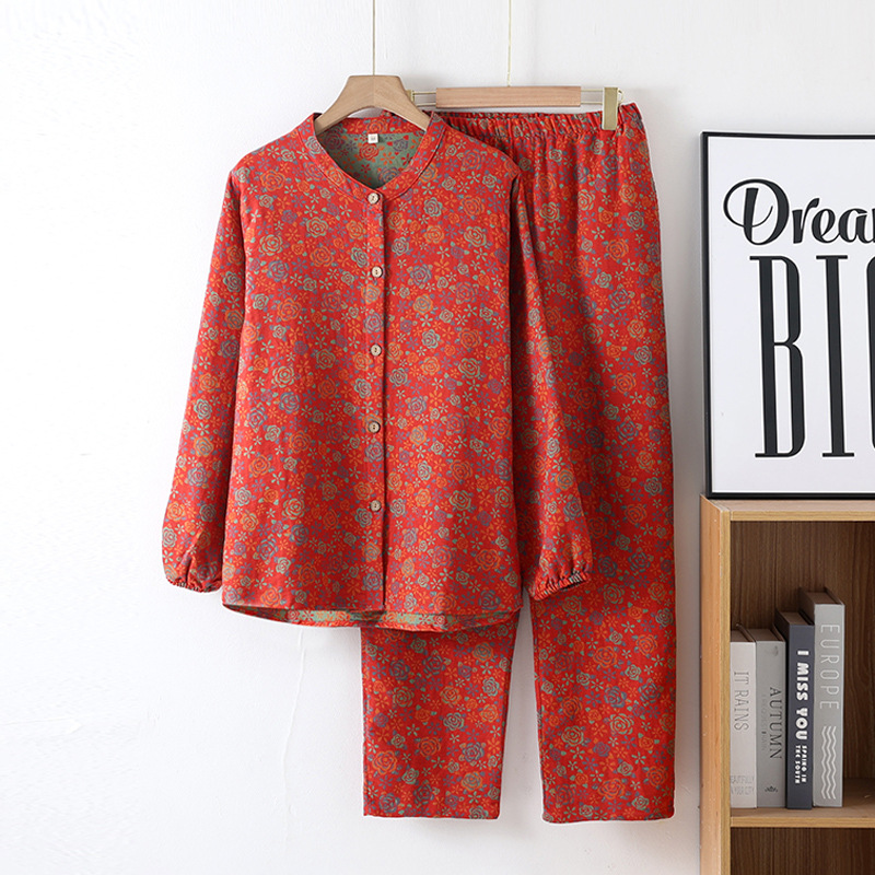 중국풍 잠옷 여성용 신형 중국풍 순면 이중 거즈 얇은 스타일 여성 봄 가을 긴팔 맞춤형 홈웨어 세트 도매스토어 가기