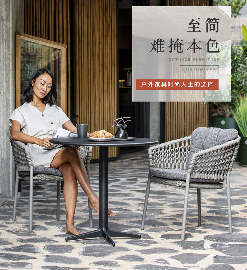 야외 등나무 테이블과 의자 조합 안뜰 정원 방수 자외선 차단식 식탁 빌라 호텔 야외 파빌리온 야외 가구스토어 가기