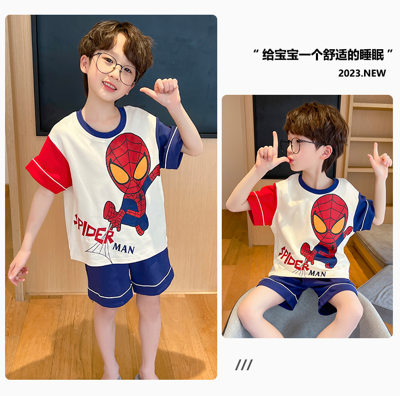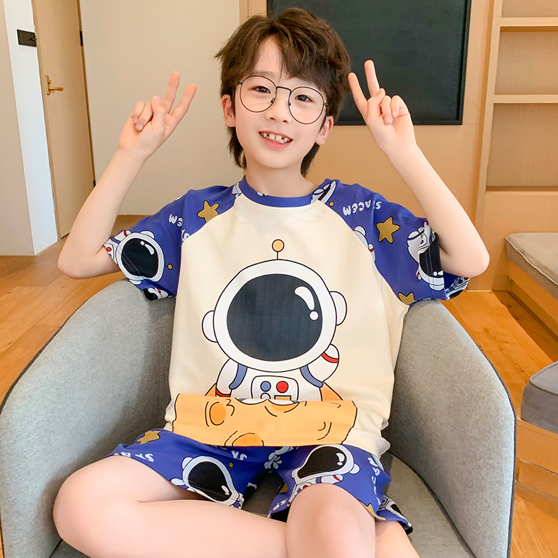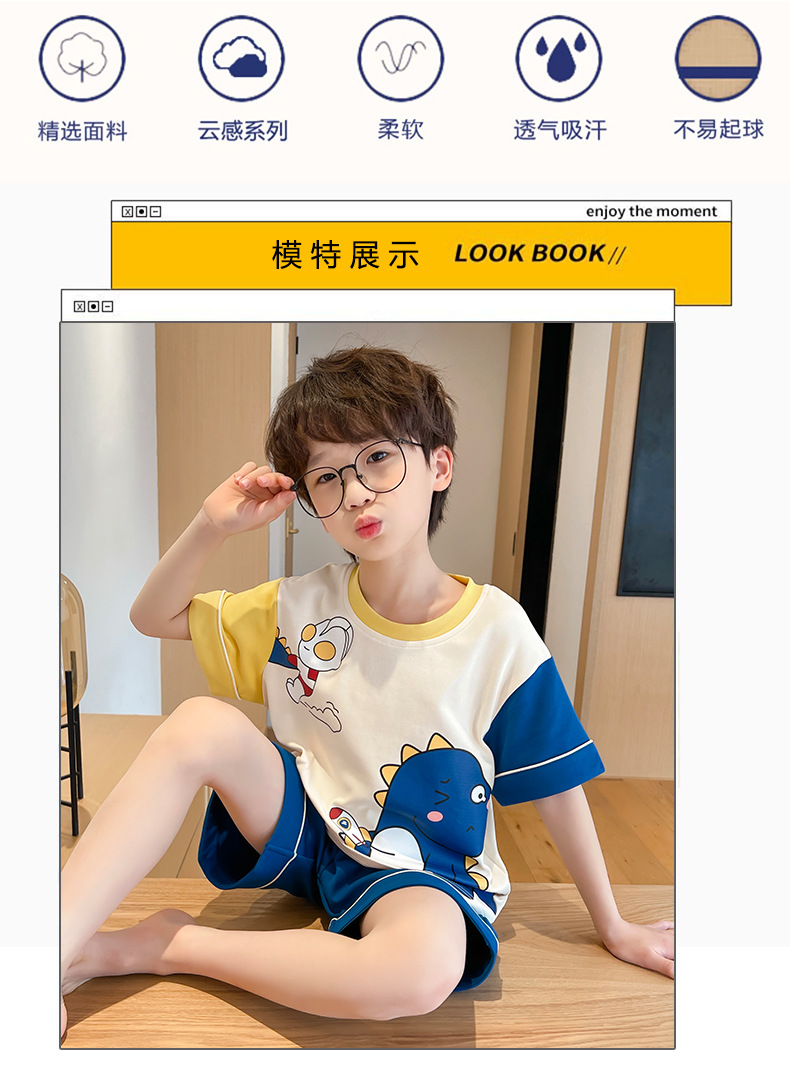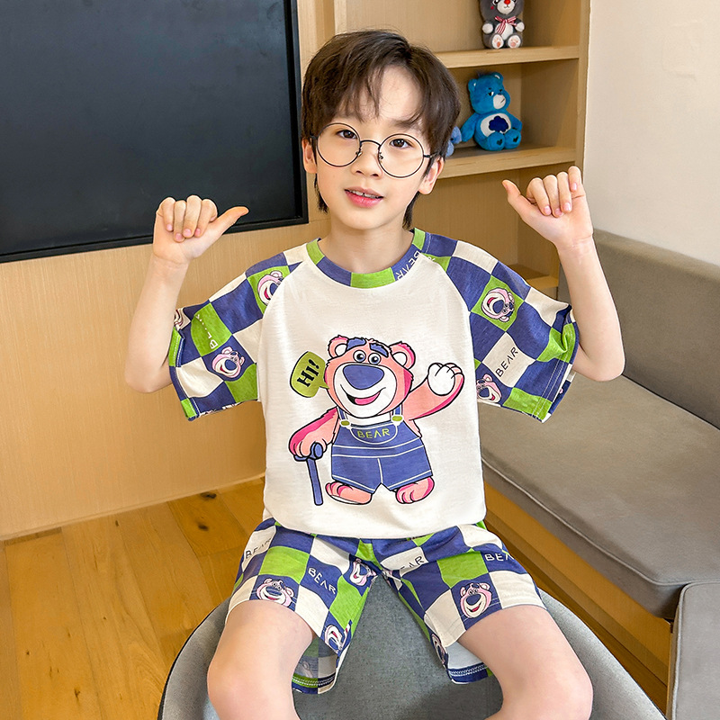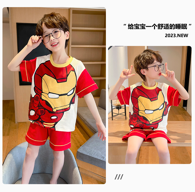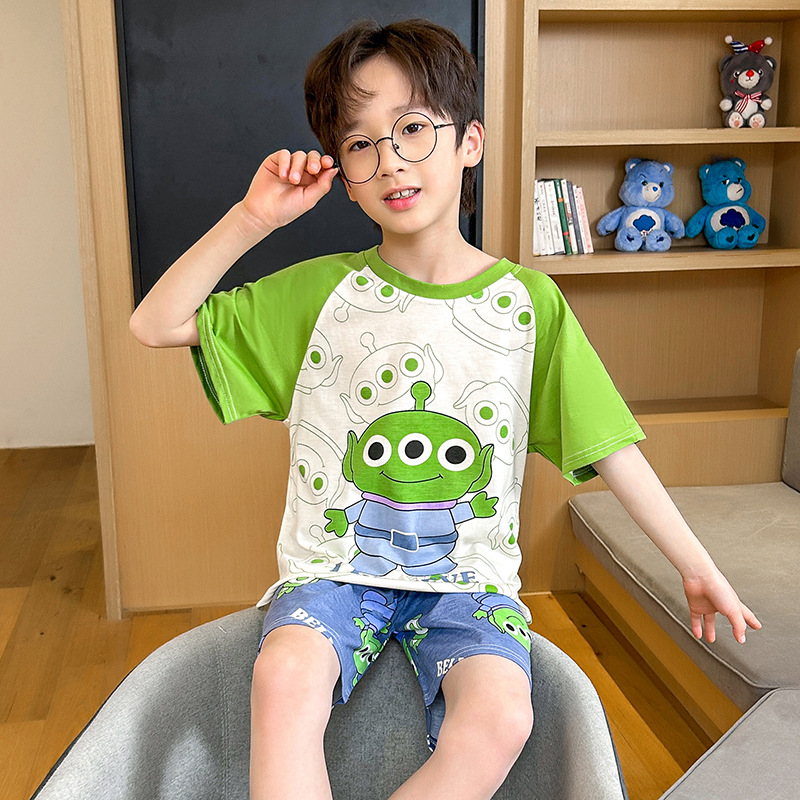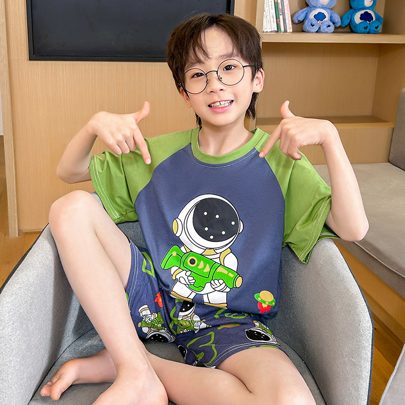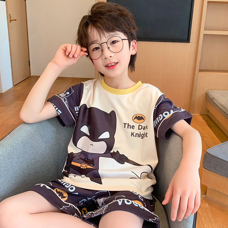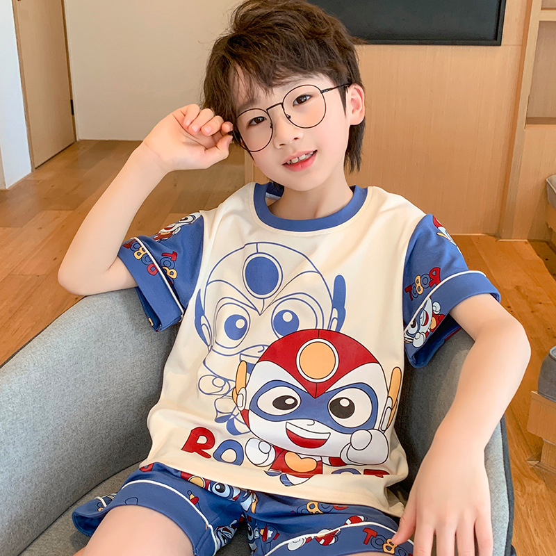 어린이 잠옷 소년 여름 빗질면 반팔 반바지 얇은 만화 소년 아기 홈 세트 여름스토어 가기