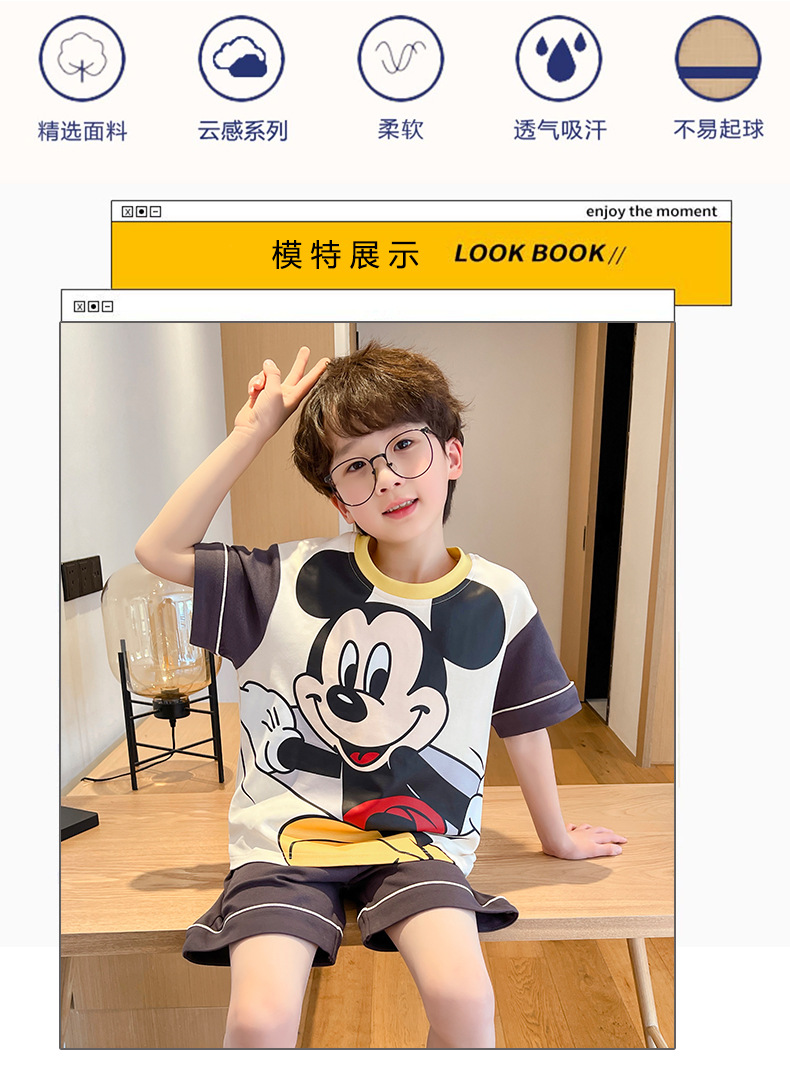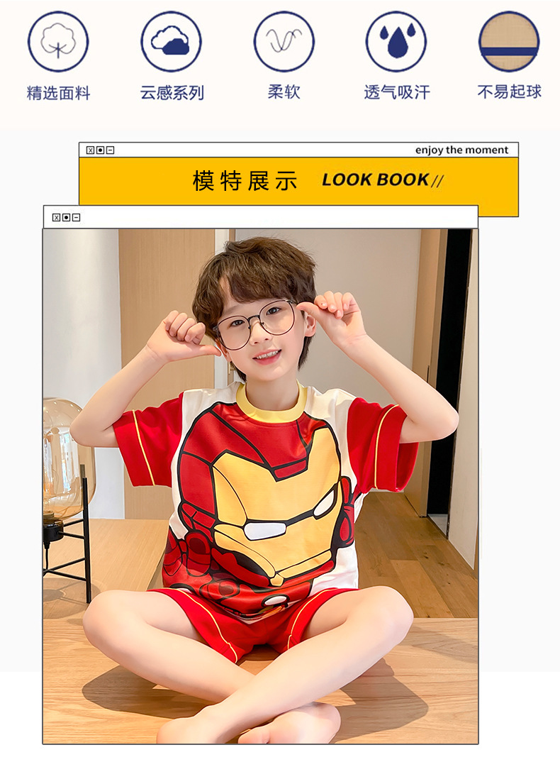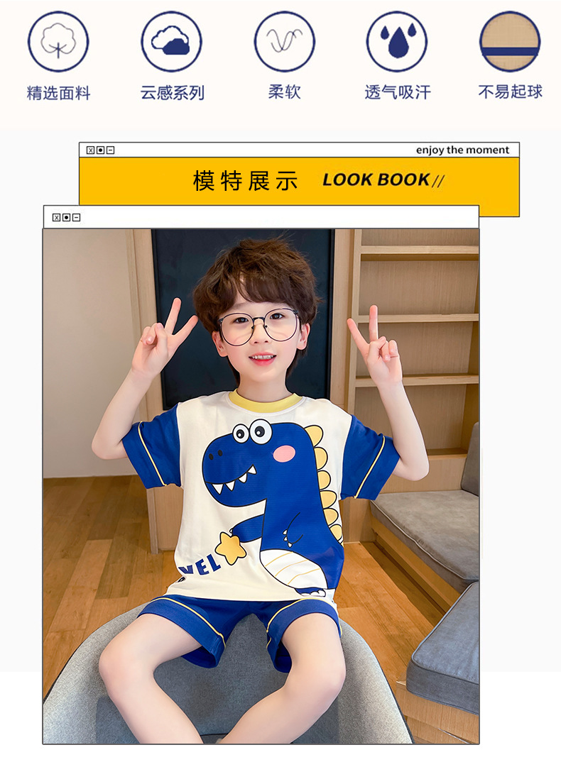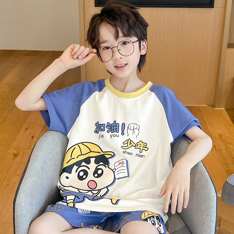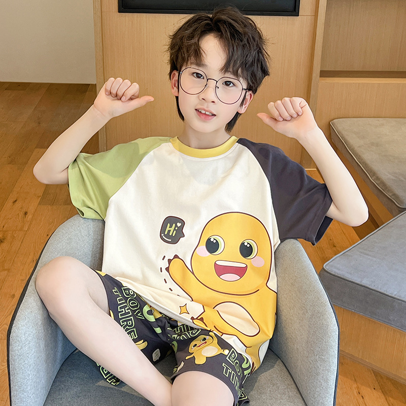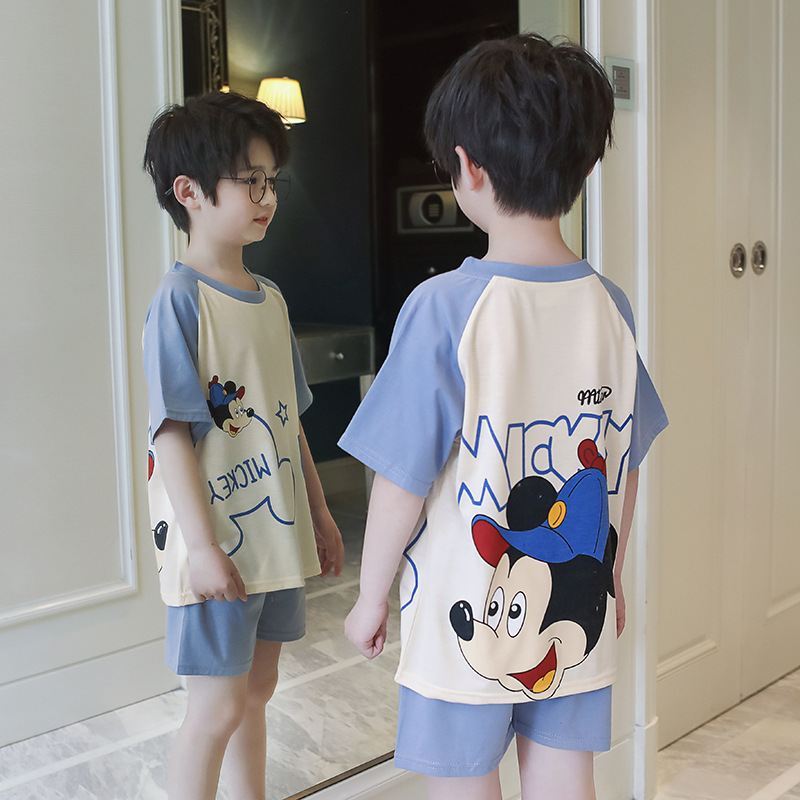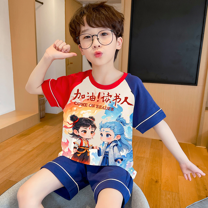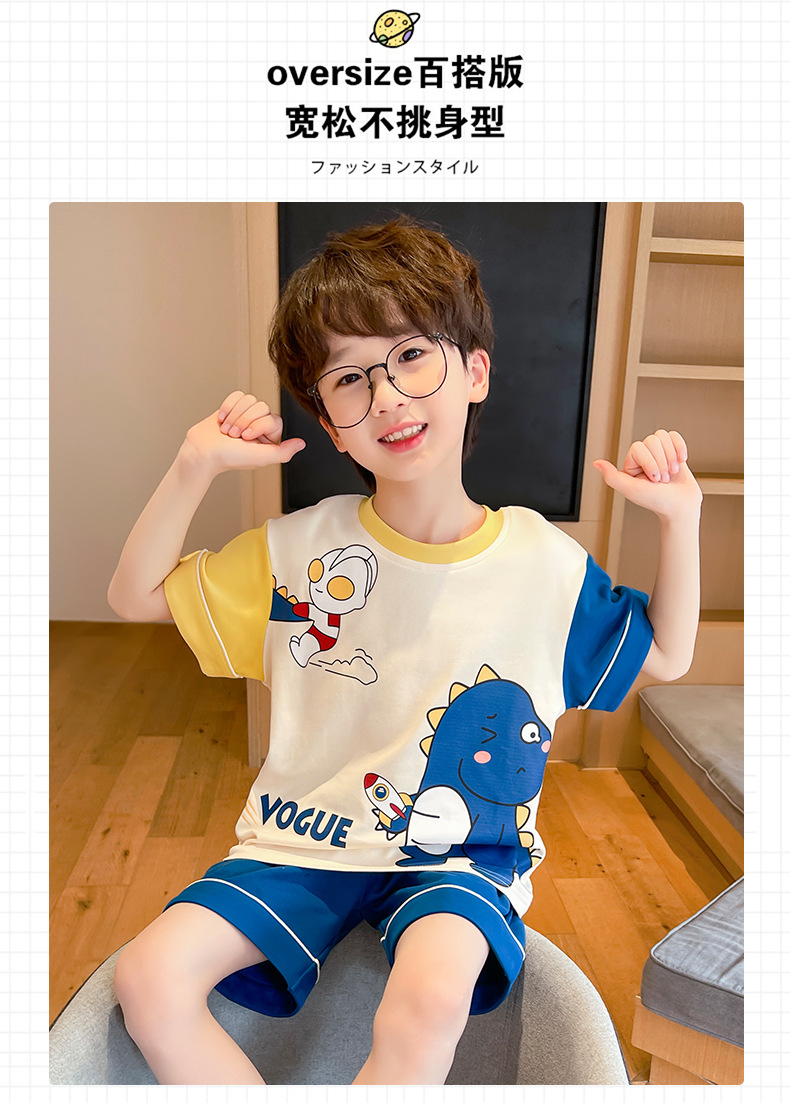 어린이 잠옷 소년 여름 빗질면 반팔 반바지 얇은 만화 소년 아기 홈 세트 여름스토어 가기