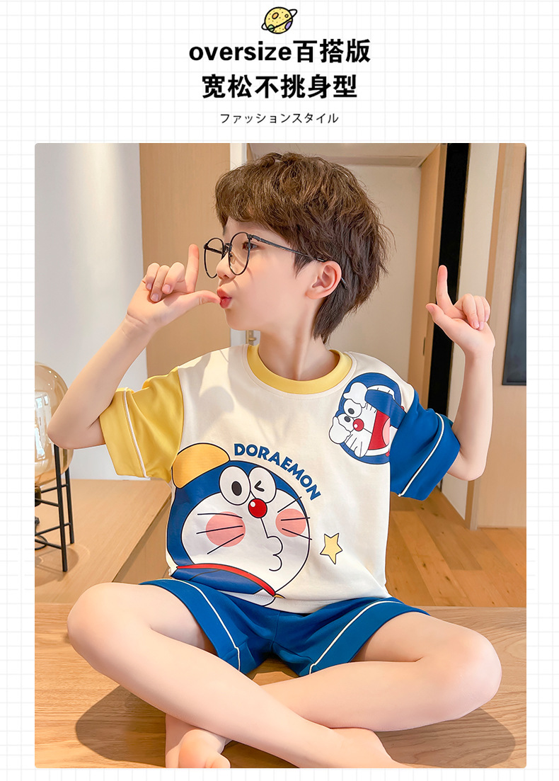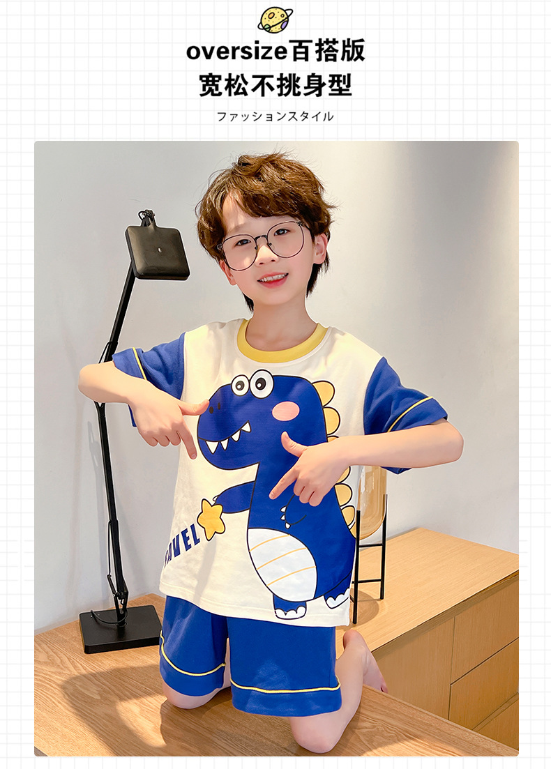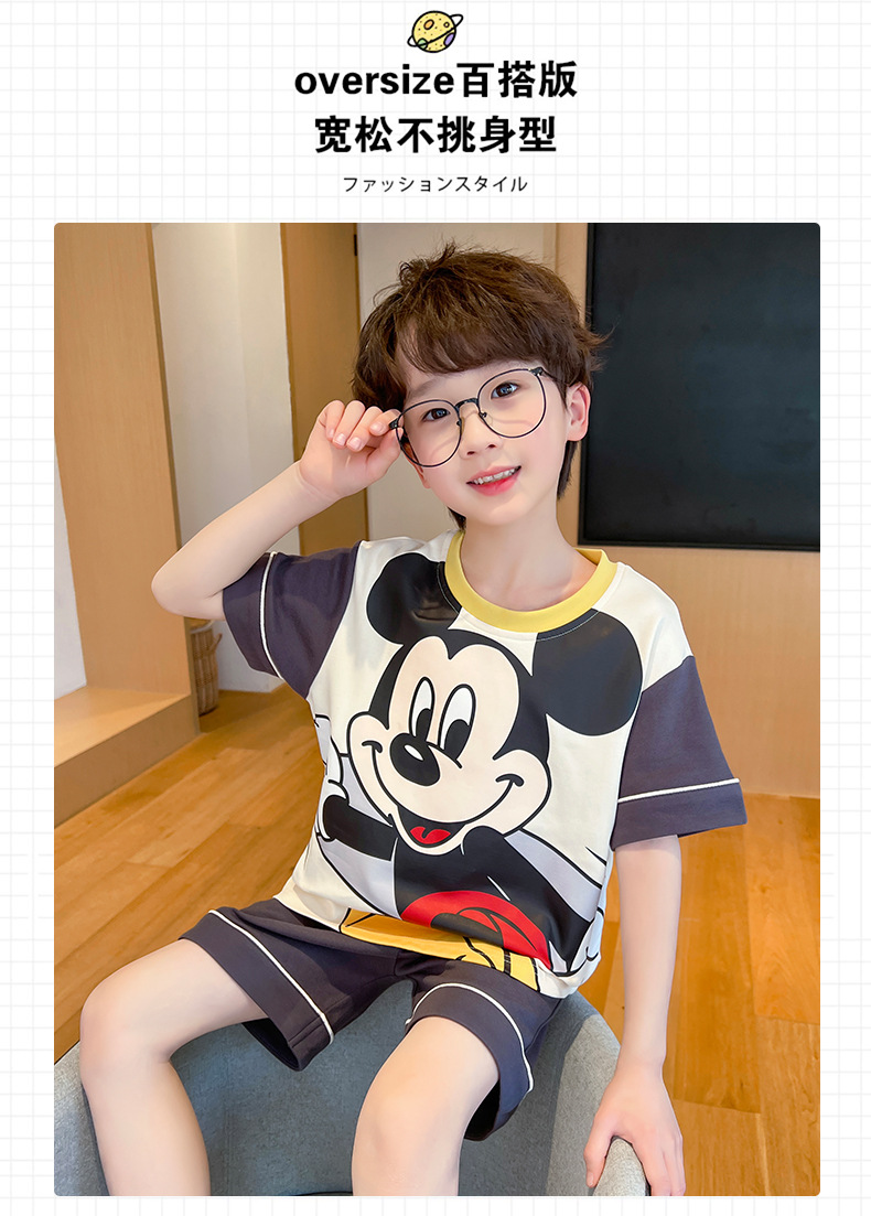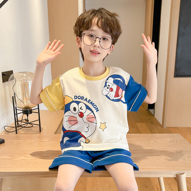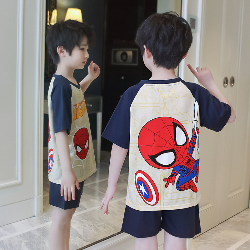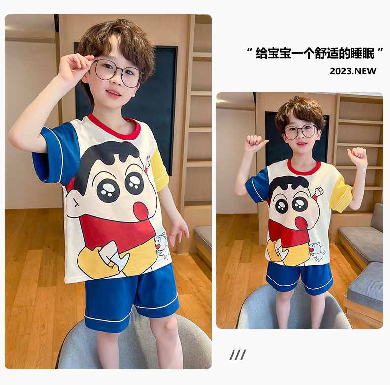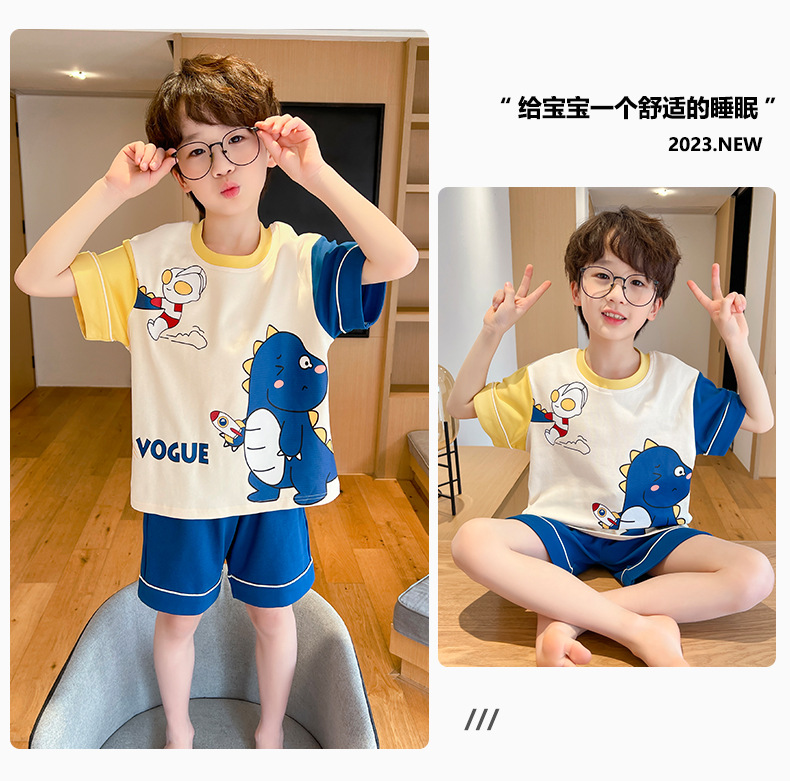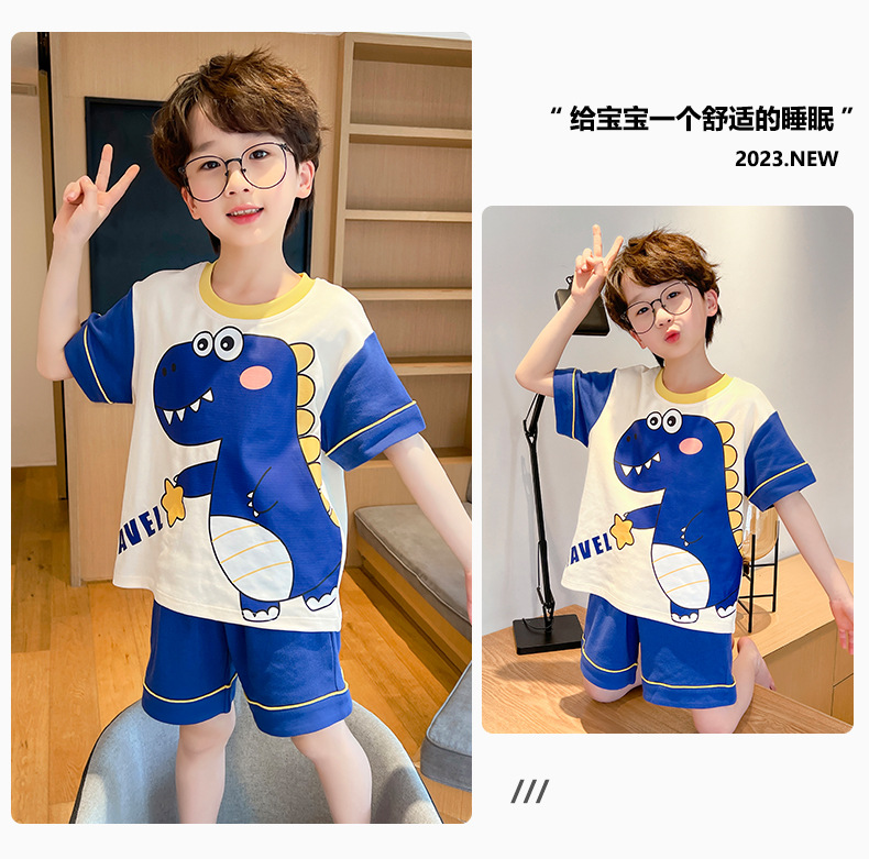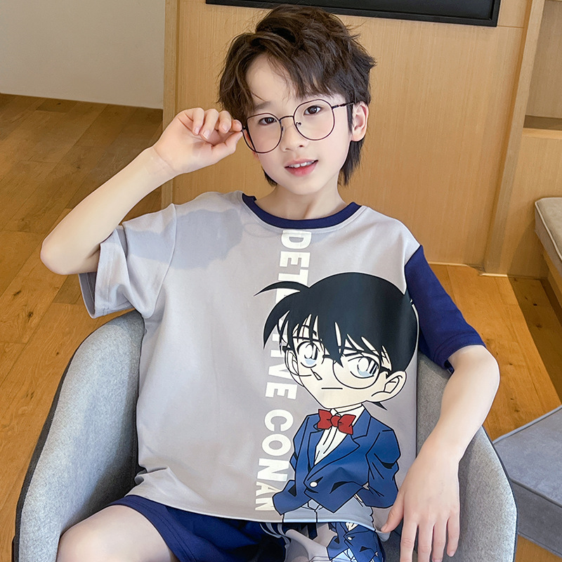 어린이 잠옷 소년 여름 빗질면 반팔 반바지 얇은 만화 소년 아기 홈 세트 여름스토어 가기