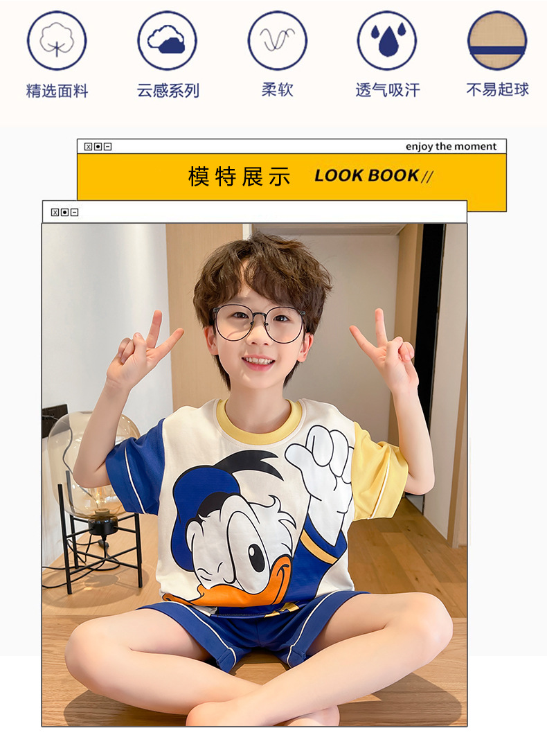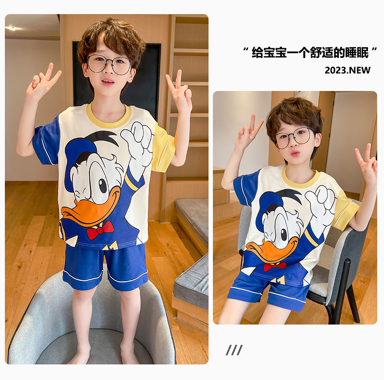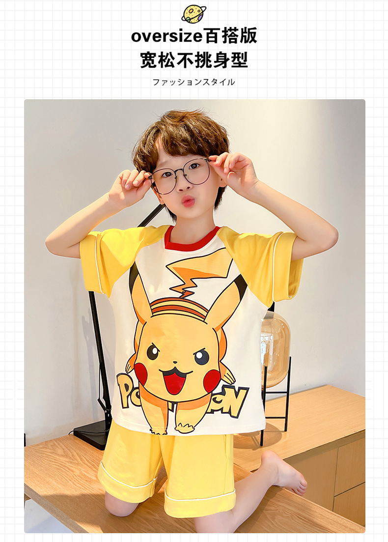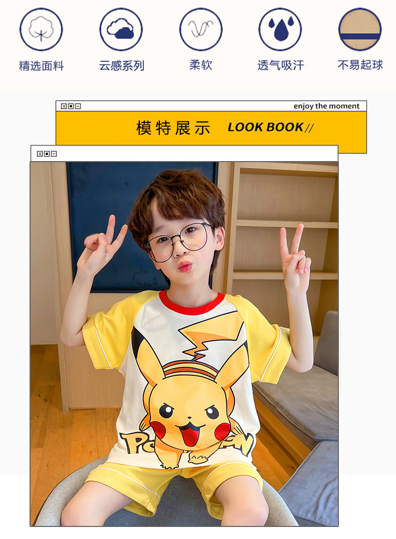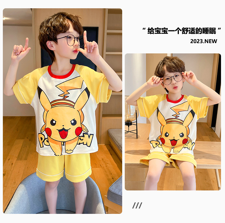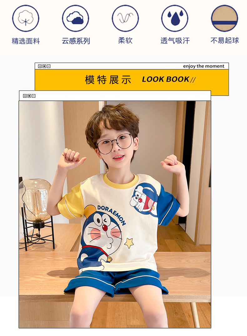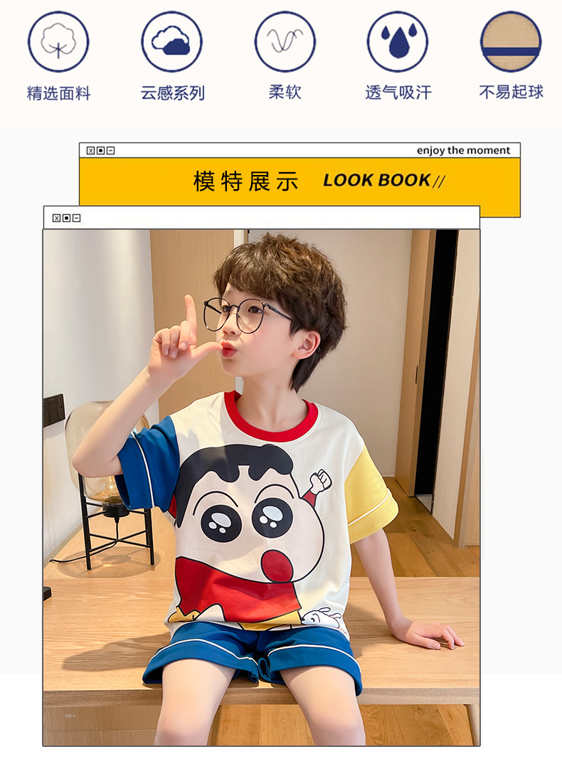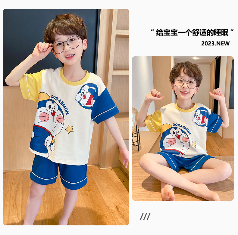 어린이 잠옷 소년 여름 빗질면 반팔 반바지 얇은 만화 소년 아기 홈 세트 여름스토어 가기