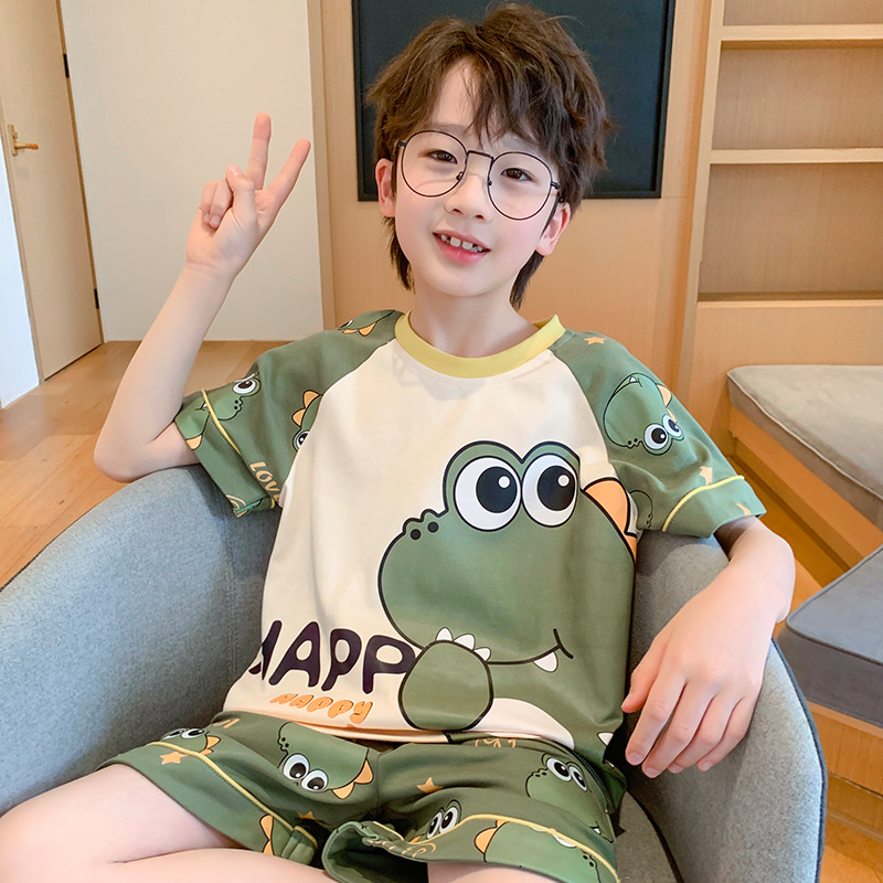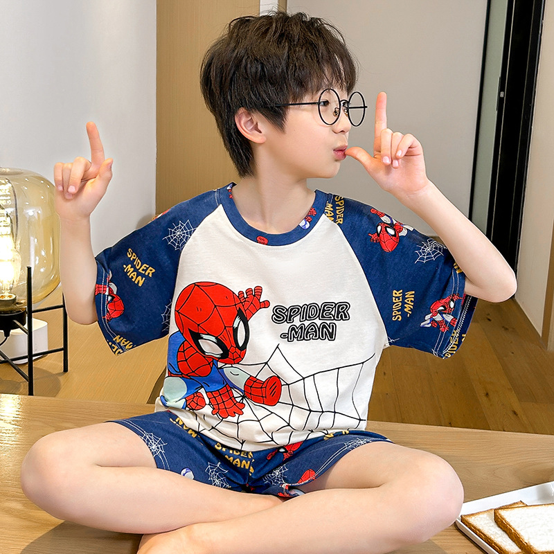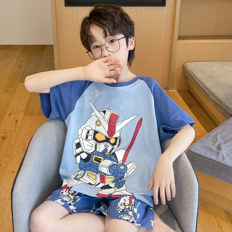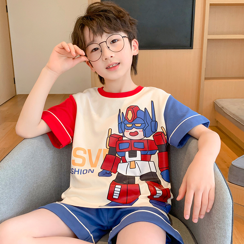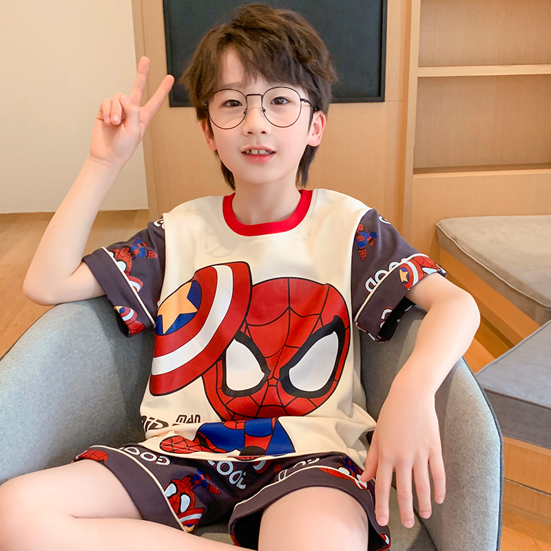 어린이 잠옷 소년 여름 빗질면 반팔 반바지 얇은 만화 소년 아기 홈 세트 여름