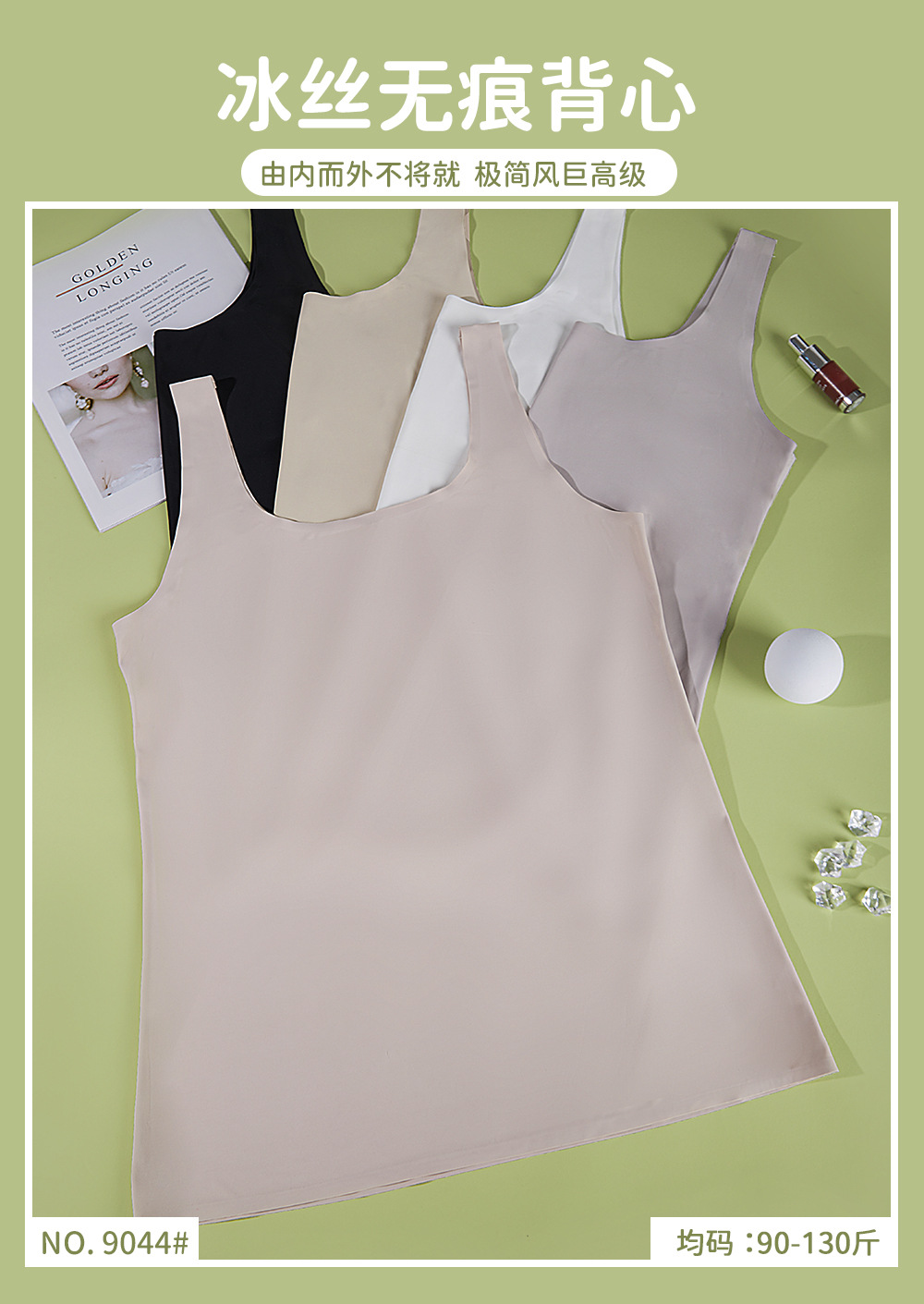 아이스 실크 이음매없는 캐미솔 여성의 봄과 여름 내복 노출 방지 민소매 짧은 슬림 바닥 셔츠 탑 가슴 패드없이