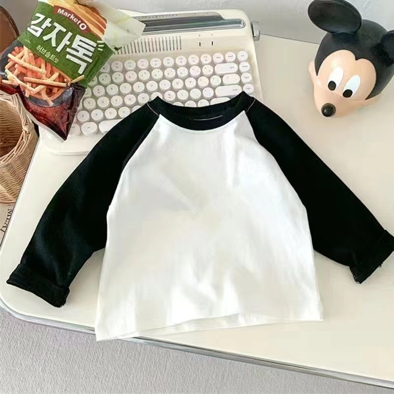 2024 새로운 T 아기 서양식 어린이 대비 색상 봄과 가을 긴팔 티셔츠 소년 소녀 얇은 면 만화 바닥 셔츠스토어 가기