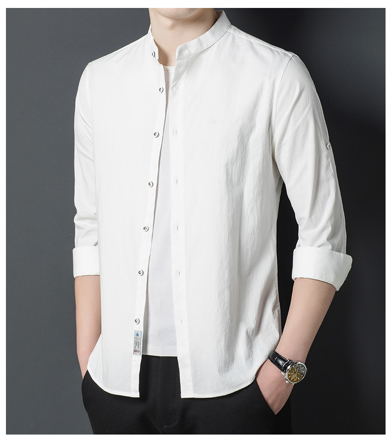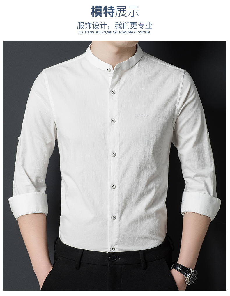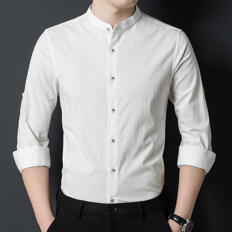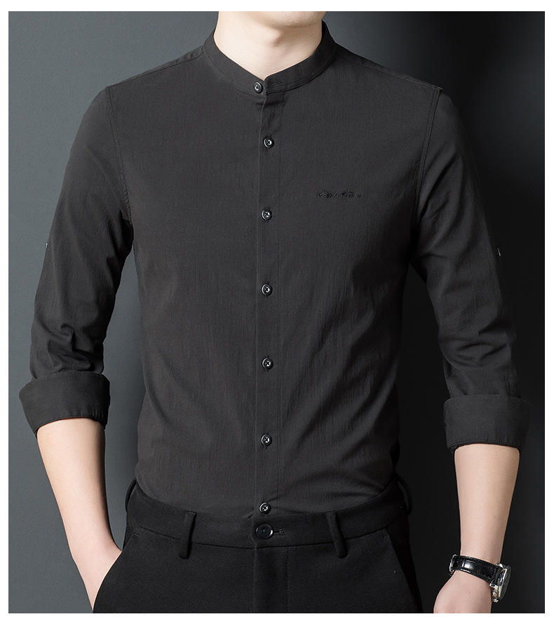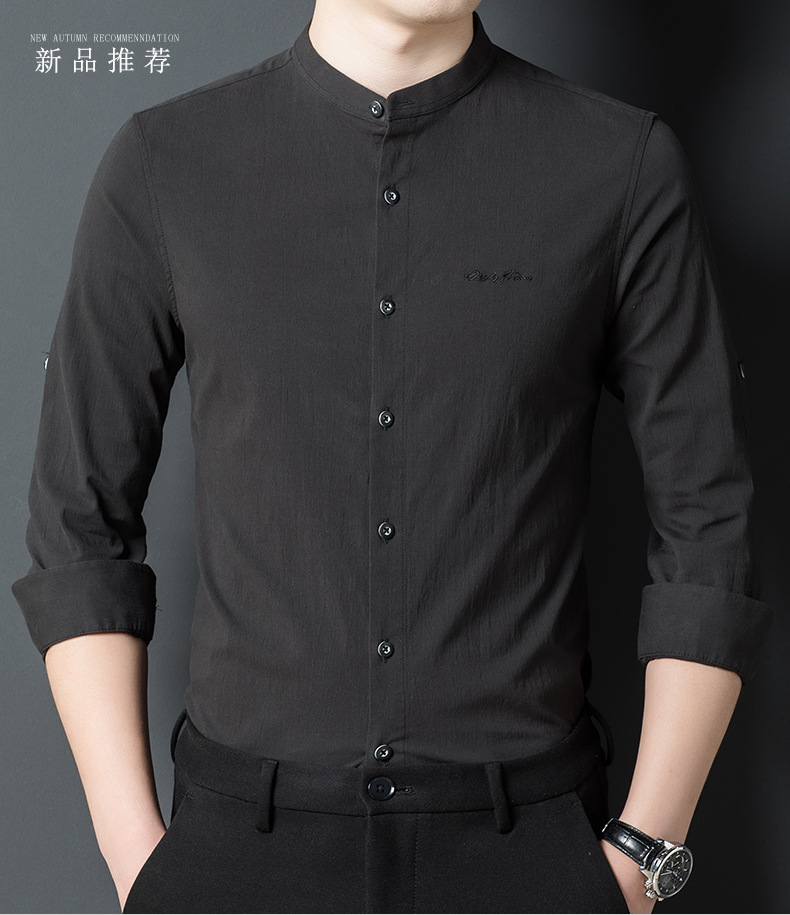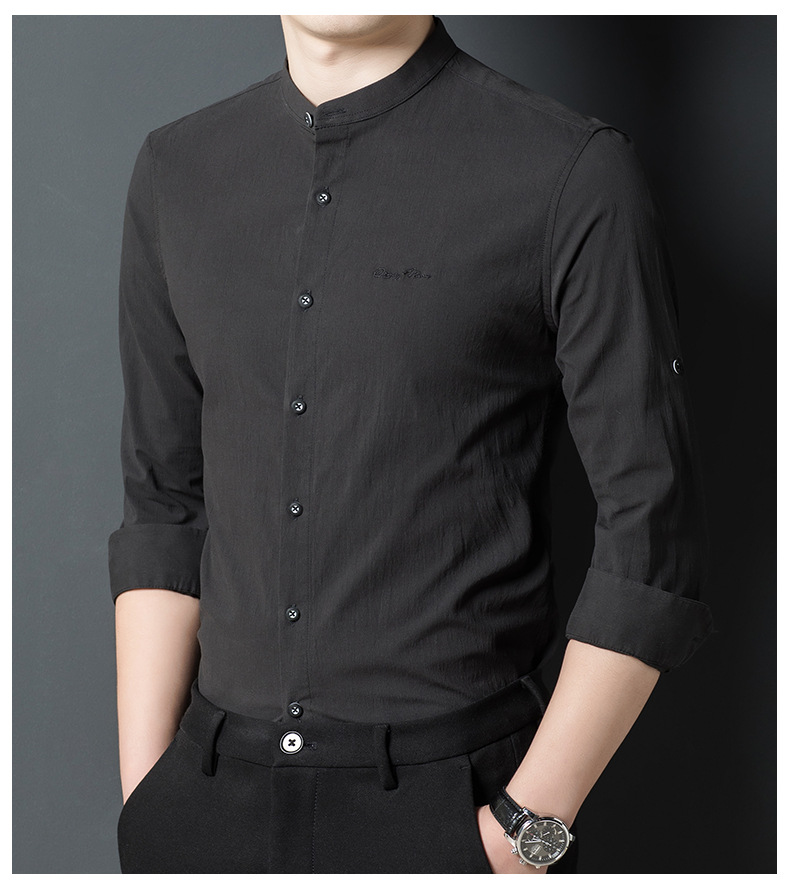스탠드 칼라 셔츠 남성용 긴팔 면화 하이 엔드 라이트 럭셔리 비즈니스 캐주얼 셔츠 풀 비 다림질 중국 문화 단색 세트스토어 가기