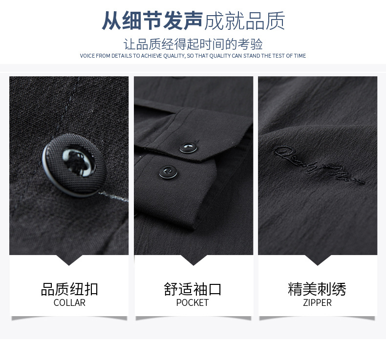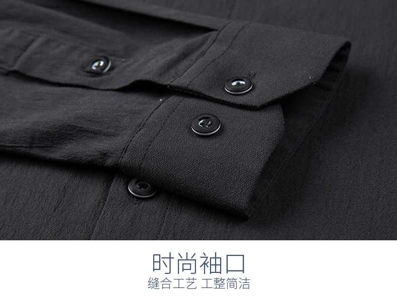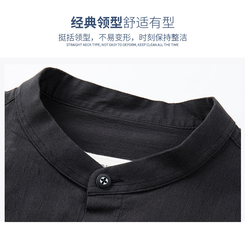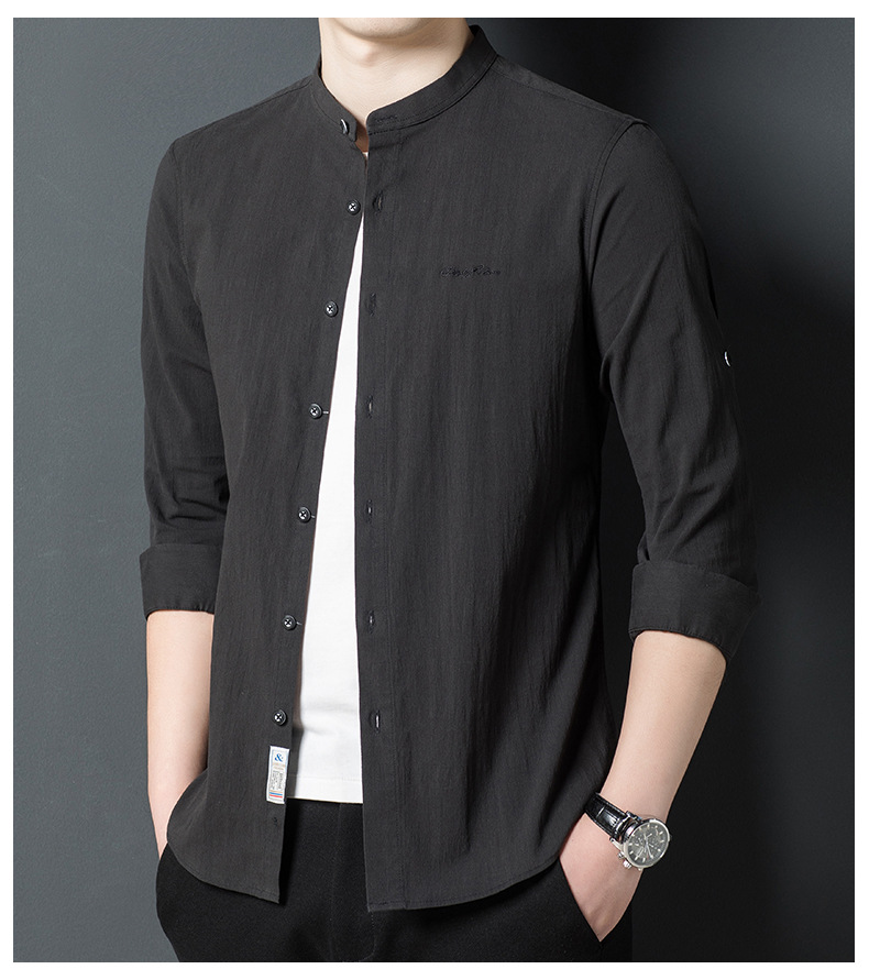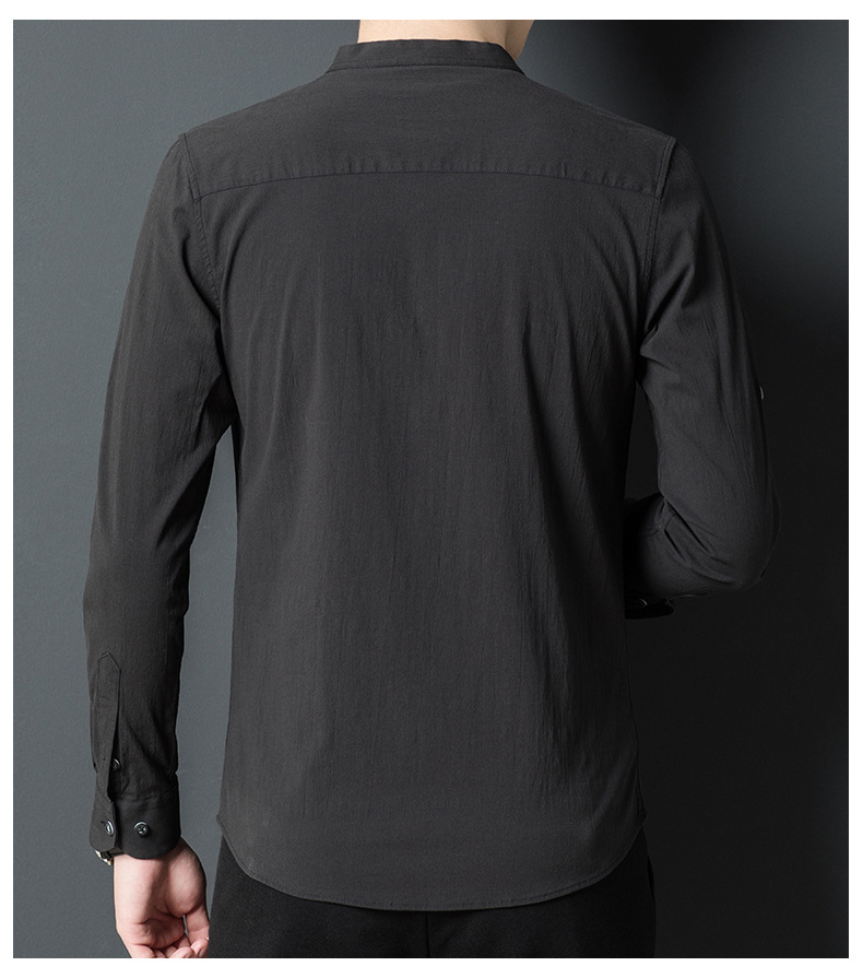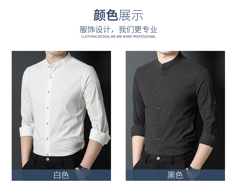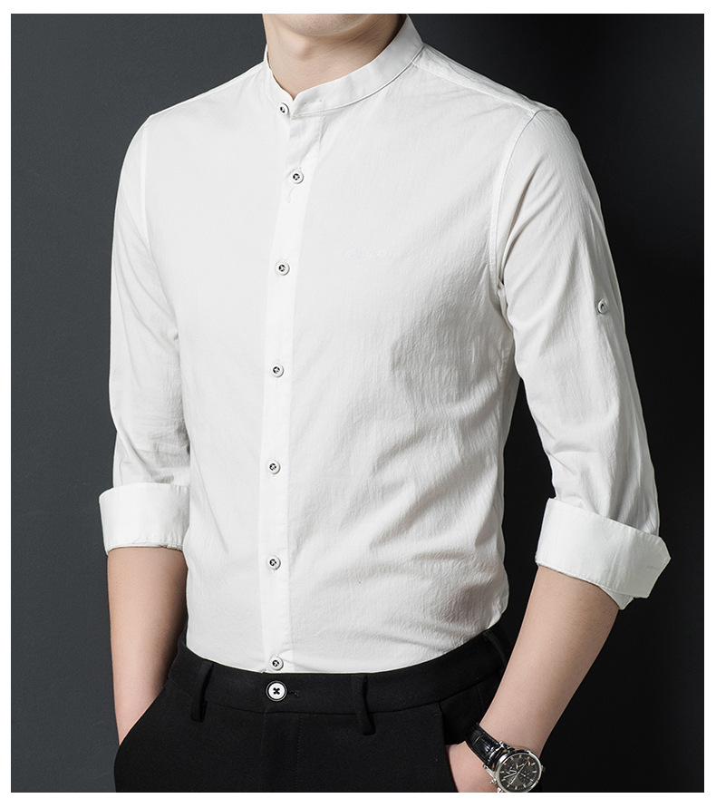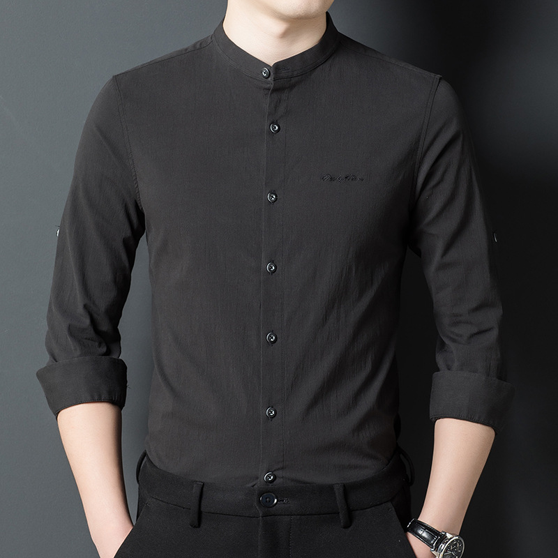 스탠드 칼라 셔츠 남성용 긴팔 면화 하이 엔드 라이트 럭셔리 비즈니스 캐주얼 셔츠 풀 비 다림질 중국 문화 단색 세트스토어 가기