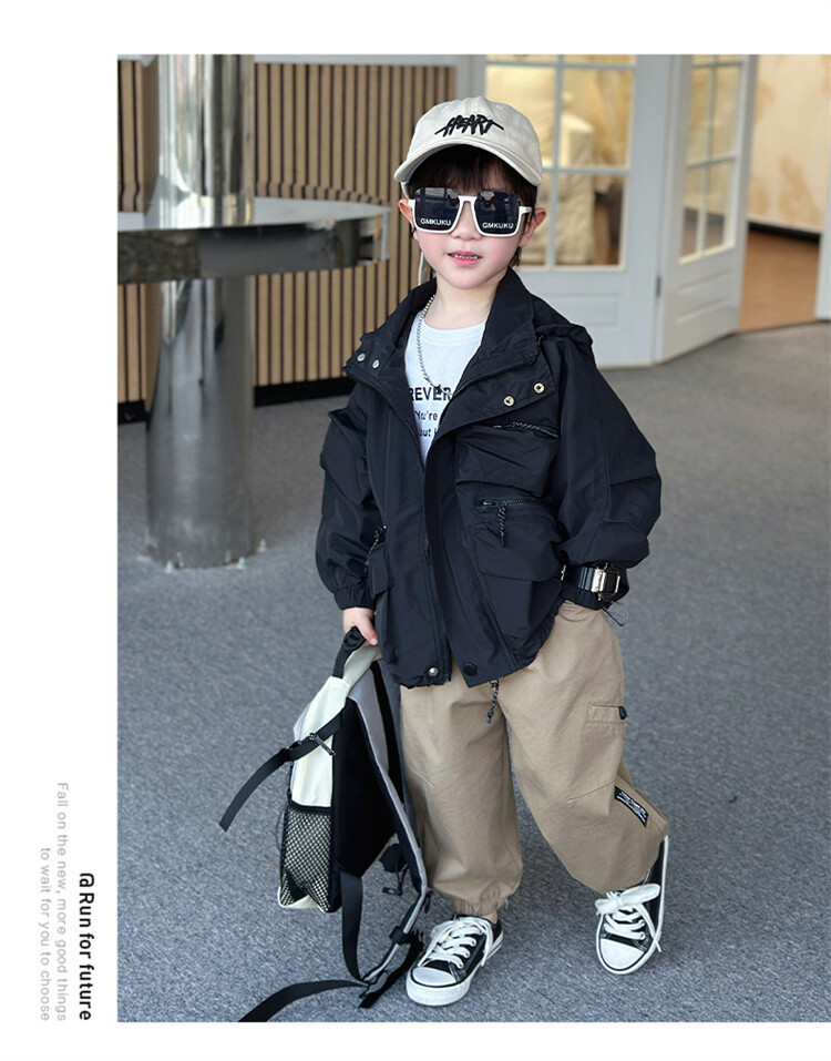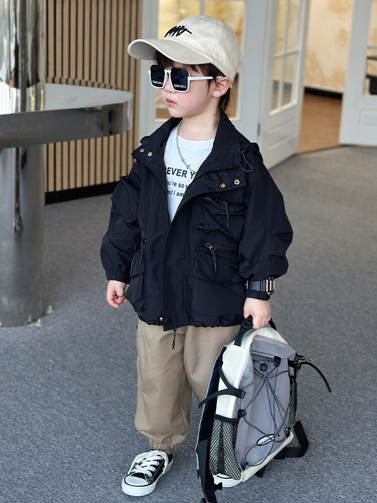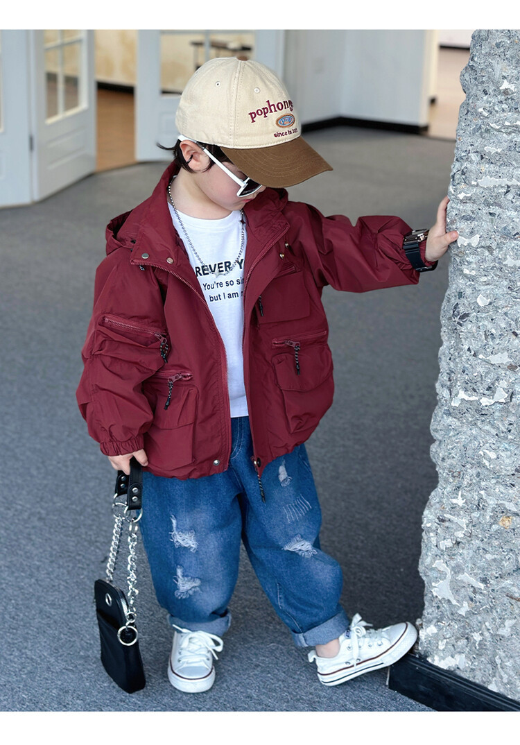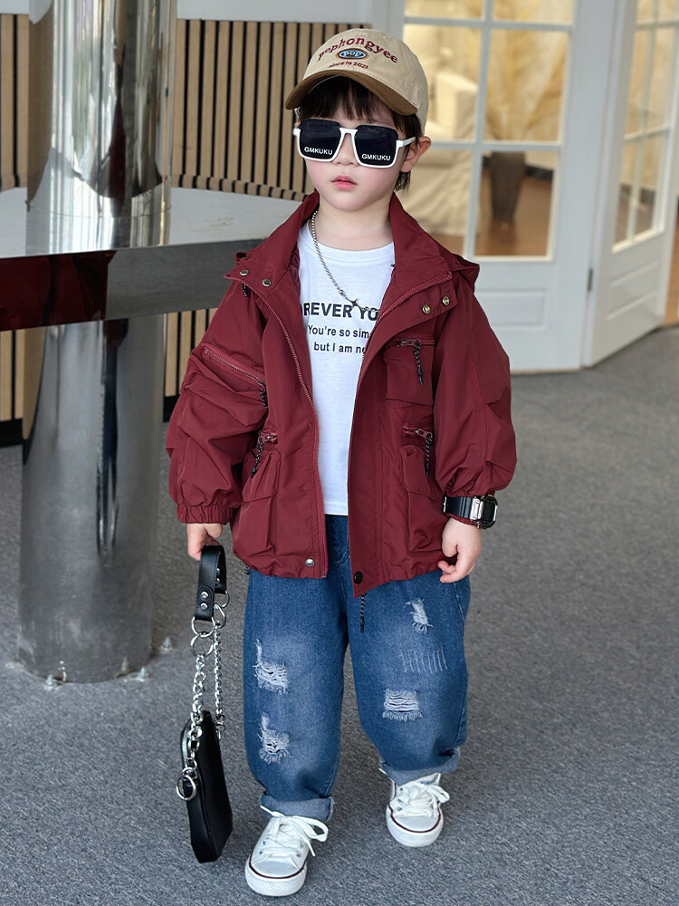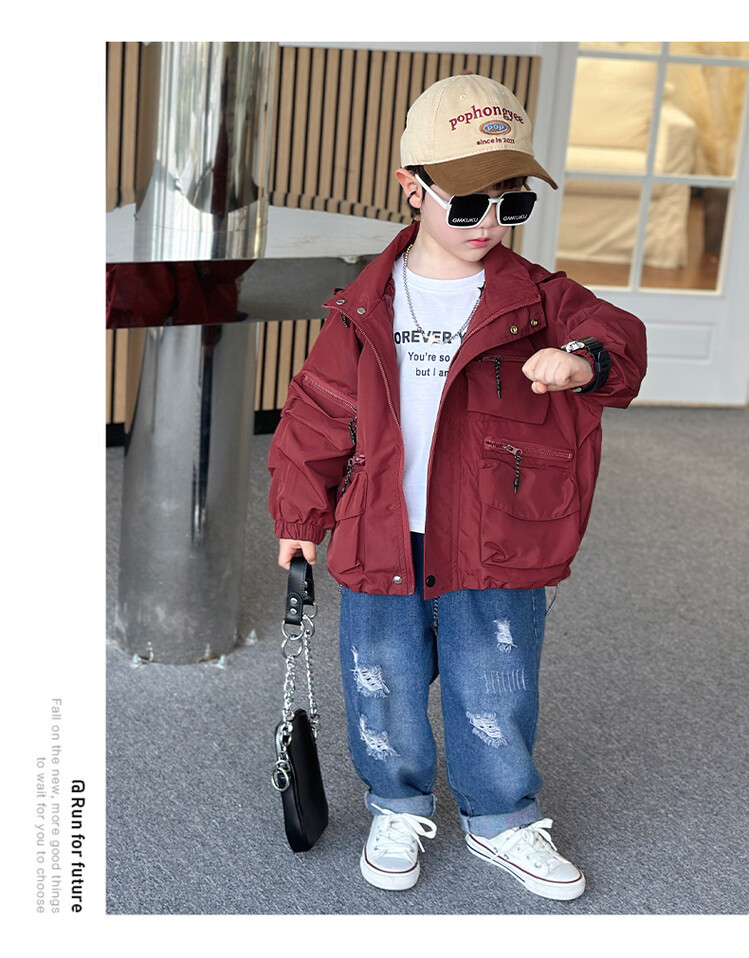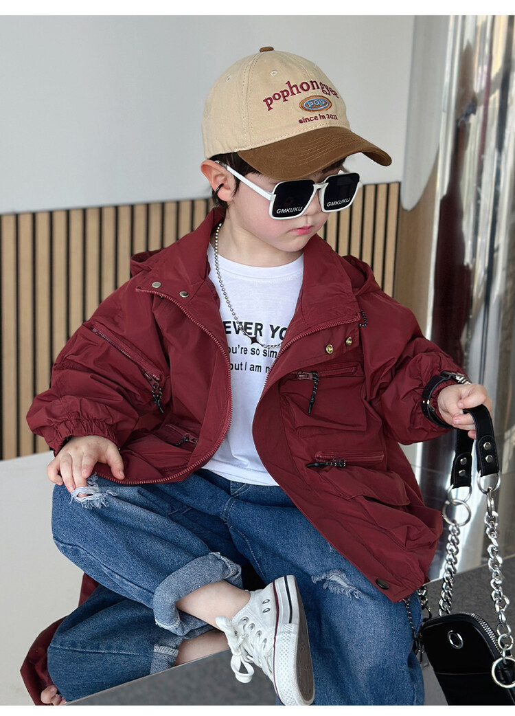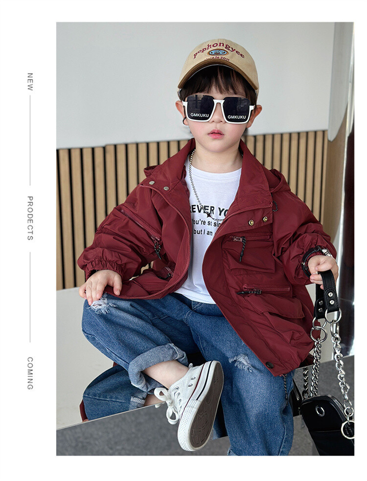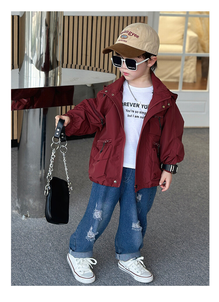 소년 2 색 트렌치 코트 2024 봄과 가을 새로운 어린이 작업복 자켓 아동복 대외 무역 도매스토어 가기