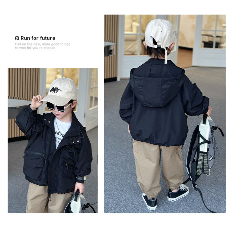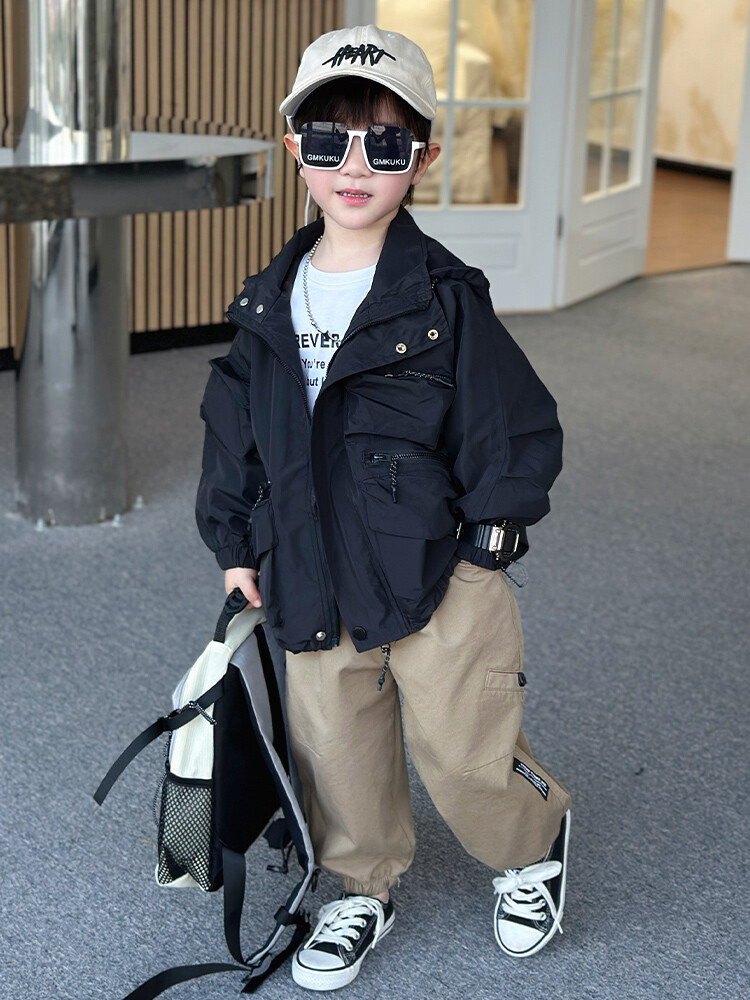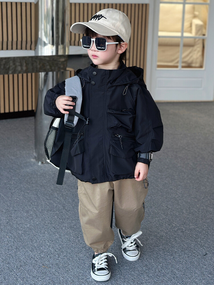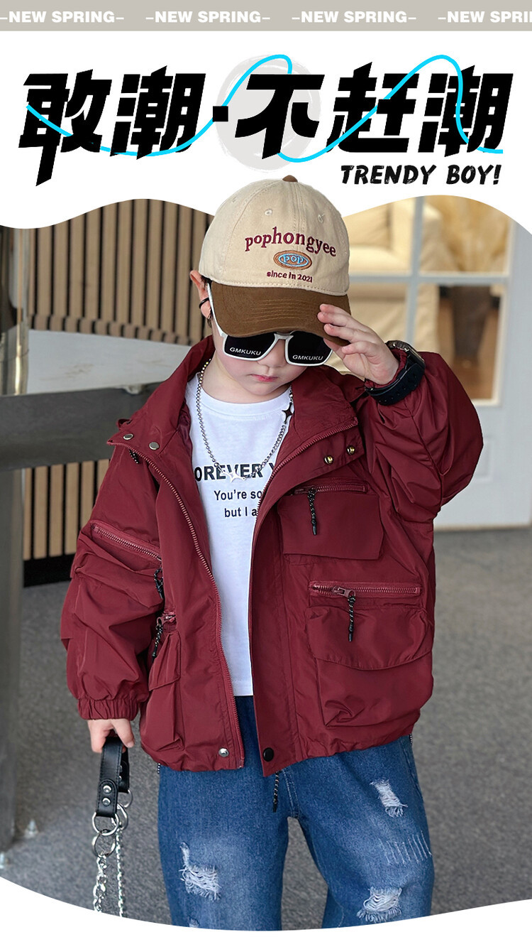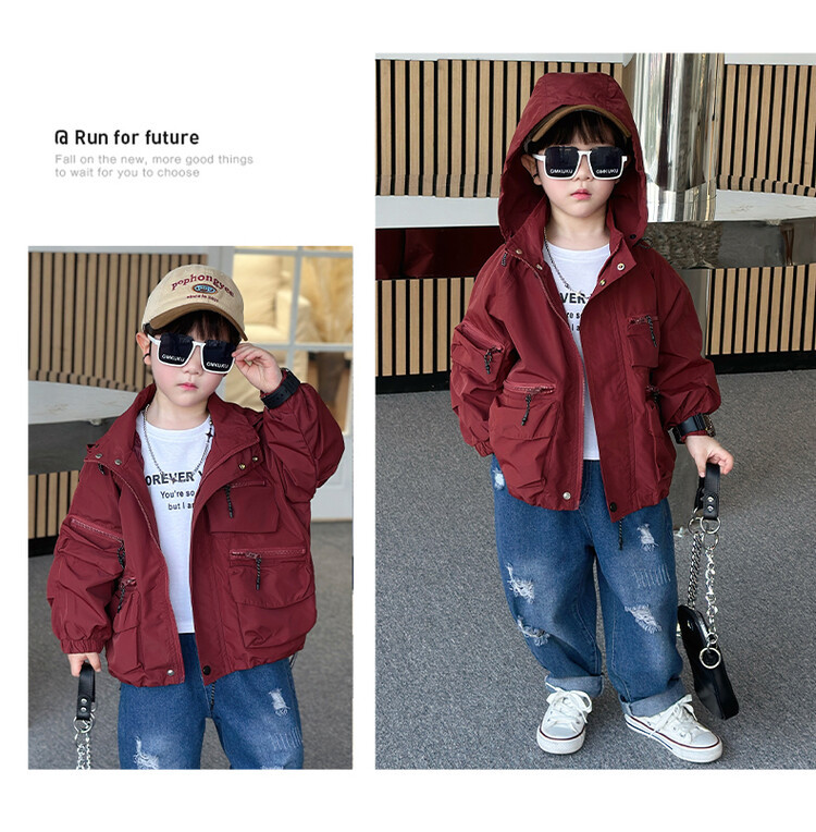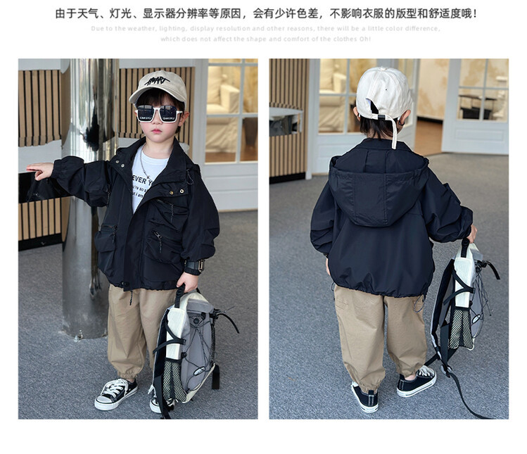 소년 2 색 트렌치 코트 2024 봄과 가을 새로운 어린이 작업복 자켓 아동복 대외 무역 도매