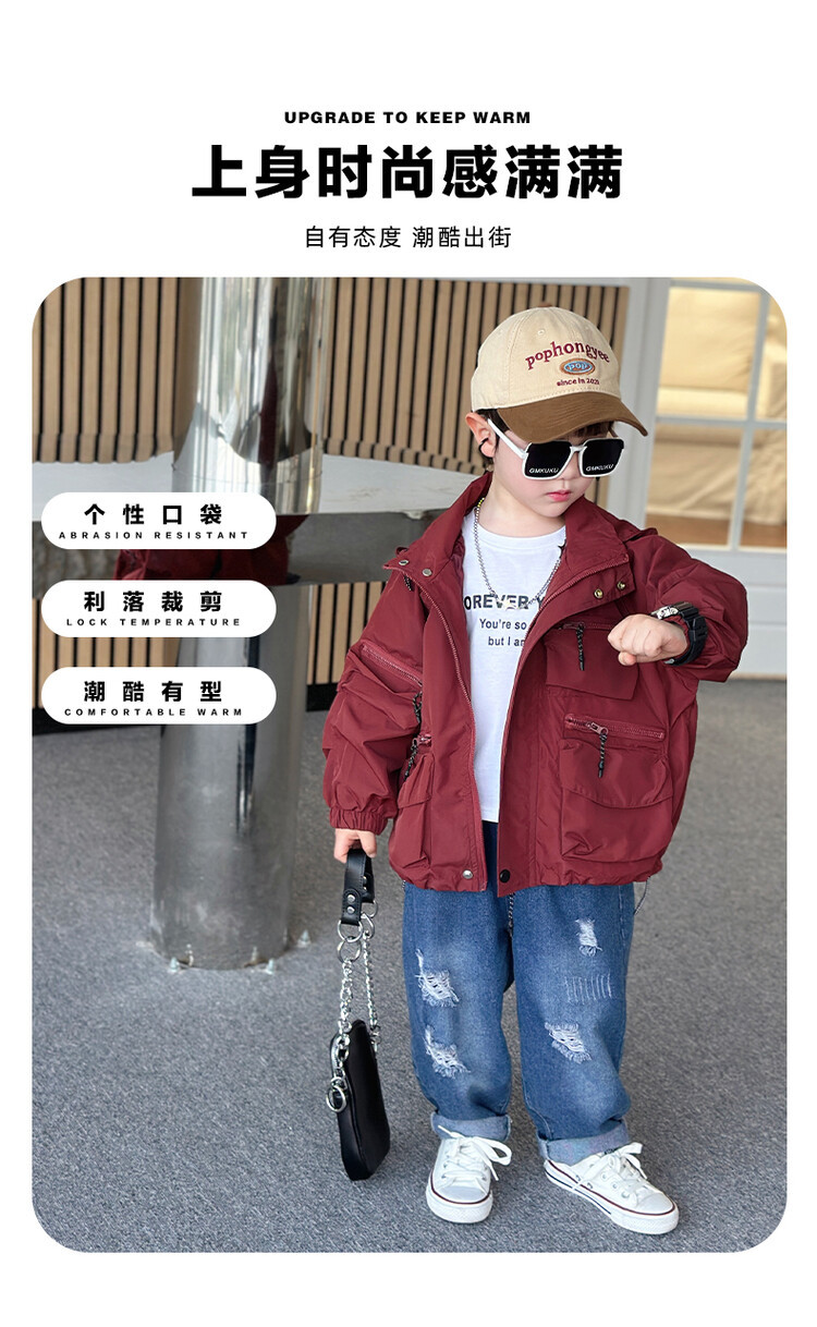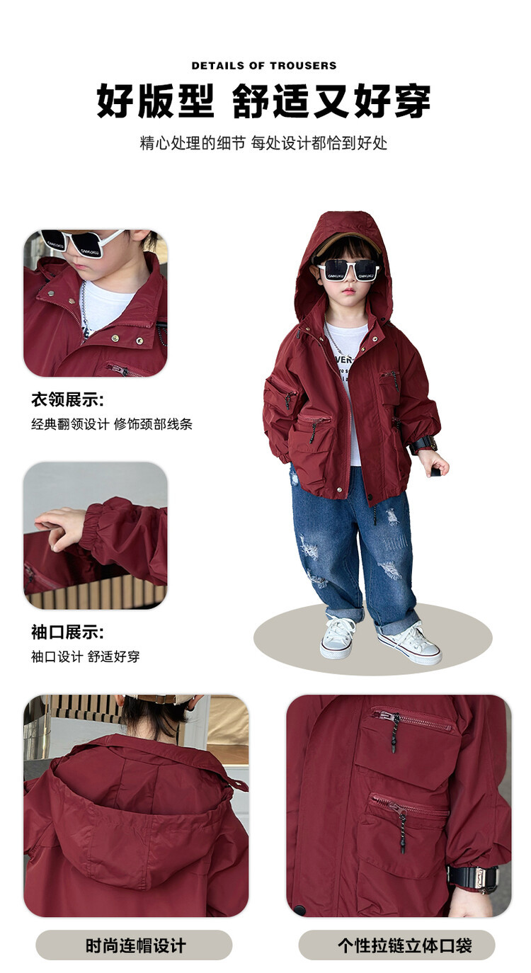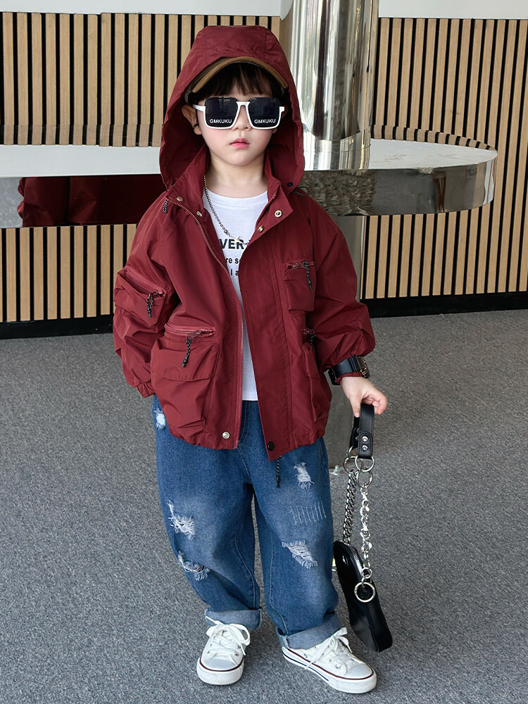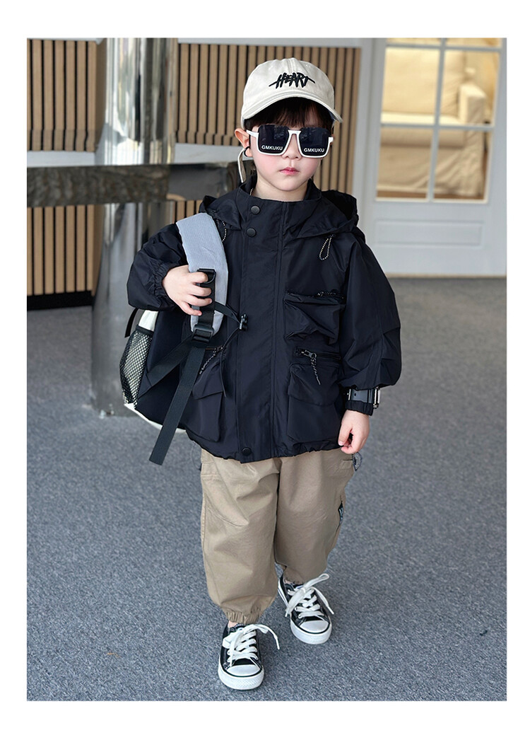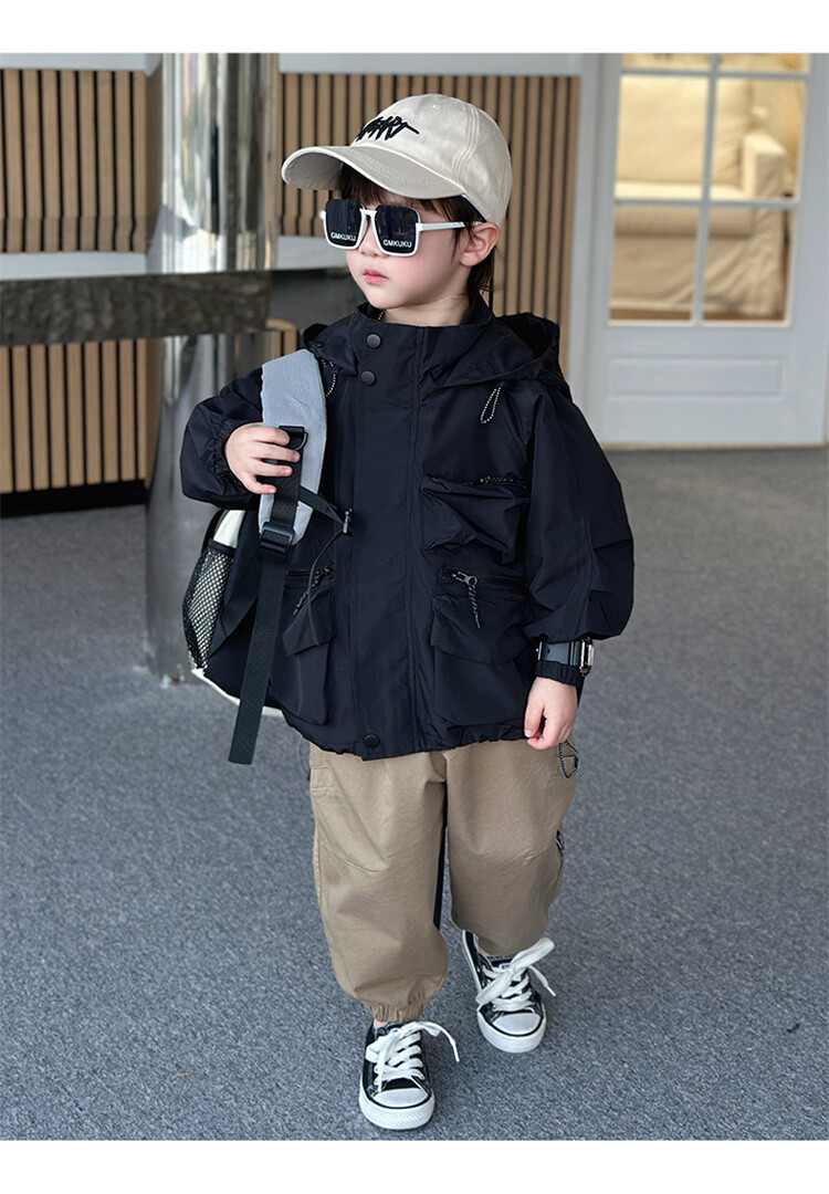 소년 2 색 트렌치 코트 2024 봄과 가을 새로운 어린이 작업복 자켓 아동복 대외 무역 도매