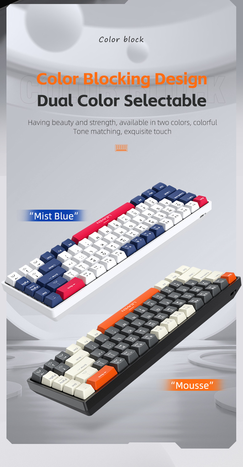 • H68 안개 파란색과 파란색 축 업그레이드 버전 (BT5.0 + 무선 2.4g + 유선 유형-c 세 모델)