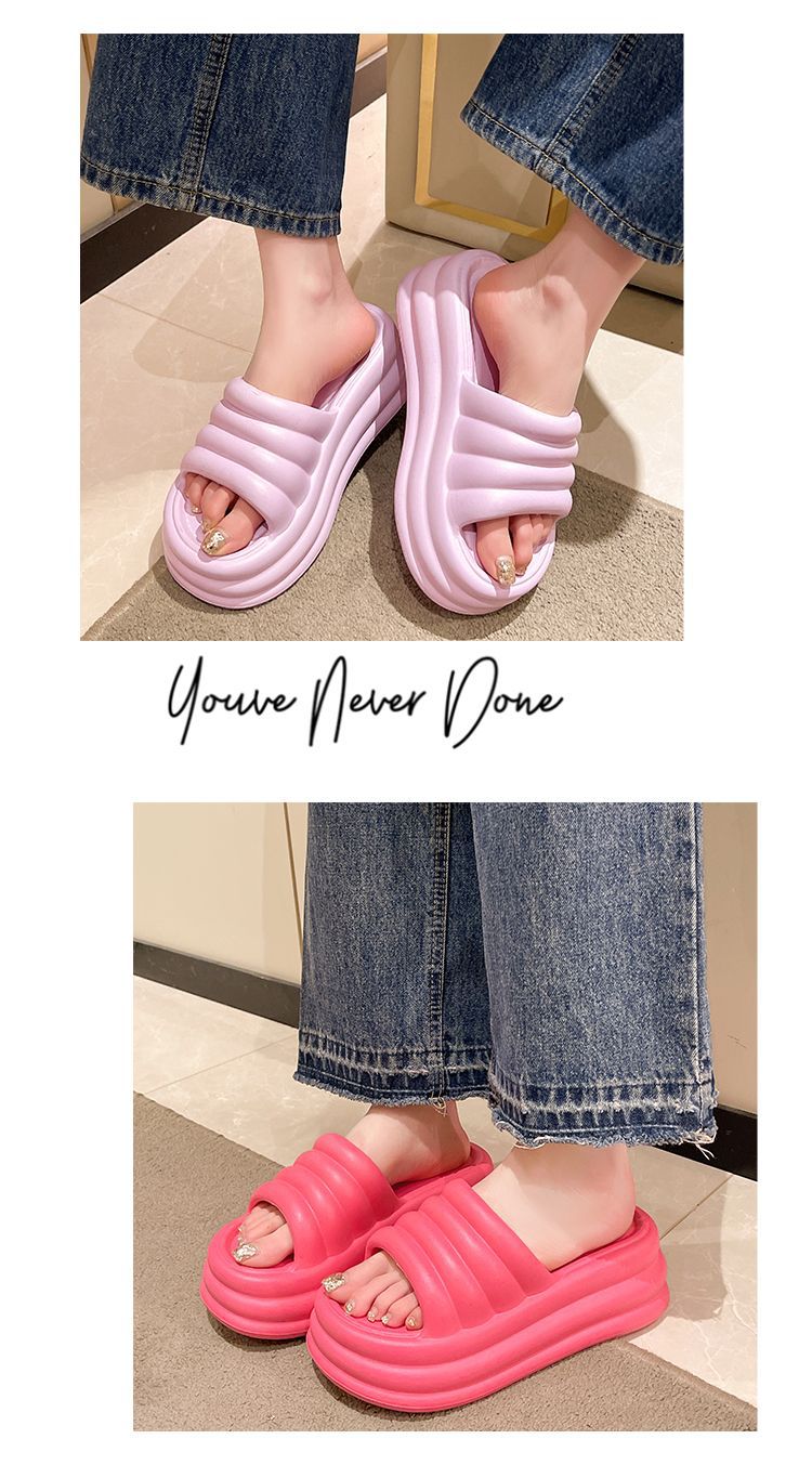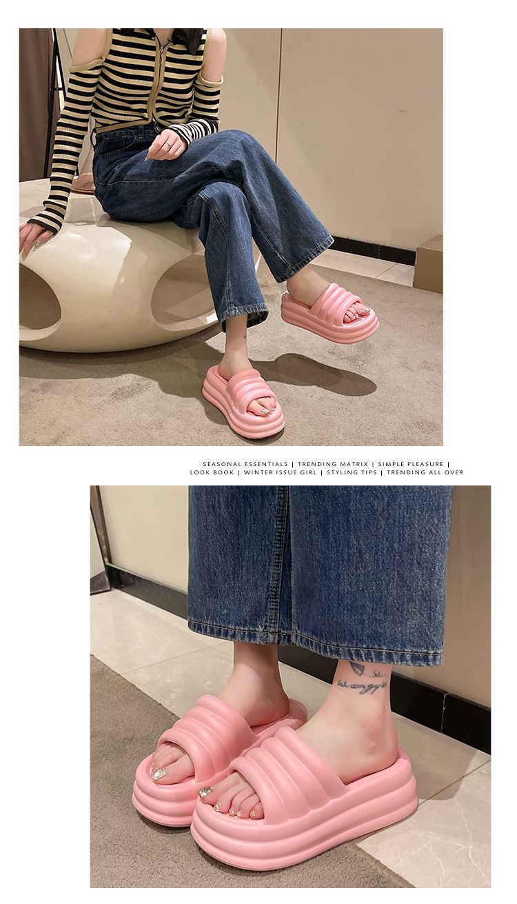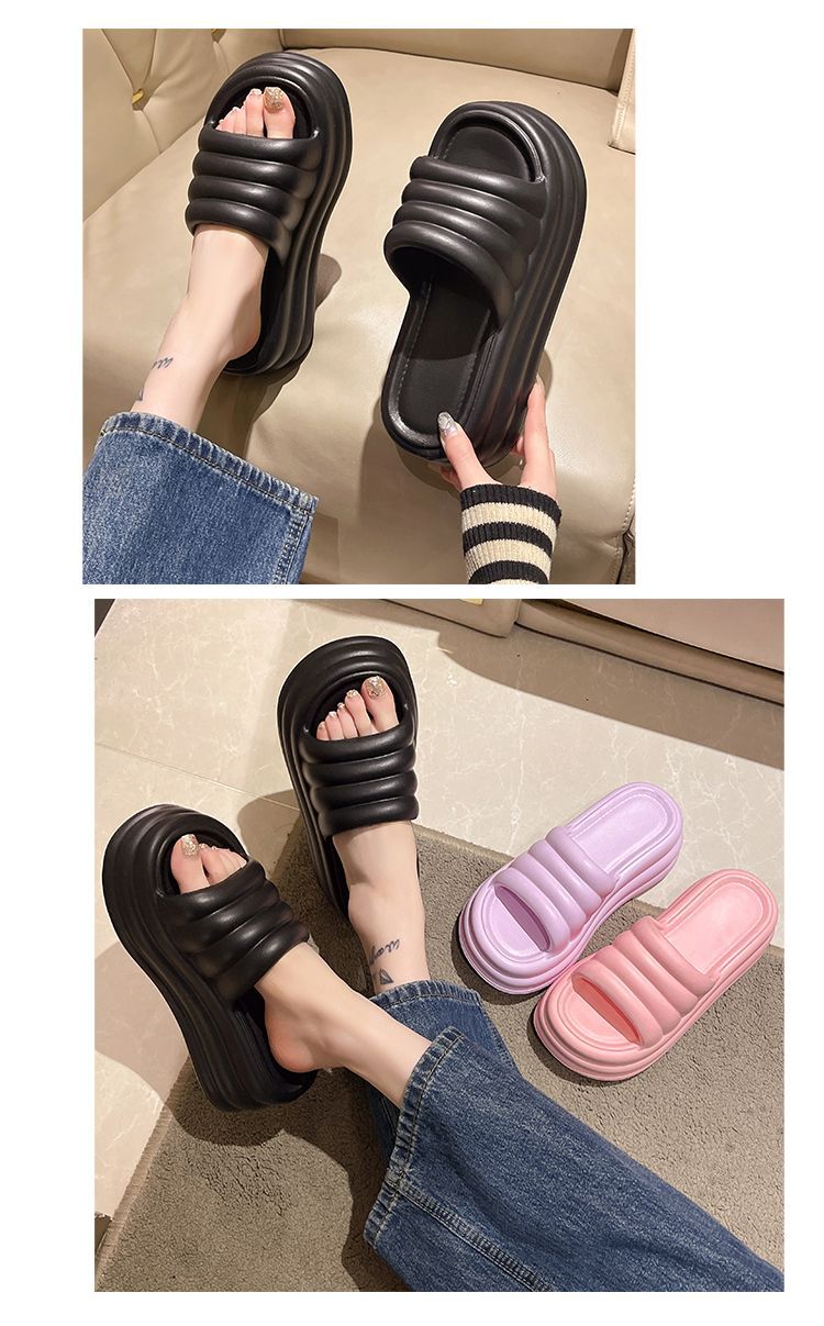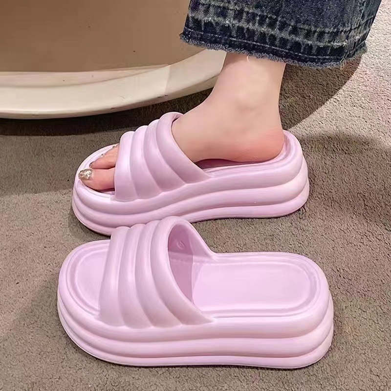 2024 여름 여성용 두꺼운 밑창 슬리퍼 EVA 미끄럼 방지 부드러운 내부 및 외부 샌들 플랫 바닥 경량