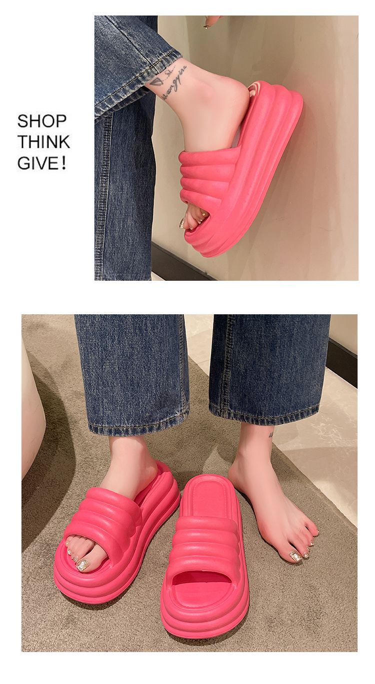 2024 여름 여성용 두꺼운 밑창 슬리퍼 EVA 미끄럼 방지 부드러운 내부 및 외부 샌들 플랫 바닥 경량스토어 가기
