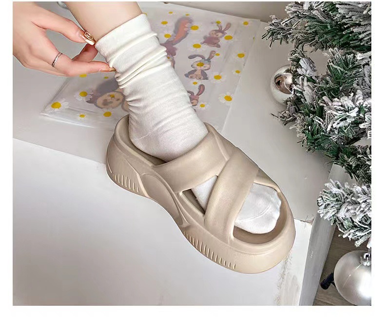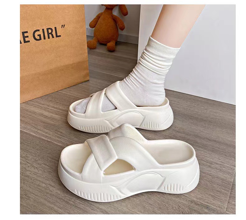 여름 야외 착용을위한 여성용 두꺼운 밑창 슬리퍼 2024 새로운 패션 야외 다목적 여성 홈 비치 미끄럼 샌들