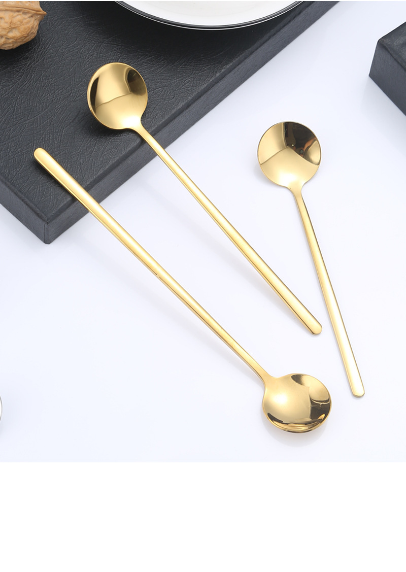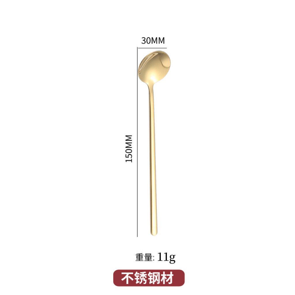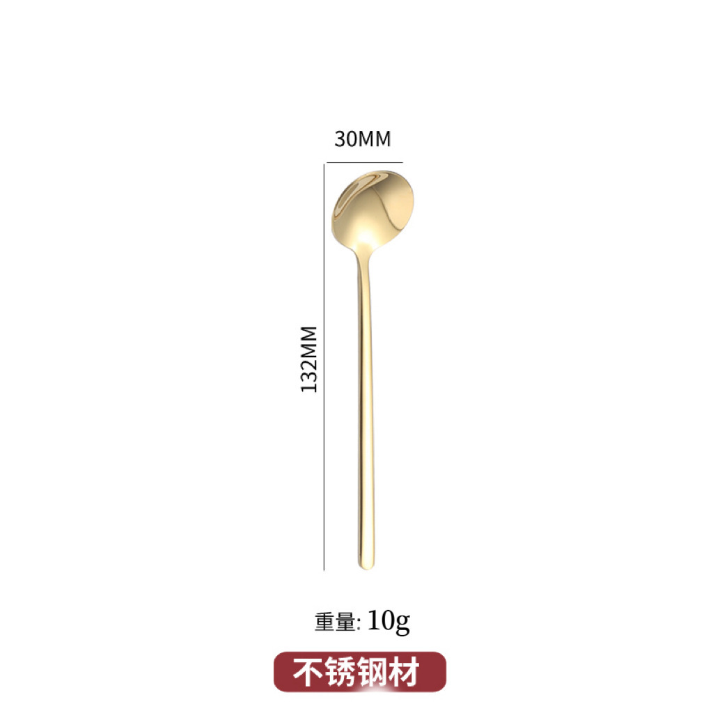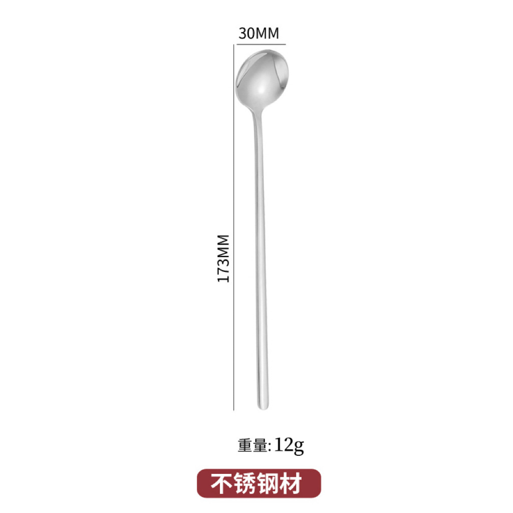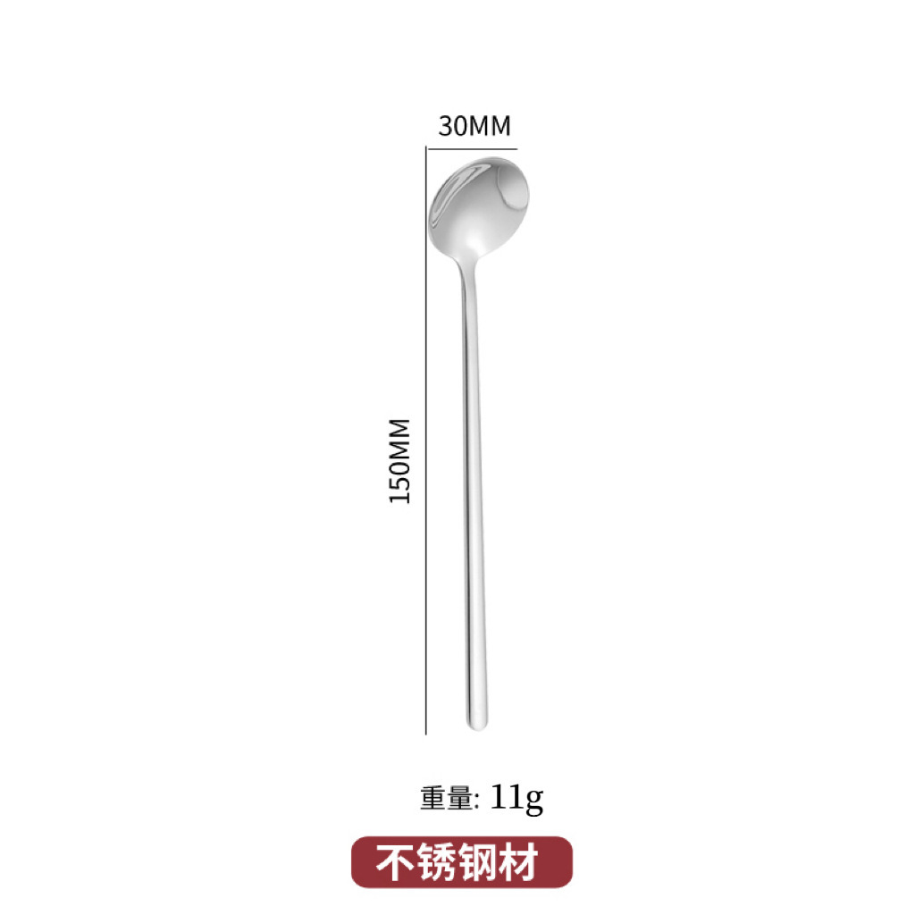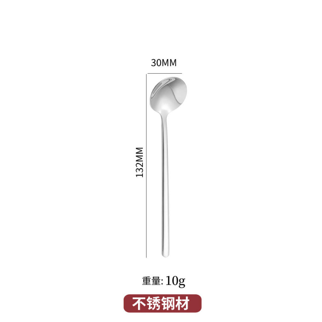 스테인레스 스틸 라운드 스푼 가정용 식당 긴 핸들 스푼 스푼 커피 혼합 숟가락 디저트 작은 둥근 숟가락