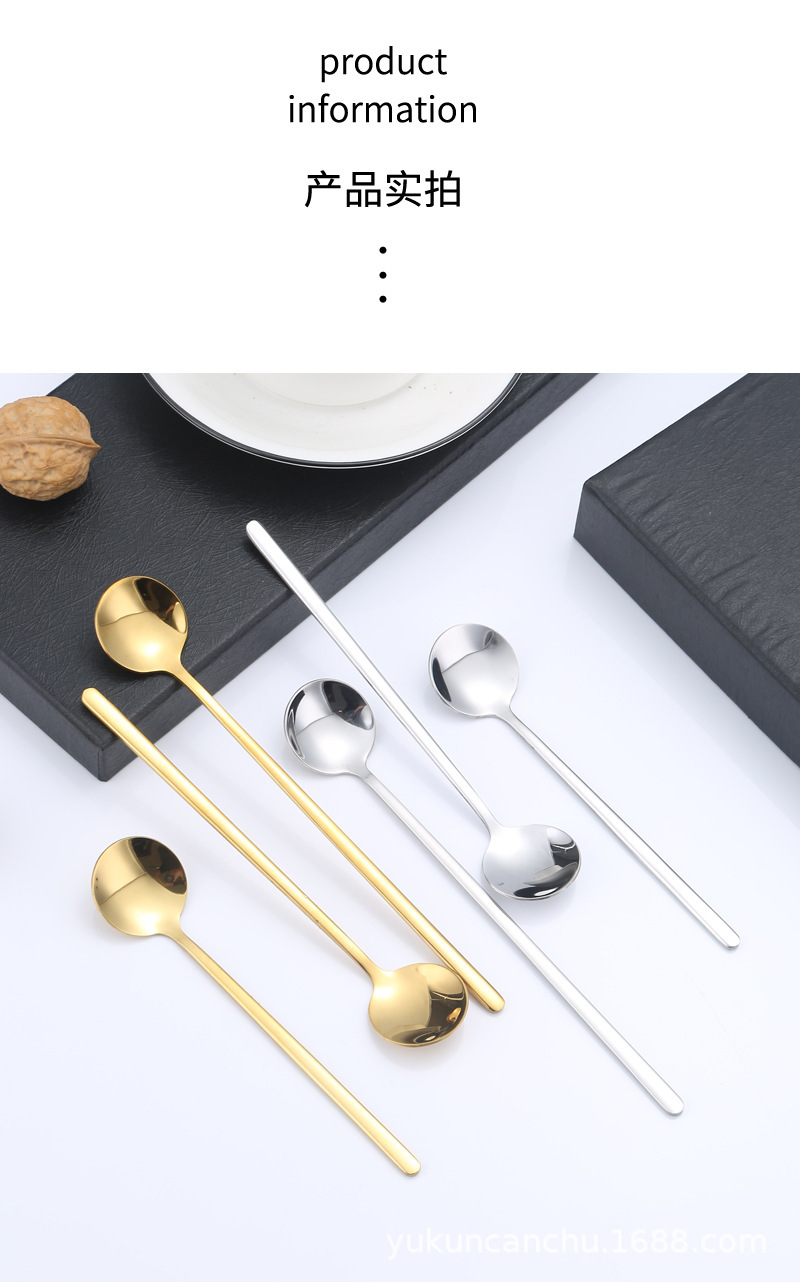 스테인레스 스틸 라운드 스푼 가정용 식당 긴 핸들 스푼 스푼 커피 혼합 숟가락 디저트 작은 둥근 숟가락스토어 가기
