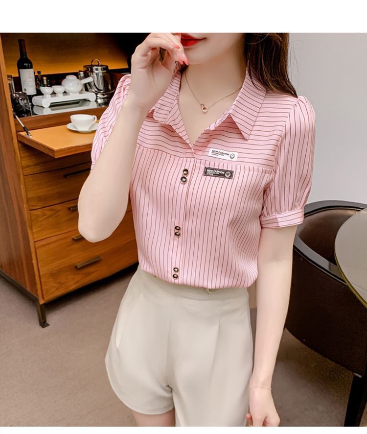 여름 새로운 디자인 감각 틈새 비즈니스 라이트 럭셔리 OL 셔츠 2024 여성을위한 스트라이프 풀오버 짧은 소매 비즈니스 착용 셔츠