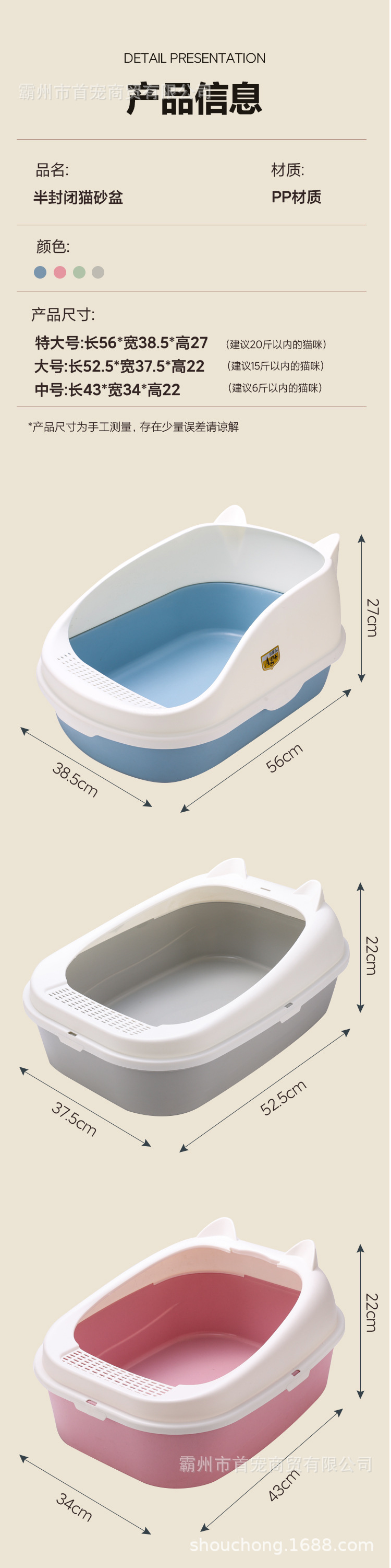 고양이 쓰레기 상자 여분의 큰 스플래시 방지 높은 울타리 반 폐쇄 열린 고양이 화장실 고양이 쓰레기 상자 애완 동물 용품 도매