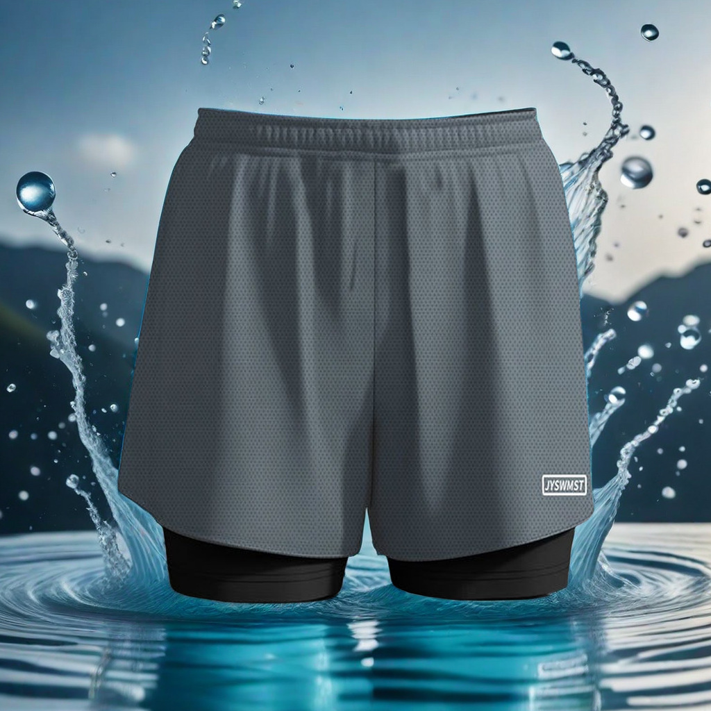 수영복 남자 수영 남자 세트 소년 최고 안티-당황 더블 레이어 수영 트렁크 전신 남자 전문 수영 장비