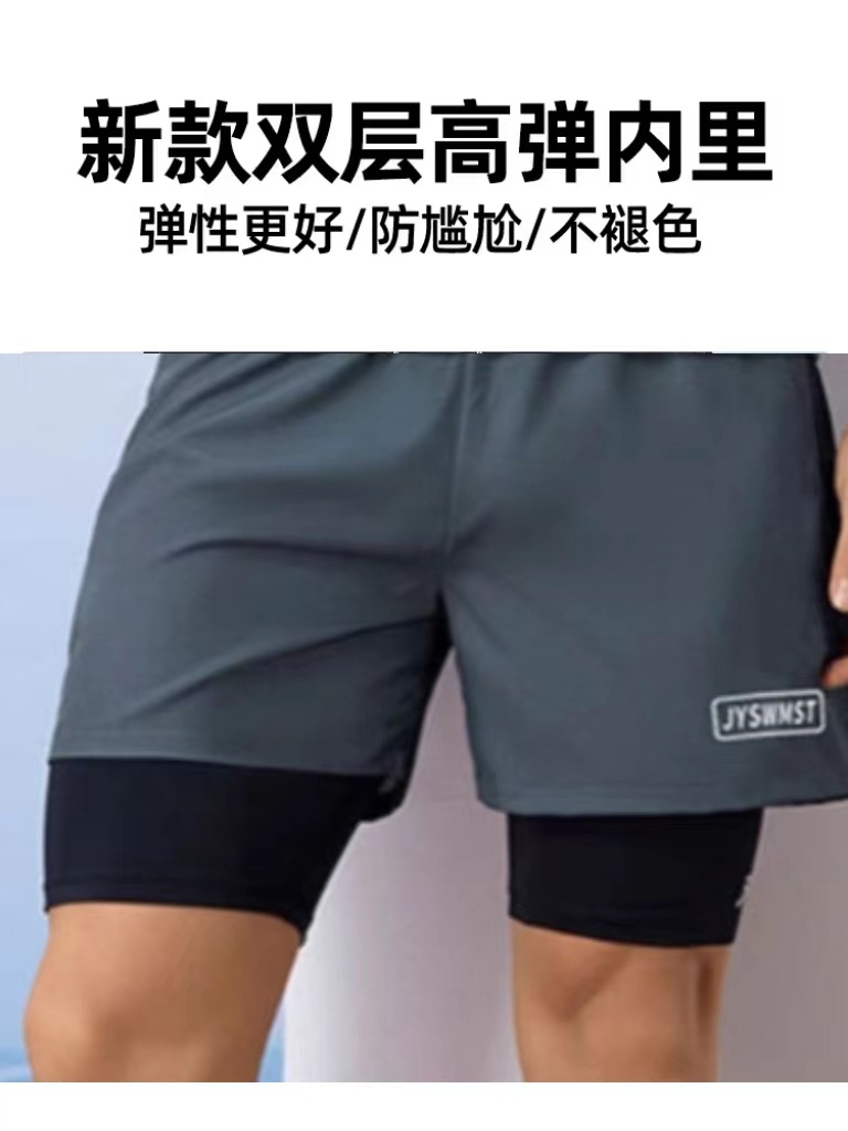 수영복 남자 수영 남자 세트 소년 최고 안티-당황 더블 레이어 수영 트렁크 전신 남자 전문 수영 장비스토어 가기