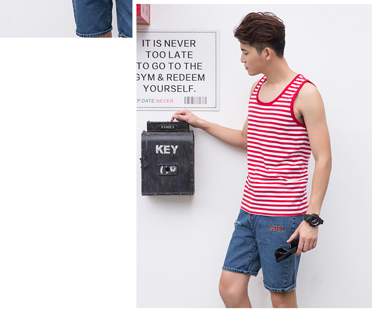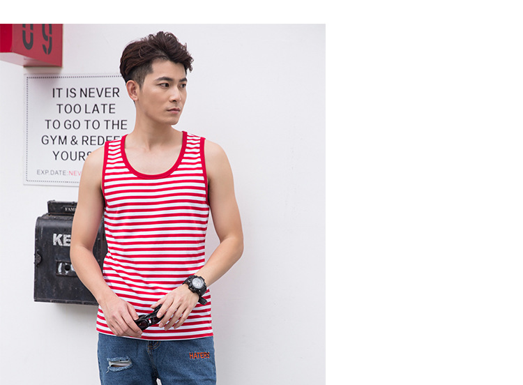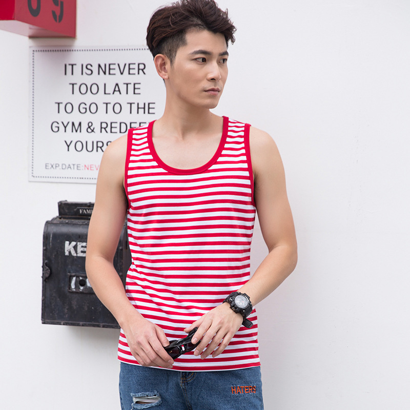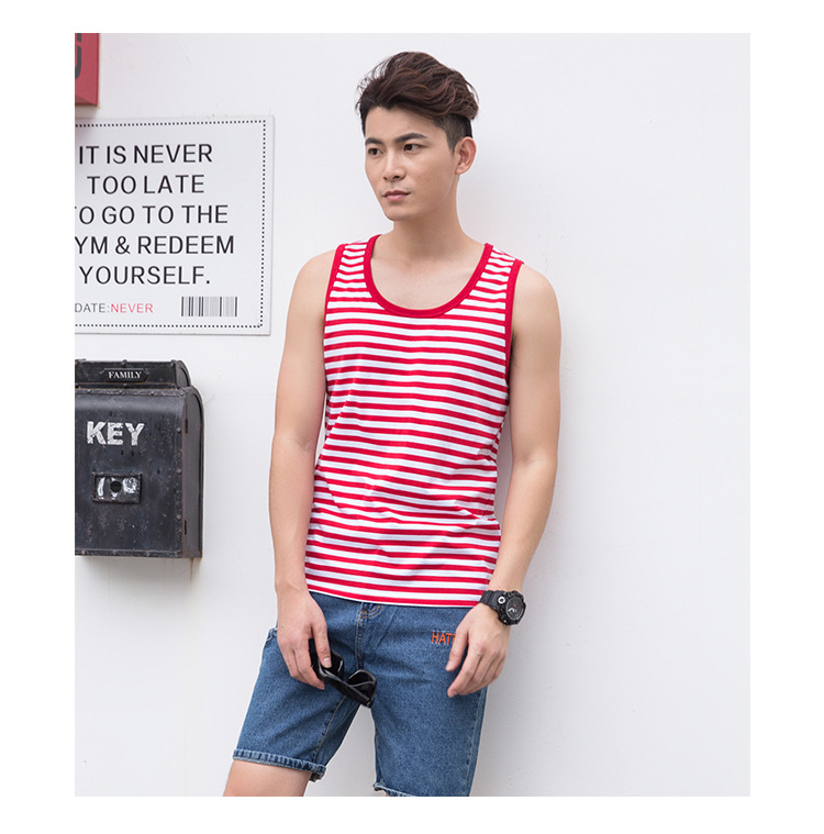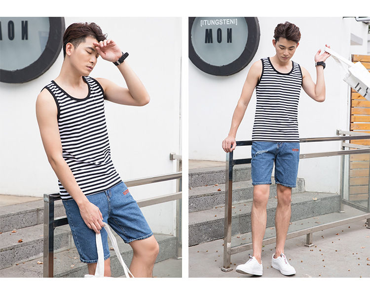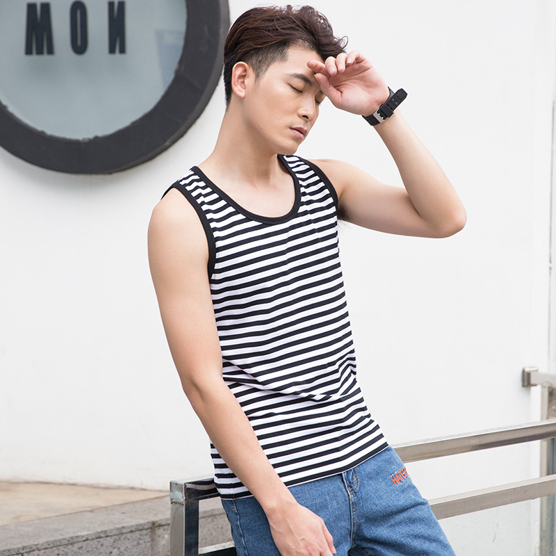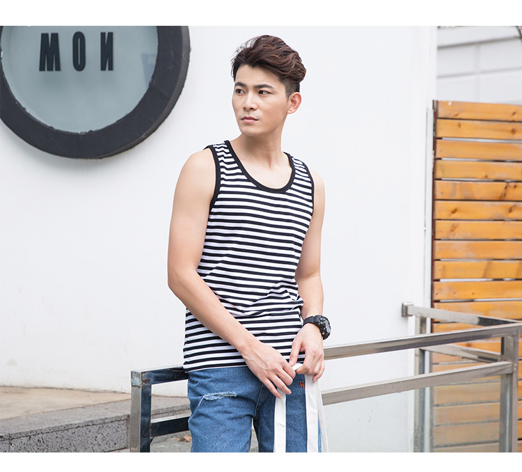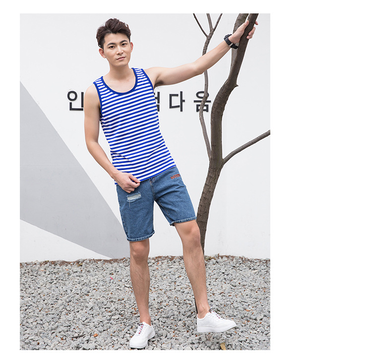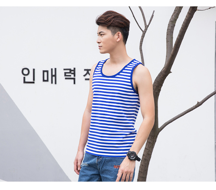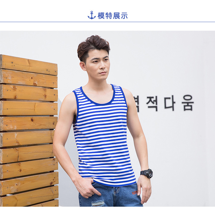 바다 정신 셔츠 남성 양복 조끼 크로스 바디 조끼 민소매 티셔츠 순수한면 땀 흡수성 파란색과 흰색 줄무늬 여름 피트니스 바닥 셔츠스토어 가기