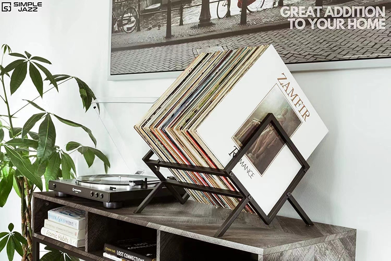 데스크탑 창조적 인 책장 비닐 기록 저장 랙 CD 레코드 디스플레이 랙 잡지 저장 랙 금속 미세 철 예술