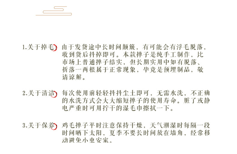 • 대나무 긴 손잡이 깃털 살포기 (전체 길이 55cm)