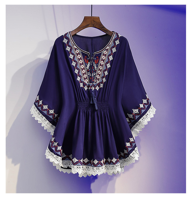 여성 셔츠 2024 여름 느슨한 슬리밍 허리-타이트 탑 여성의 유행 연령 감소 빈티지 프린트 쉬폰 셔츠 여성 도매스토어 가기