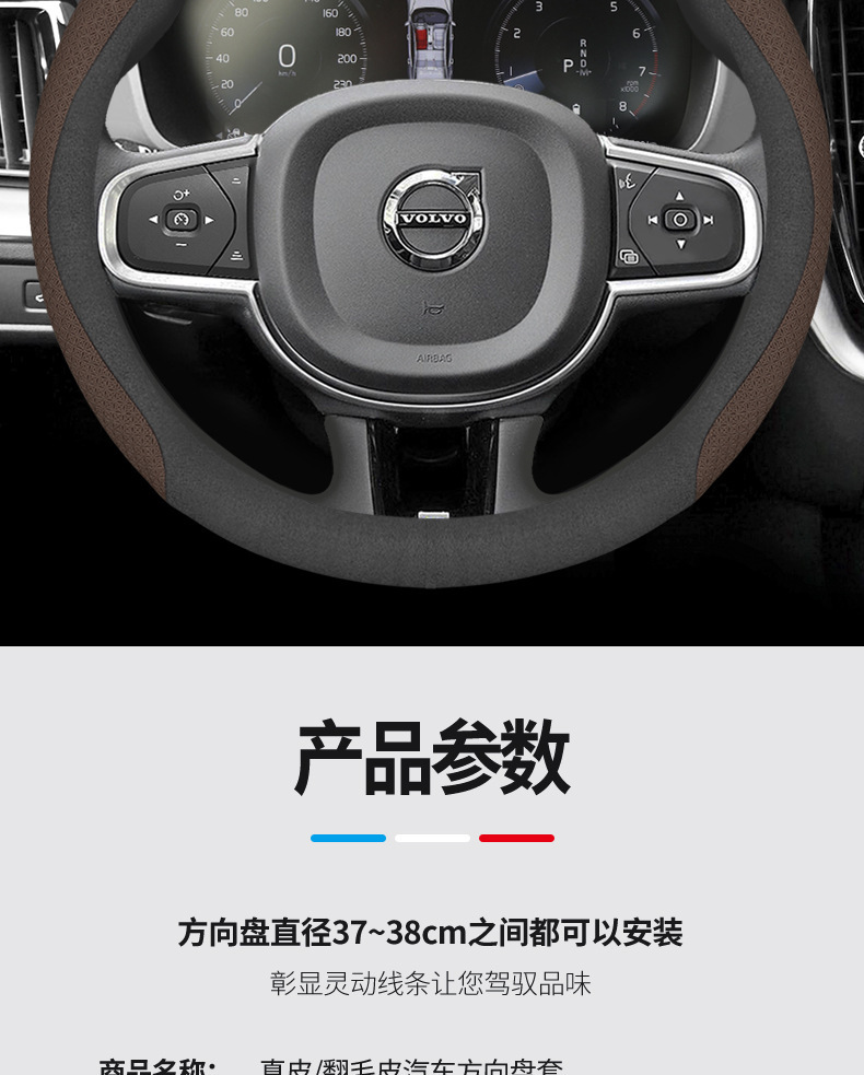 볼보 가죽 스티어링 휠 커버 XC40 XC60 XC90 V60 V90 V90 V40S60 S90 핸들 커버