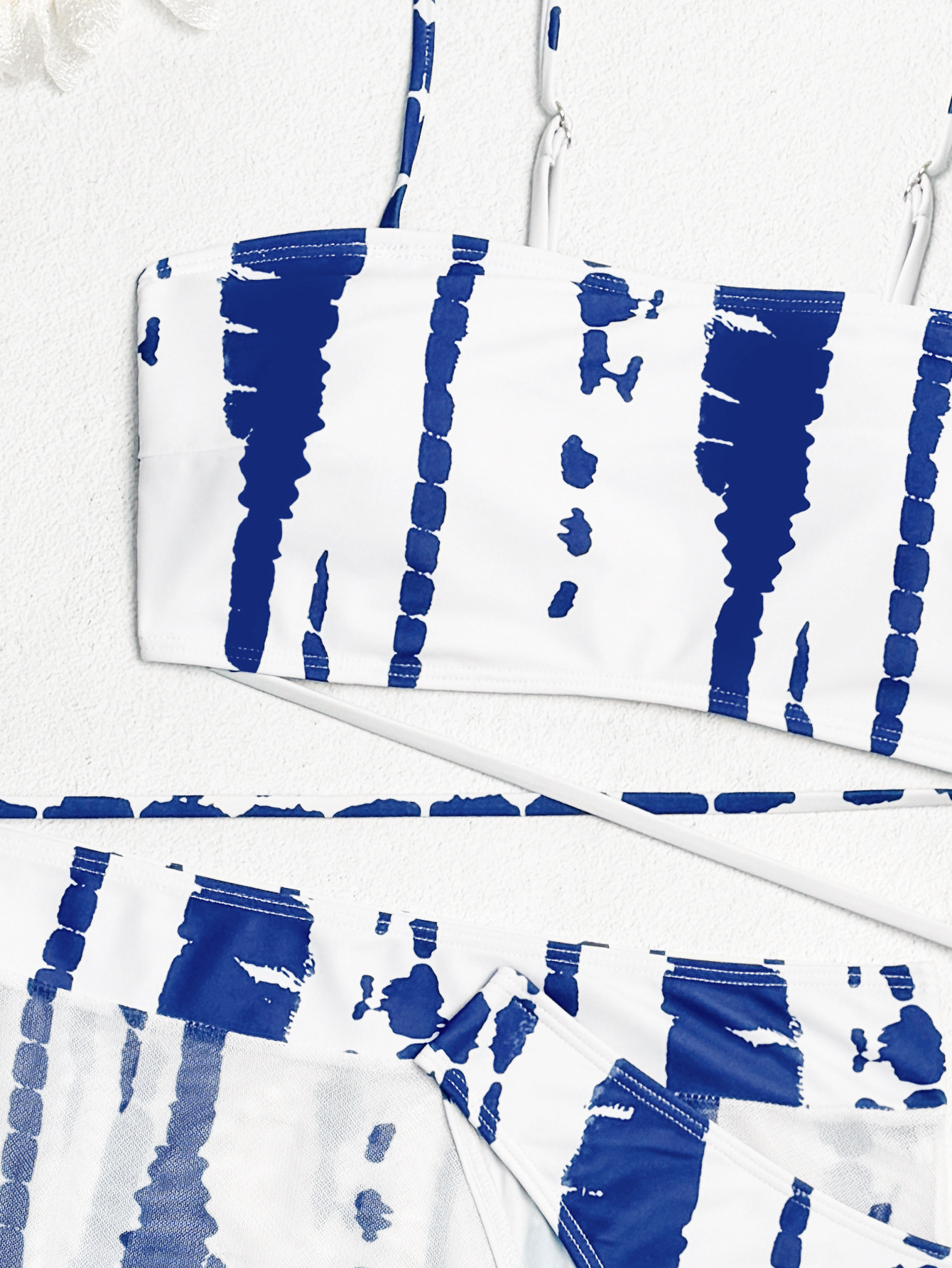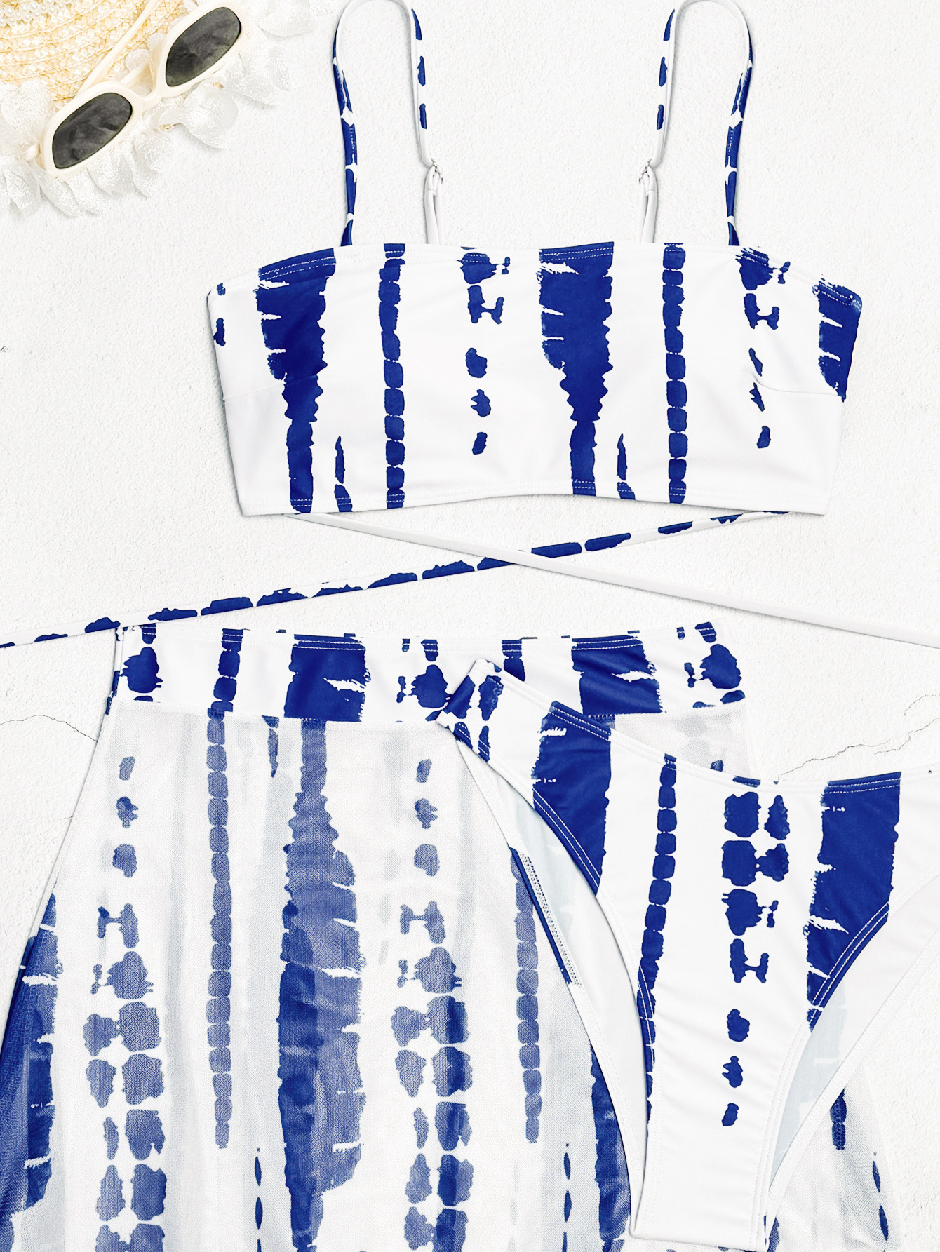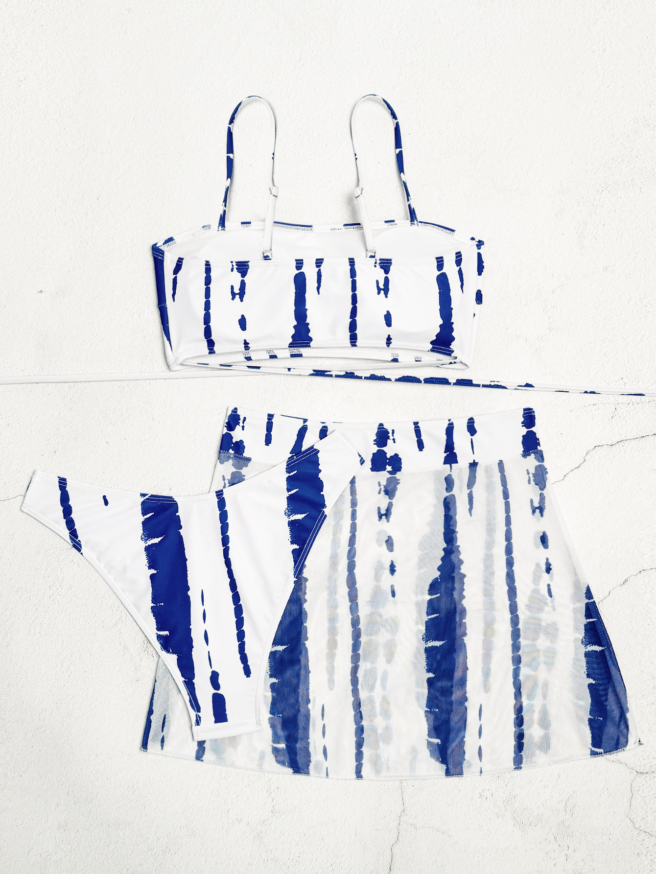 국경 간 2024 유럽과 미국의 새로운 프린트 레이스 업 더블 숄더 스트랩 스커트 아마존 비키니 3 피스 수영복 도매