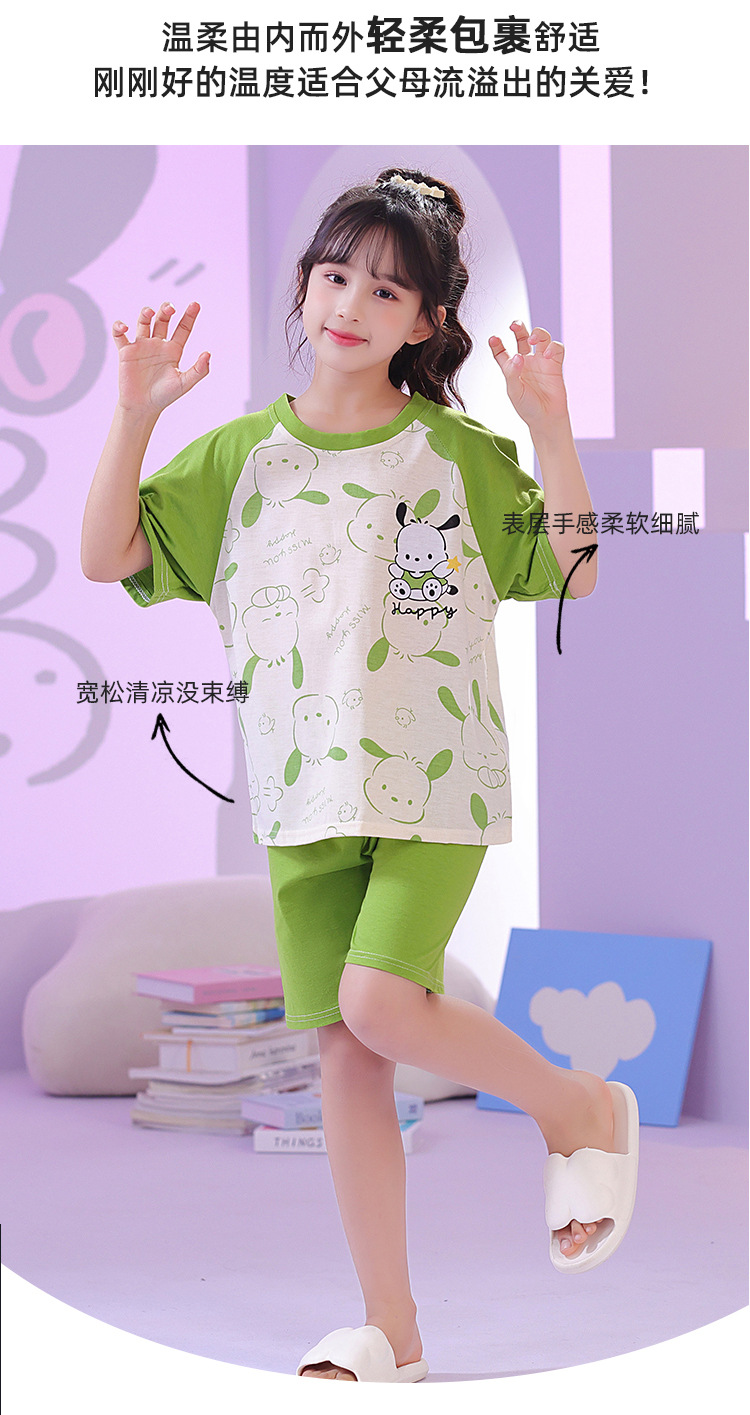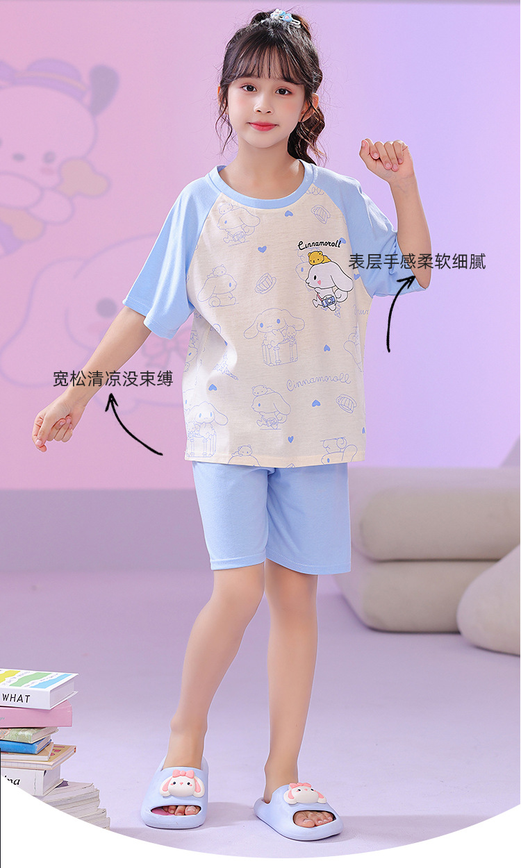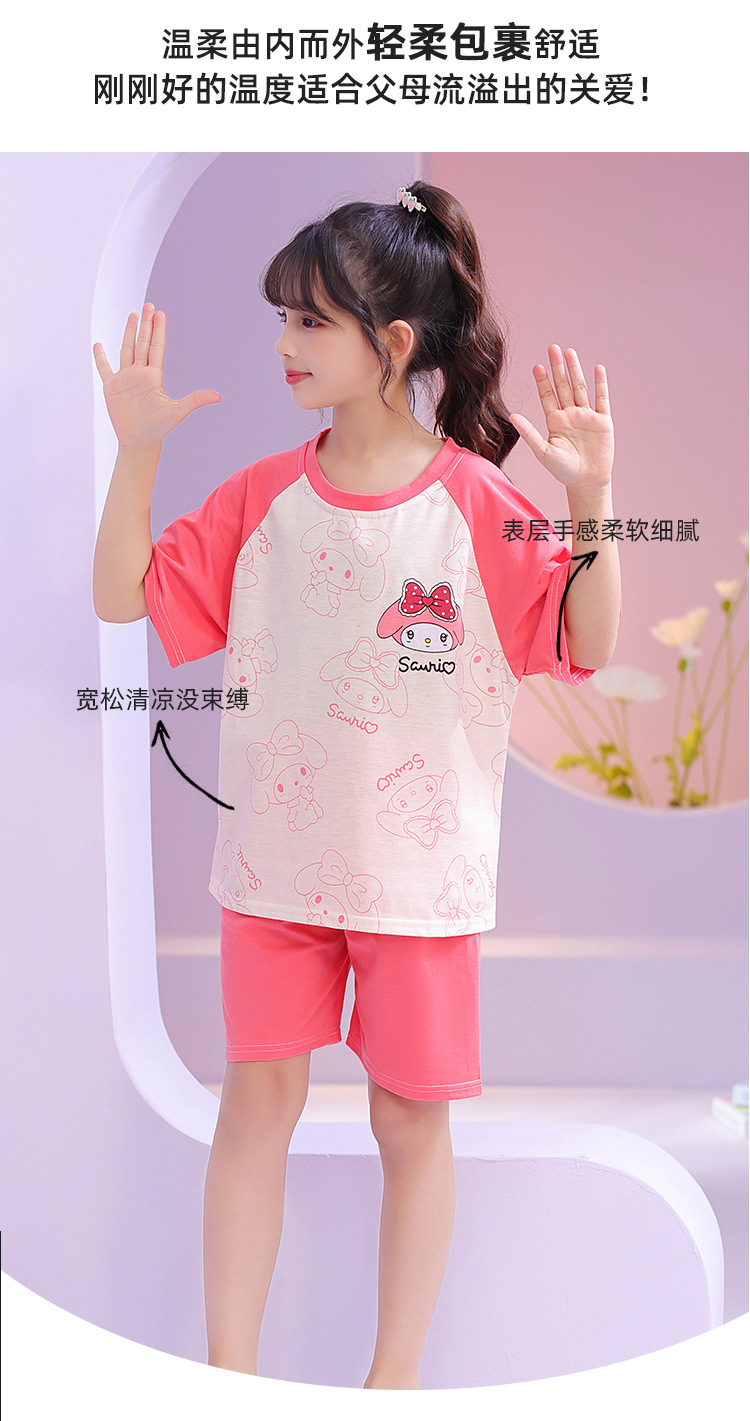 어린이 잠옷 반소매 소녀 여름 얇은 순면 투피스 만화 Merleti 귀여운 한국 스타일 홈 의류 세트