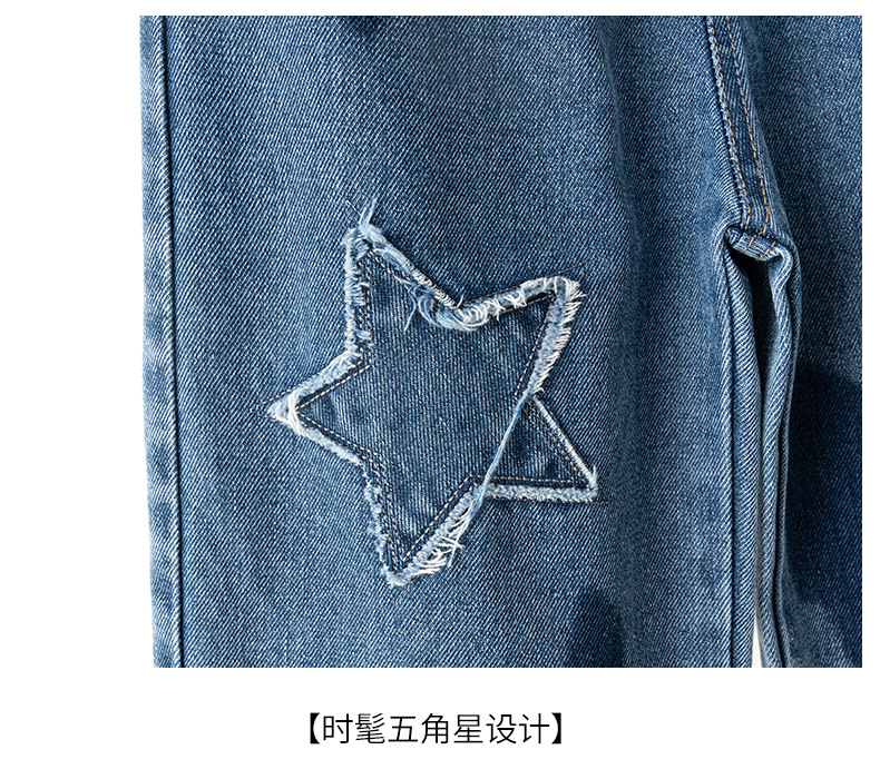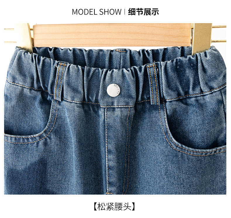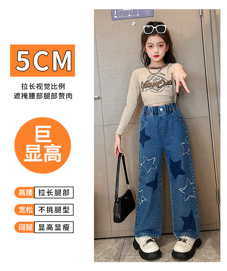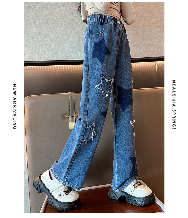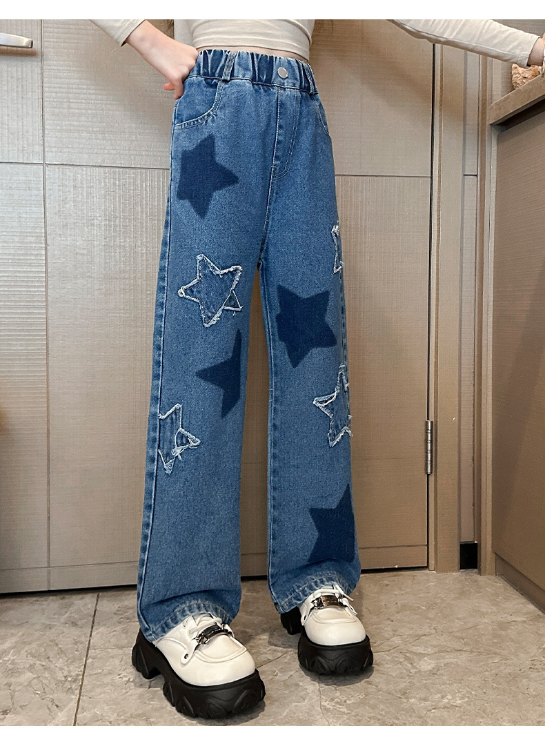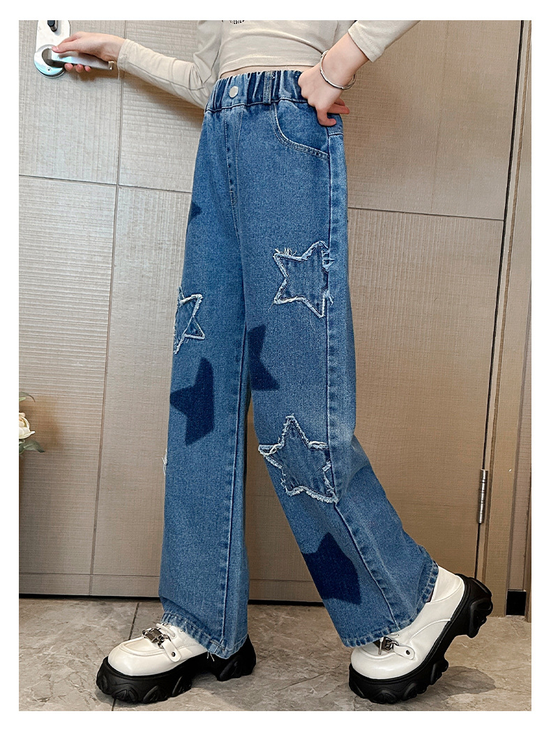 소녀 데님 넓은 다리 바지 봄과 가을 의류 2024 새로운 중형 및 대형 어린이 한국 스타일 유행 패치 긴 바지 인터넷 유명 인사스토어 가기