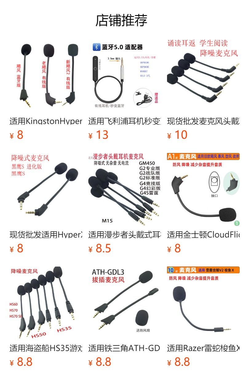 适用型号:麦克风适用JBL蓝牙游戏头戴耳机量子风暴Q100q350Q400咪杆MIC降噪