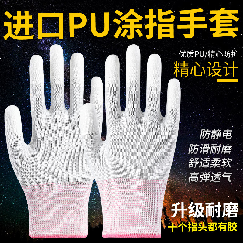 PU 코팅 팜 보호 장갑 내마모성 미끄럼 방지 통기성 얇은 먼지가없는 정전기 방지 나일론 코팅 보호 도매스토어 가기